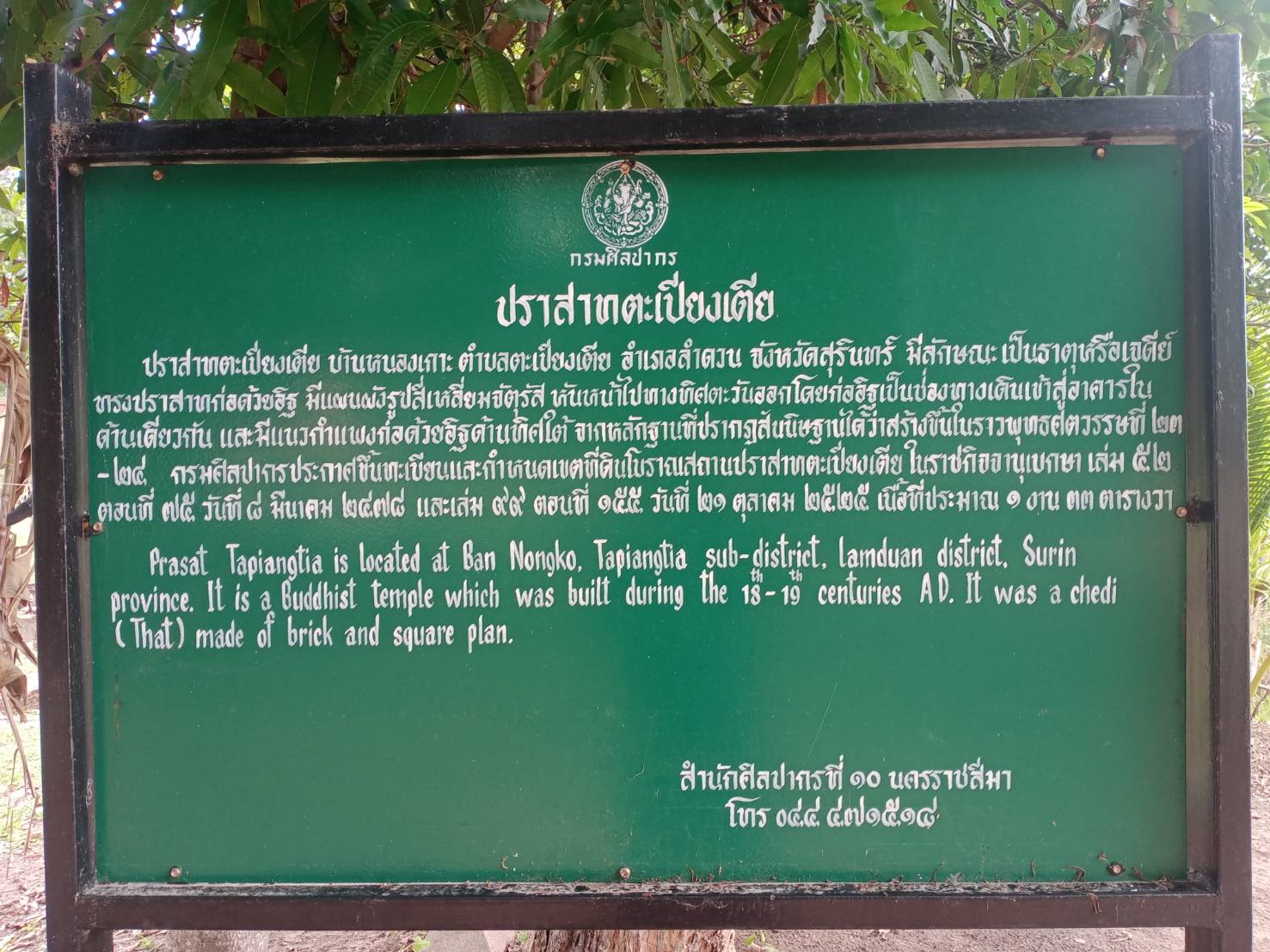 - ปราสาทตะเปียงเตีย ตำบลตะเปียงเตีย อำเภอลำดวน จังหวัดสุรินทร์
