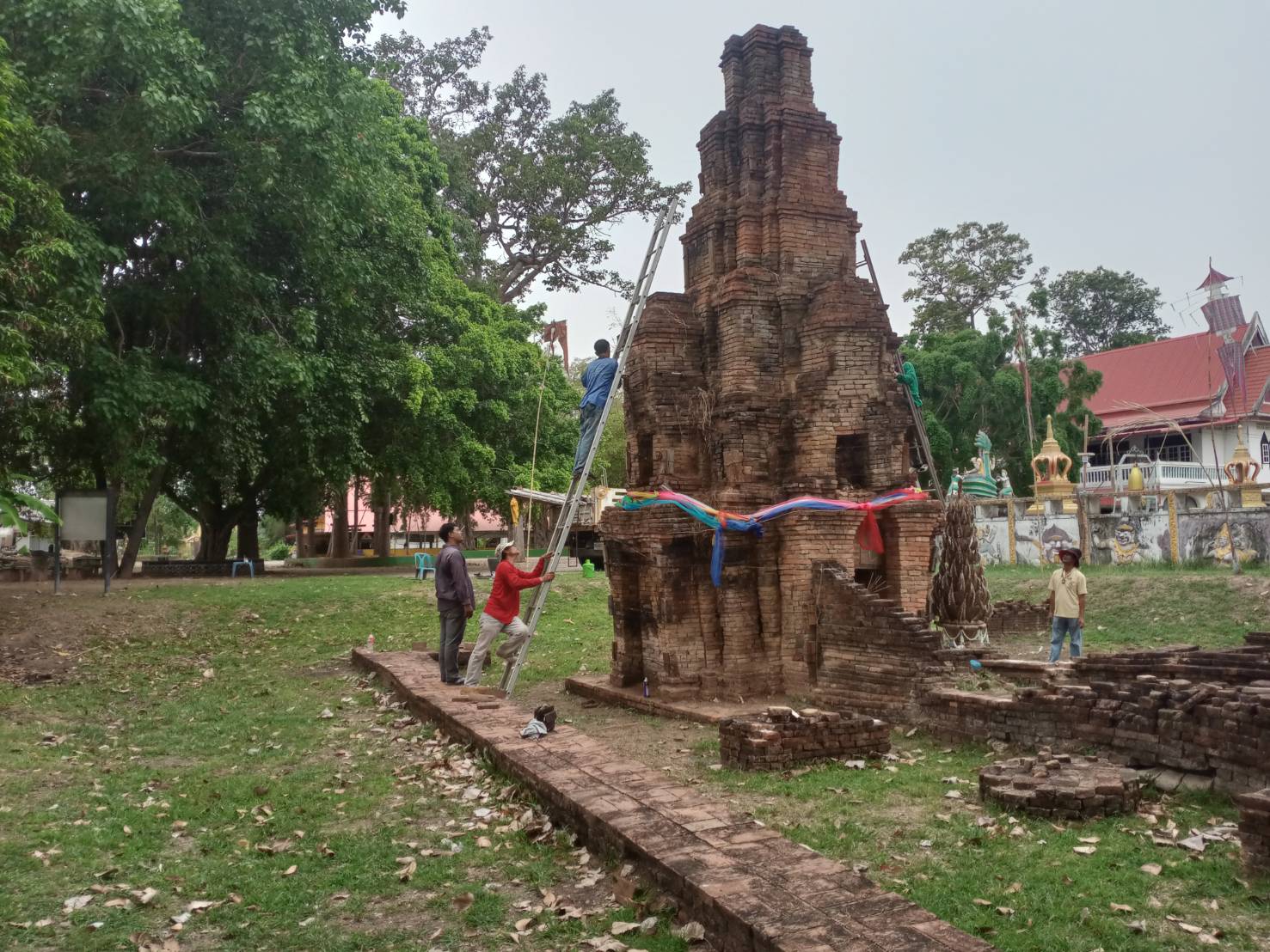 ลงพื้นที่ดำเนินงานเปลี่ยนวัสดุค้ำยันเสริมความมั่นคงโบราณสถาน