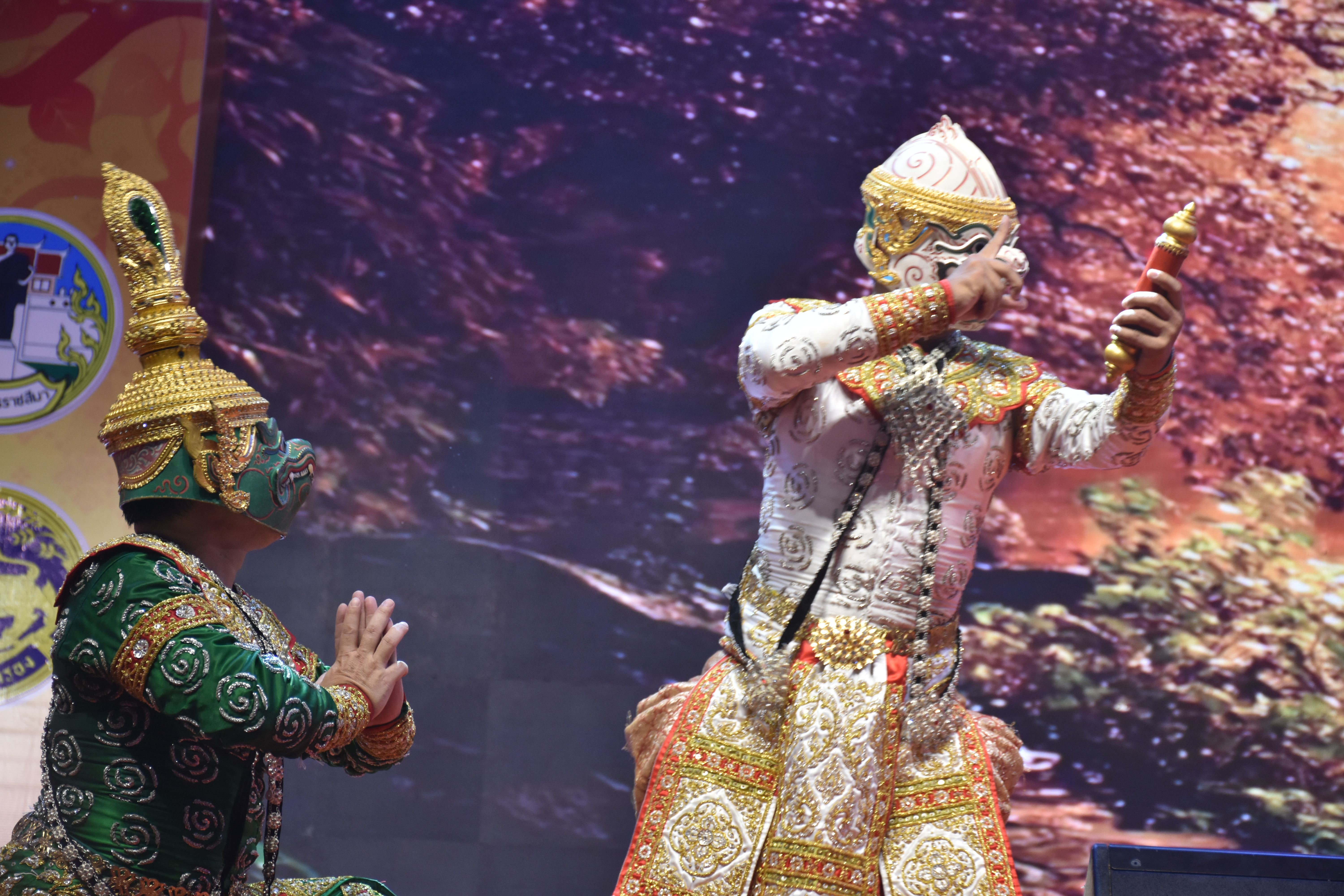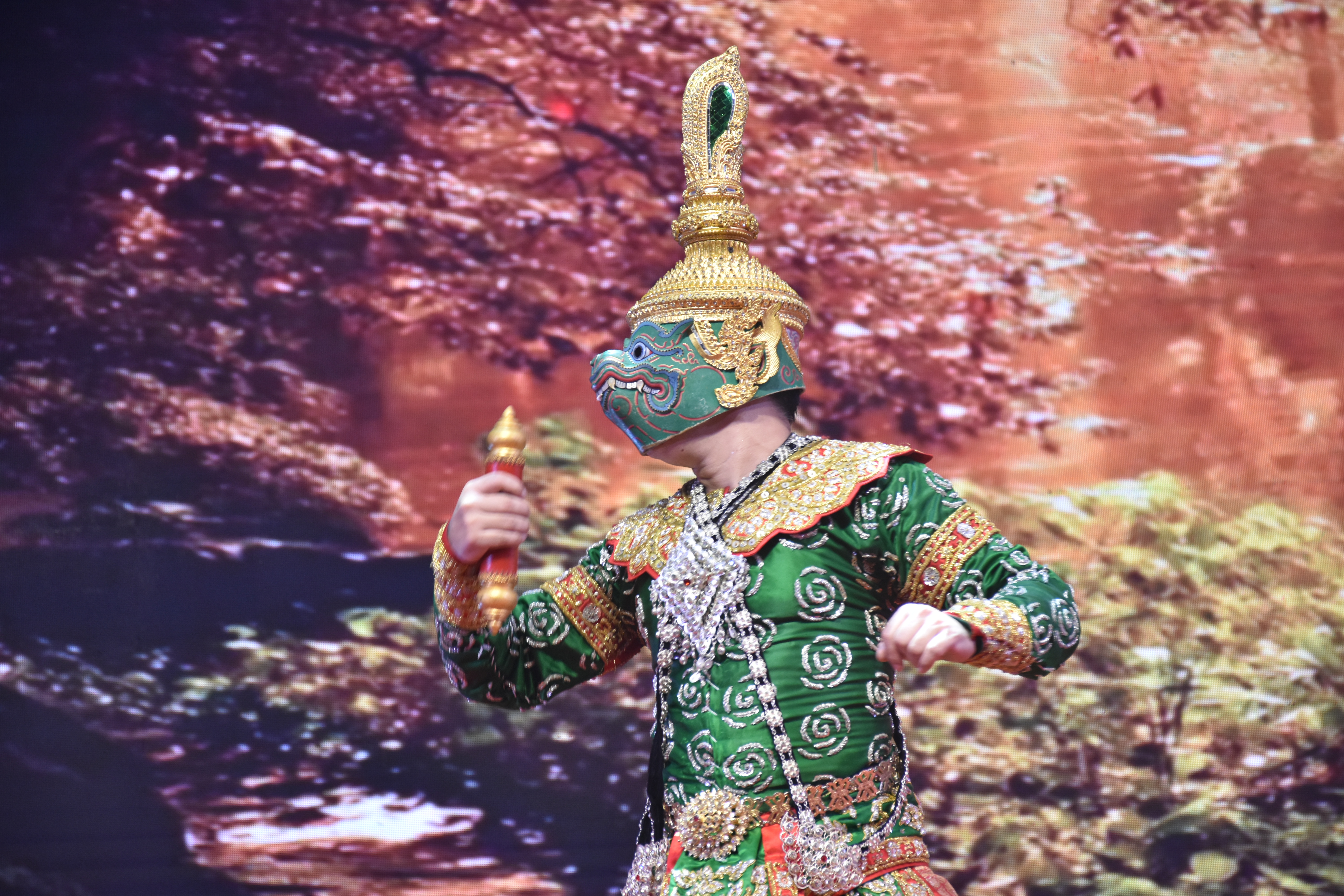 การแสดงโขน เรื่องรามเกียรติ์ ชุด “ถวายลิง” นำแสดงโดย นายจรัญ พูลลาภ นักวิชาการละครและดนตรี ชำนาญการพิเศษ และศิลปินกรมศิลปากร เนื่องในงานเทศกาลไหว้พระนอน ๑,๓๐๐ ปี