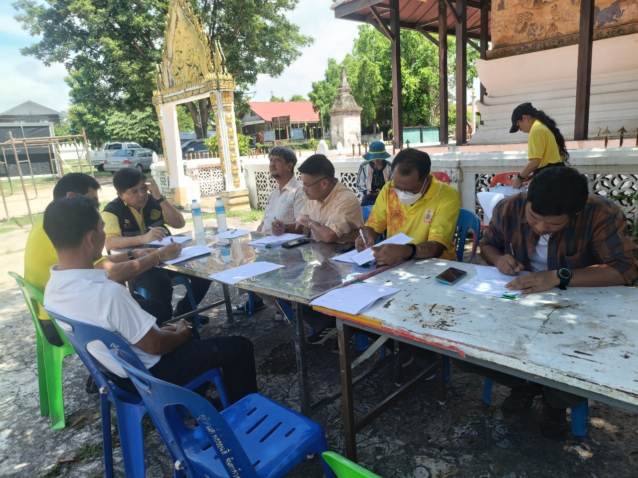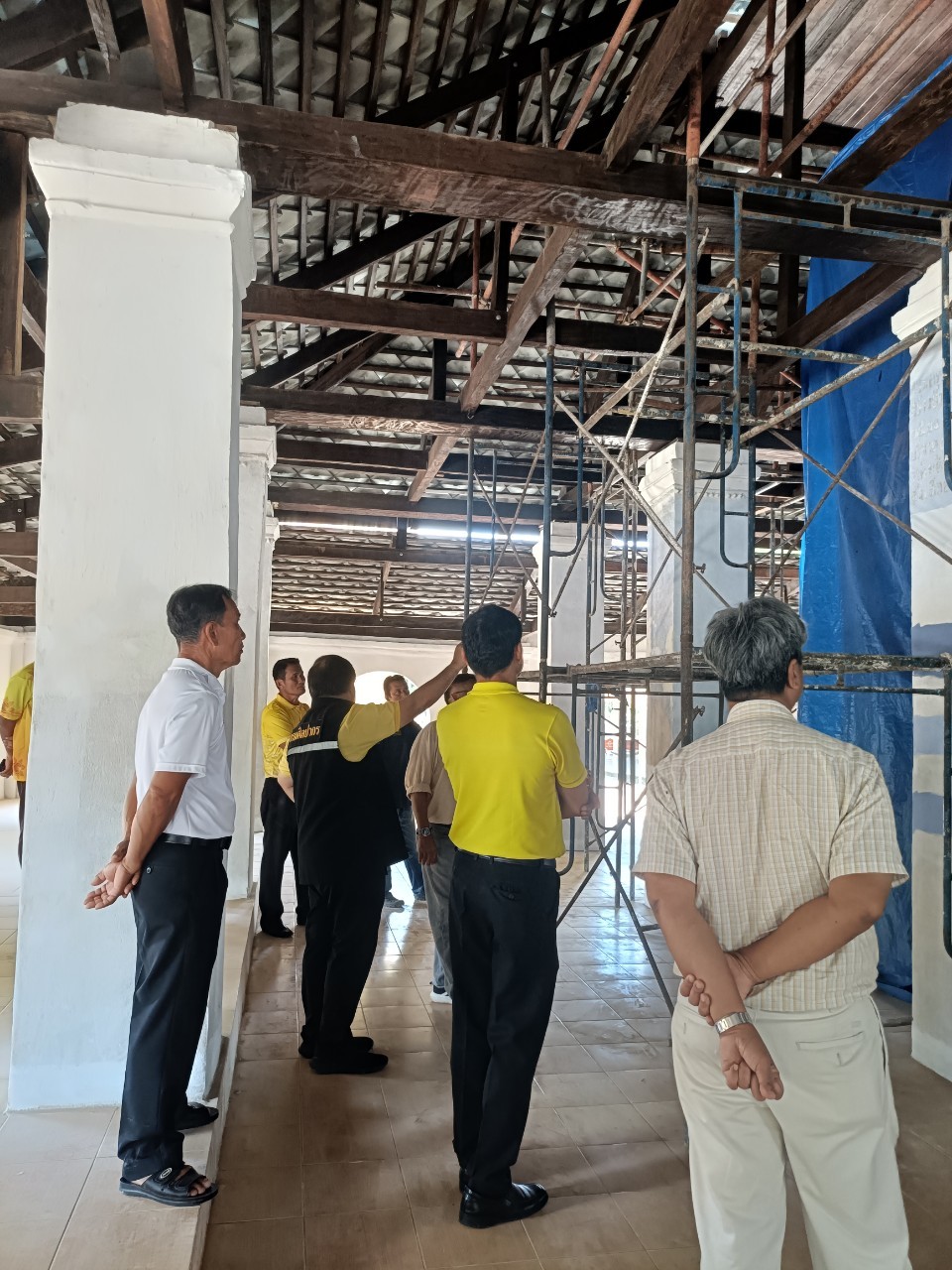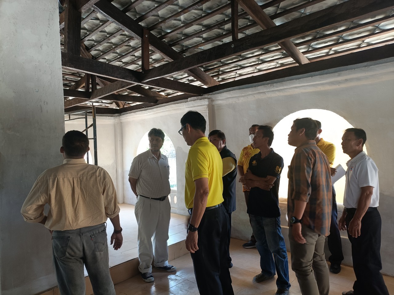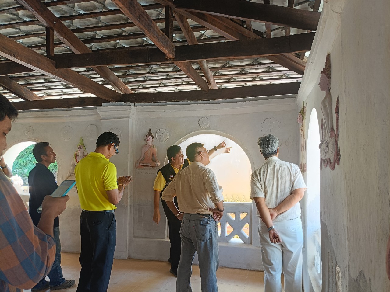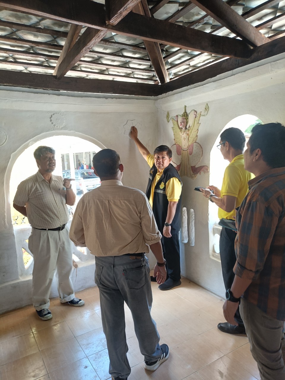วันจันทร์ที่ ๕ สิงหาคม ๒๕๖๗ นายทศพร ศรีสมาน ผู้อำนวยการสำนักศิลปากรที่ ๑๐ นครราชสีมา (ประธานตรวจการจ้าง) พร้อมด้วยคณะกรรมการตรวจการจ้างและผู้ควบคุมงาน ร่วมประชุมหารือในส่วนของงานสีเพื่อพิจารณาตัวอย่างสีน้ำอะคริลิค ชริดระบายความชื้น โครงการบูรณะโบราณสถานศาลาการเปรียญวัดโพธาราม ตำบลดงบัง อำเภอนาดูน จังหวัดมหาสารคาม