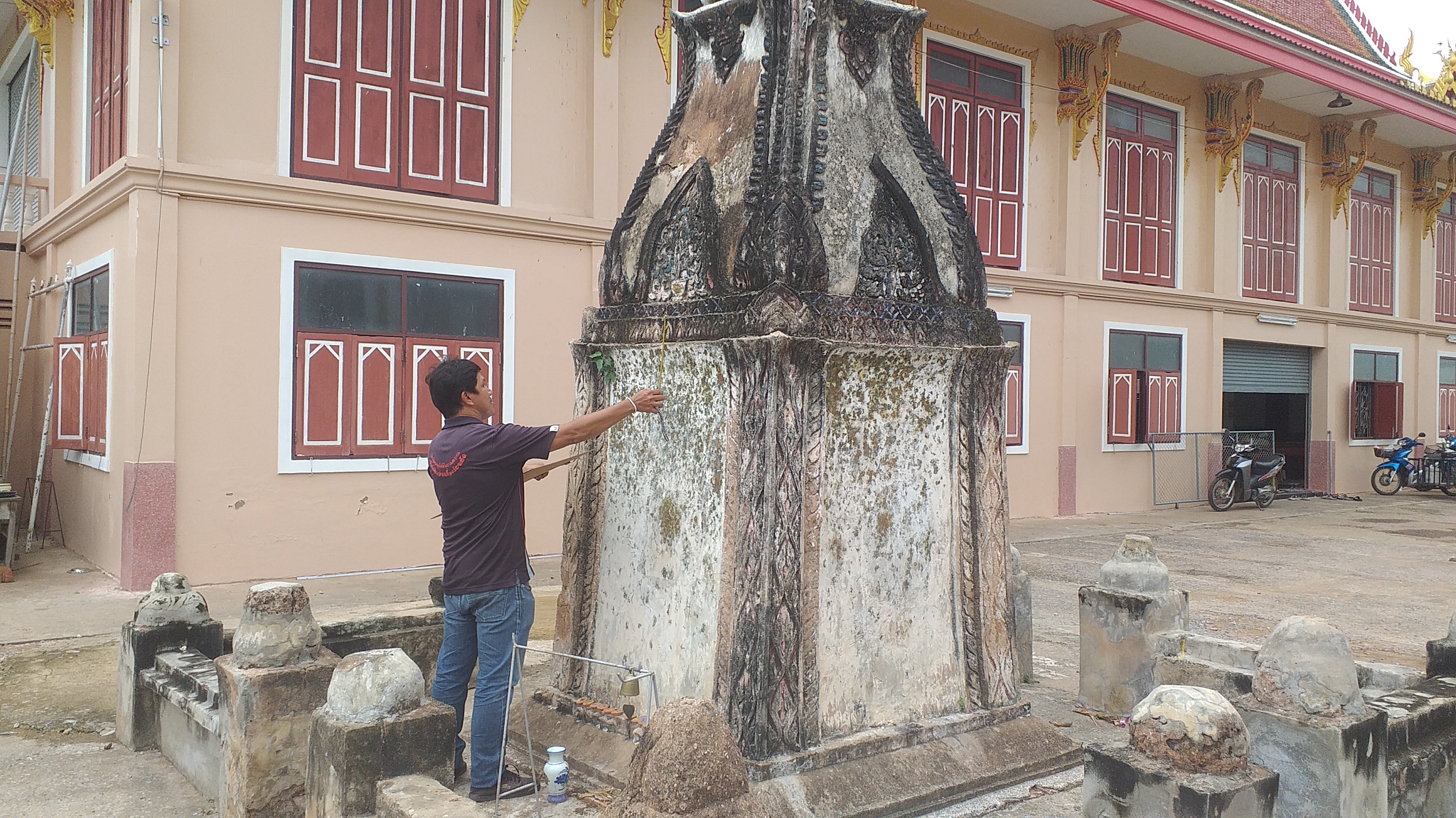 กลุ่มอนุรักษ์โบราณสถาน สำนักศิลปากรที่ ๑๐ นครราชสีมา ดำเนินงานสำรวจเพื่อเขียนแบบสภาพปัจจุบันและแบบบูรณะ พระธาตุ ๒ องค์ ณ วัดหน้าพระธาตุ ตำบลตะคุ อำเภอปักธงชัย จังหวัดนครราชสีมา ระหว่างวันที่ ๑-๔ สิงหาคม ๒๕๖๗