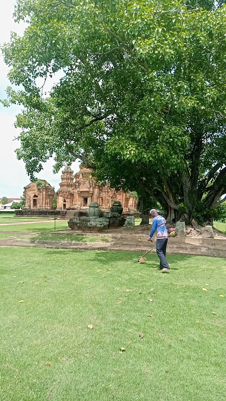 การดำเนินงานถากถางกำจัดวัชพืชโบราณสถานปราสาทศีขรภูมิ อำเภอศีขรภูมิ จังหวัดสุรินทร์ ในวันพุธที่ ๒๑ สิงหาคม ๒๕๖๗