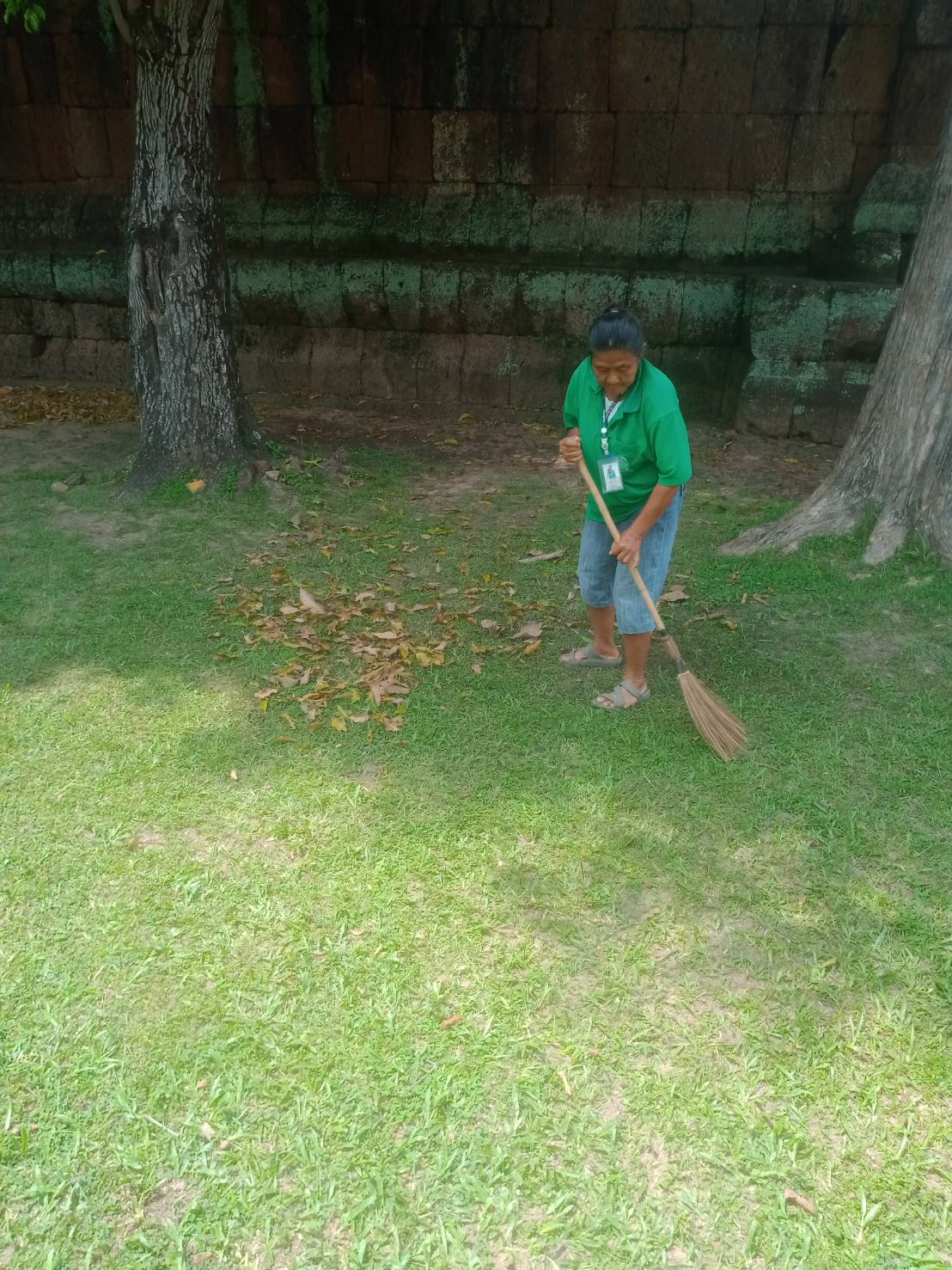 การดำเนินงานถากถางกำจัดวัชพืชบริเวณโดยรอบโบราณสถานปราสาทสระกำแพงใหญ่ ตำบลสระกำแพงใหญ่ อำเภออุทุมพรพิสัย จังหวัดศรีสะเกษ ในวันอังคารที่ ๑ ตุลาคม ๒๕๖๗