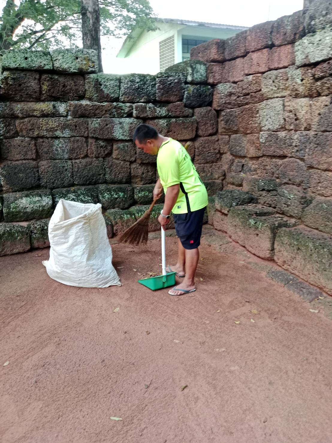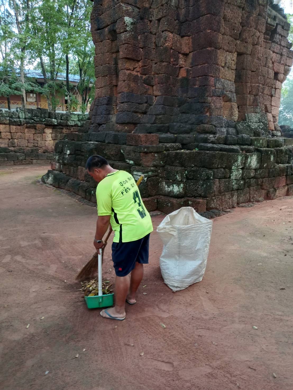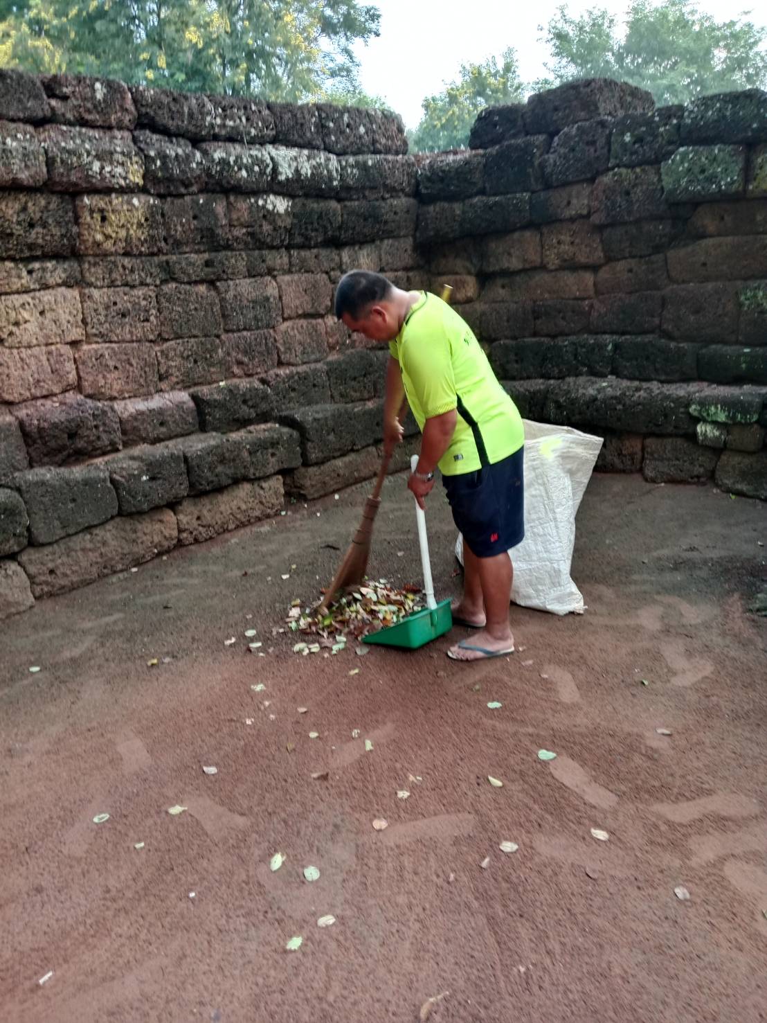 การดำเนินงานถากถางกำจัดวัชพืชบริเวณโดยรอบโบราณสถานปรางค์ครบุรี อำเภอครบุรี จังหวัดนครราชสีมา ในวันอังคารที่ ๑ ตุลาคม ๒๕๖๗