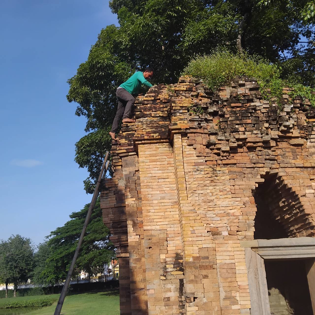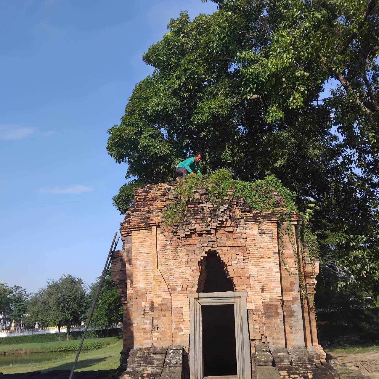 การดำเนินงานถากถางกำจัดวัชพืชบริเวณโดยรอบโบราณสถานปราสาทศีขรภูมิ ตำบลระแงง อำเภอศีขรภูมิ จังหวัดสุรินทร์ ในวันศุกร์ที่ ๔ ตุลาคม ๒๕๖๗