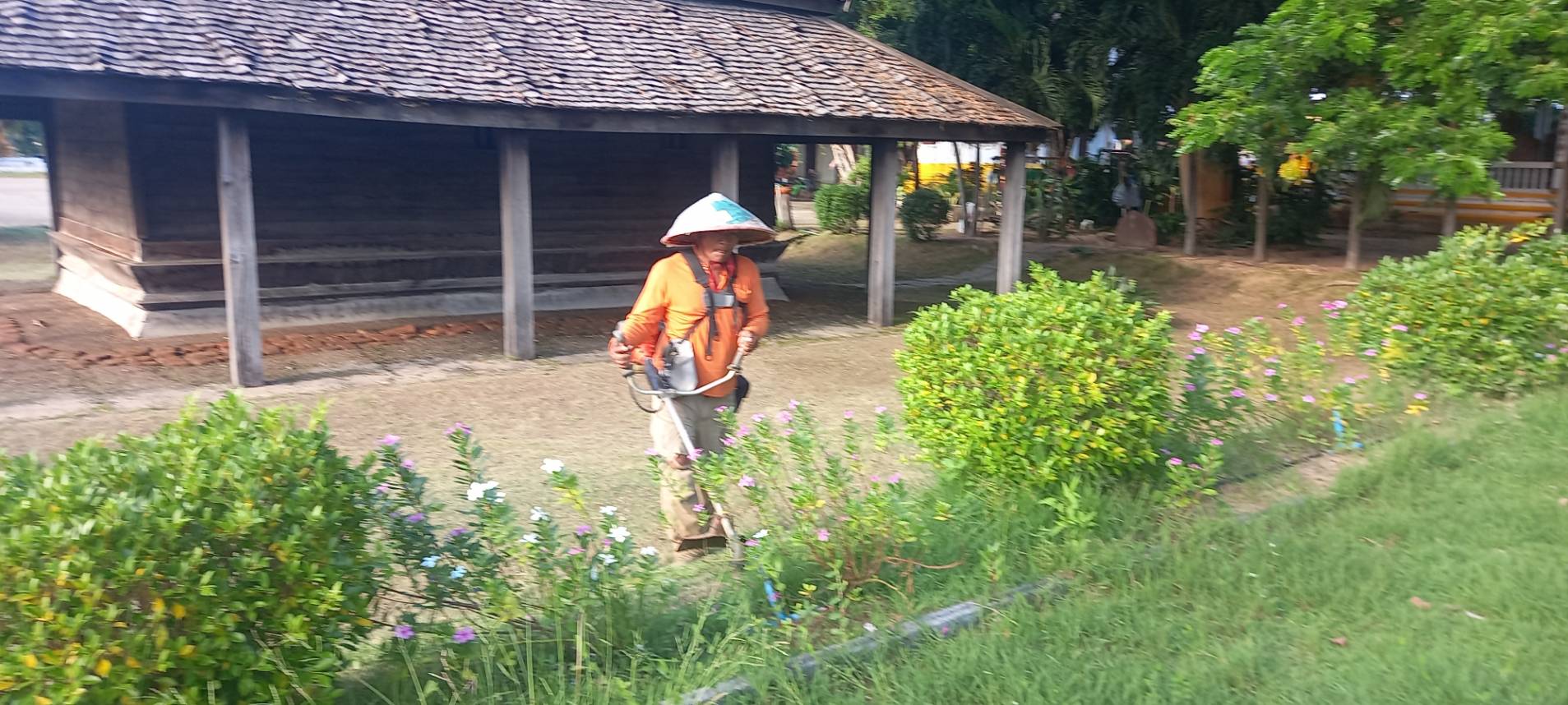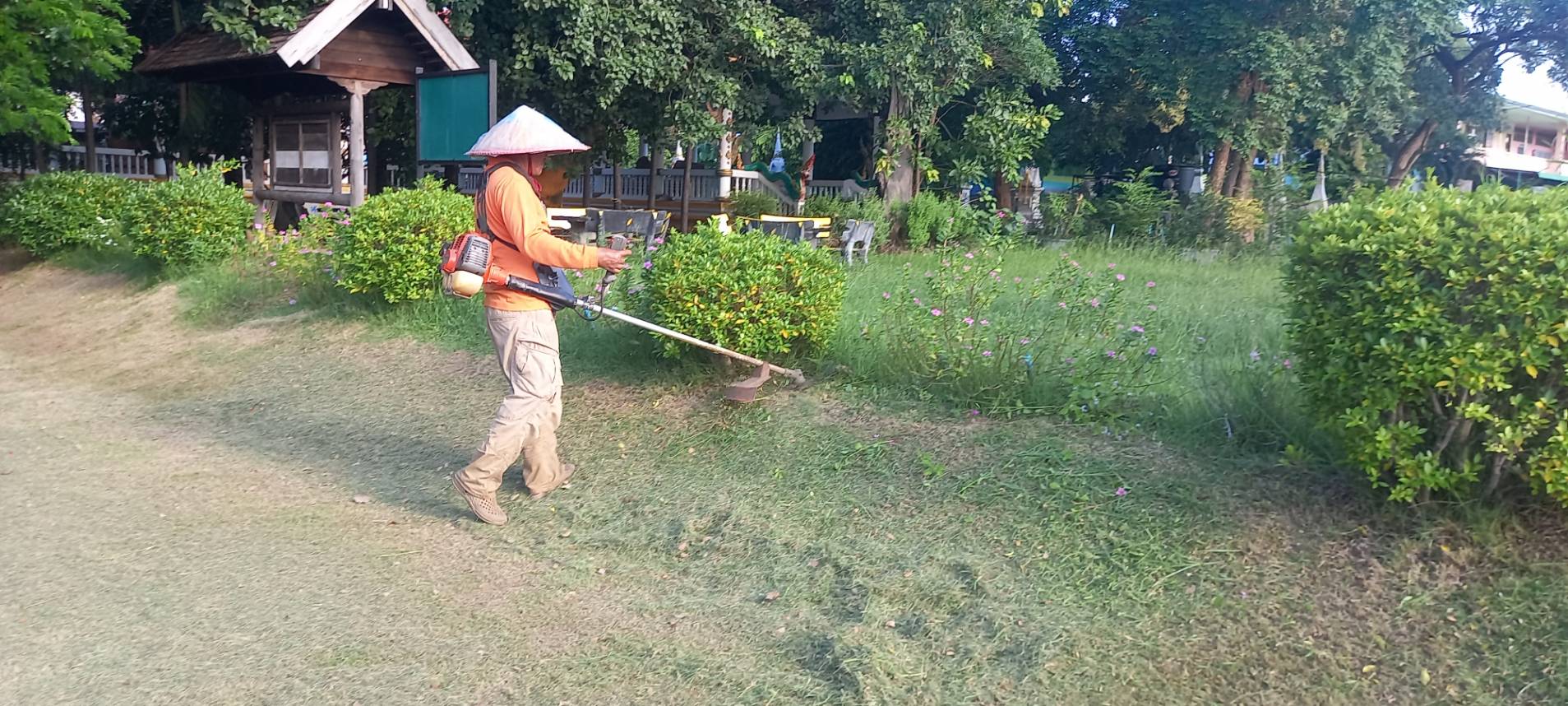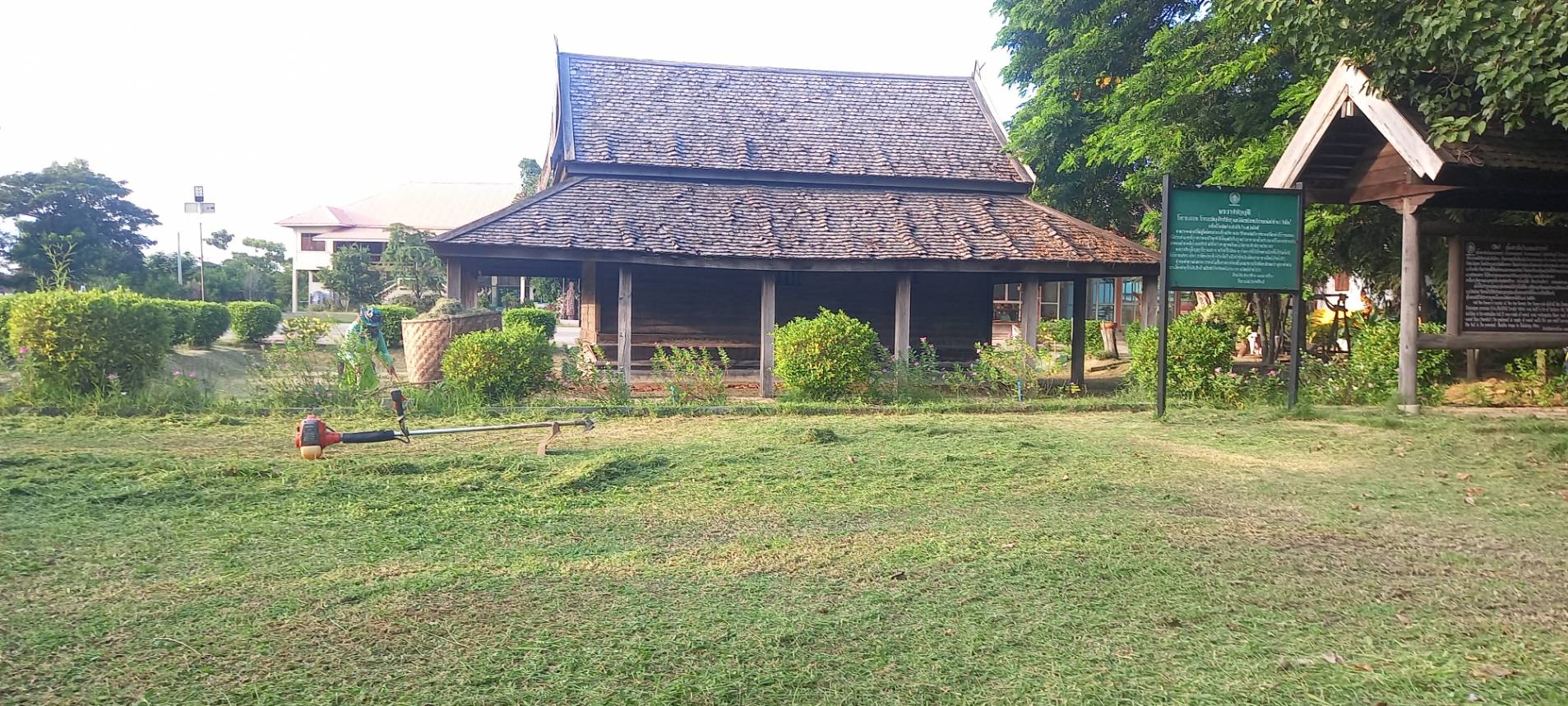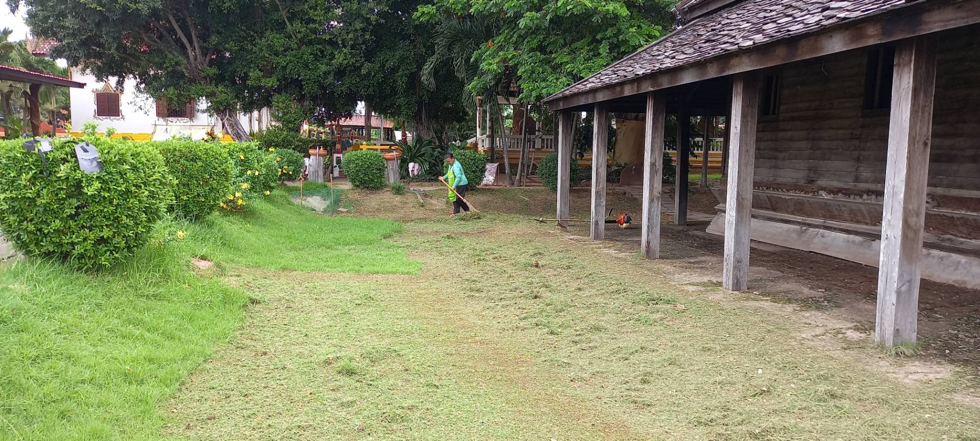 การดำเนินงานถากถางกำจัดวัชพืชบริเวณโดยรอบอาคารคลุมใบเสมาและสิมบ้านคอนสวรรค์ ตำบลคอนสวรรค์ อำเภอคอนสวรรค์ จังหวัดชัยภูมิ ในวันศุกร์ที่ ๔ ตุลาคม ๒๕๖๗