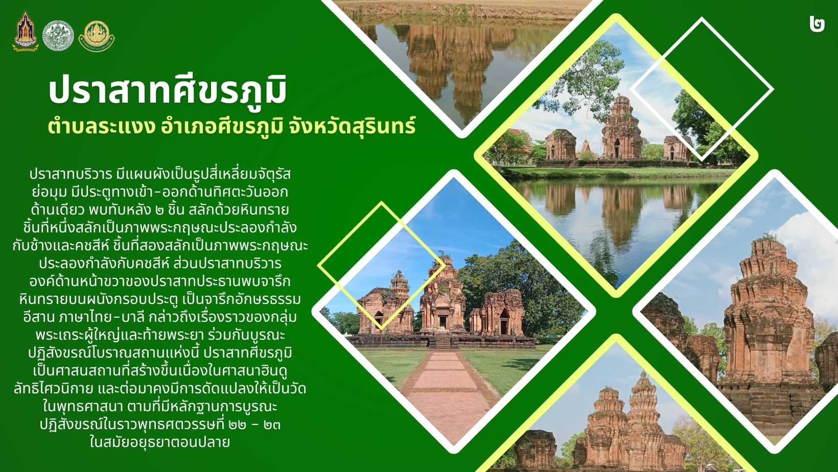 "ปราสาทศีขรภูมิ" ตำบลระแงง อำเภอศีขรภูมิ จังหวัดสุรินทร์