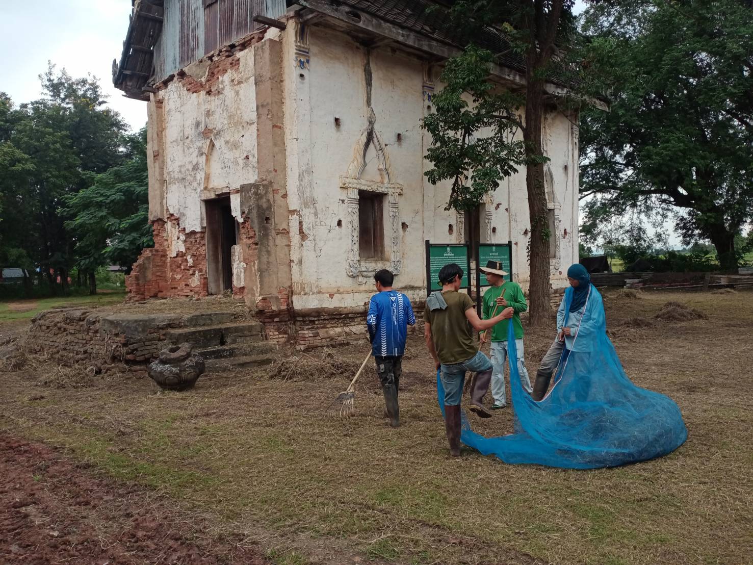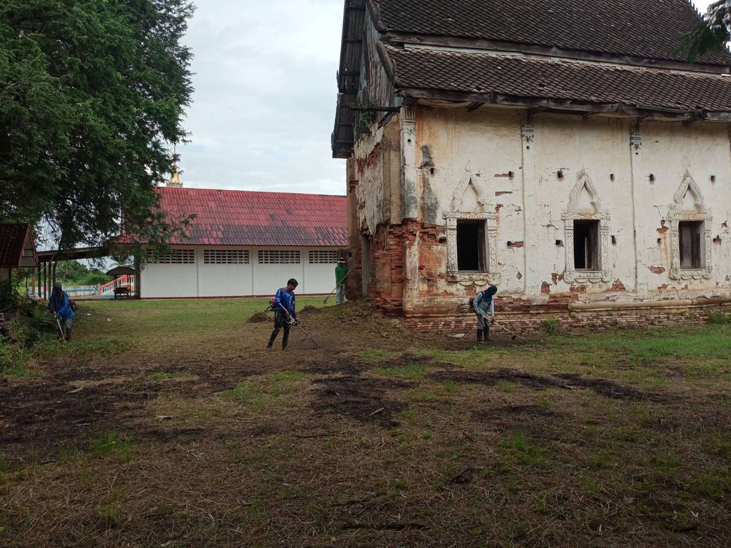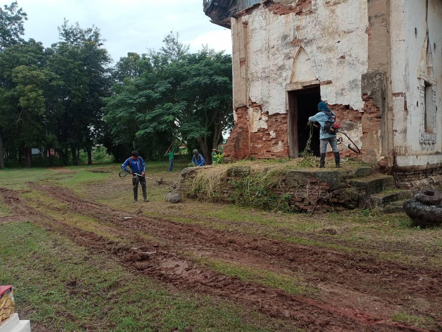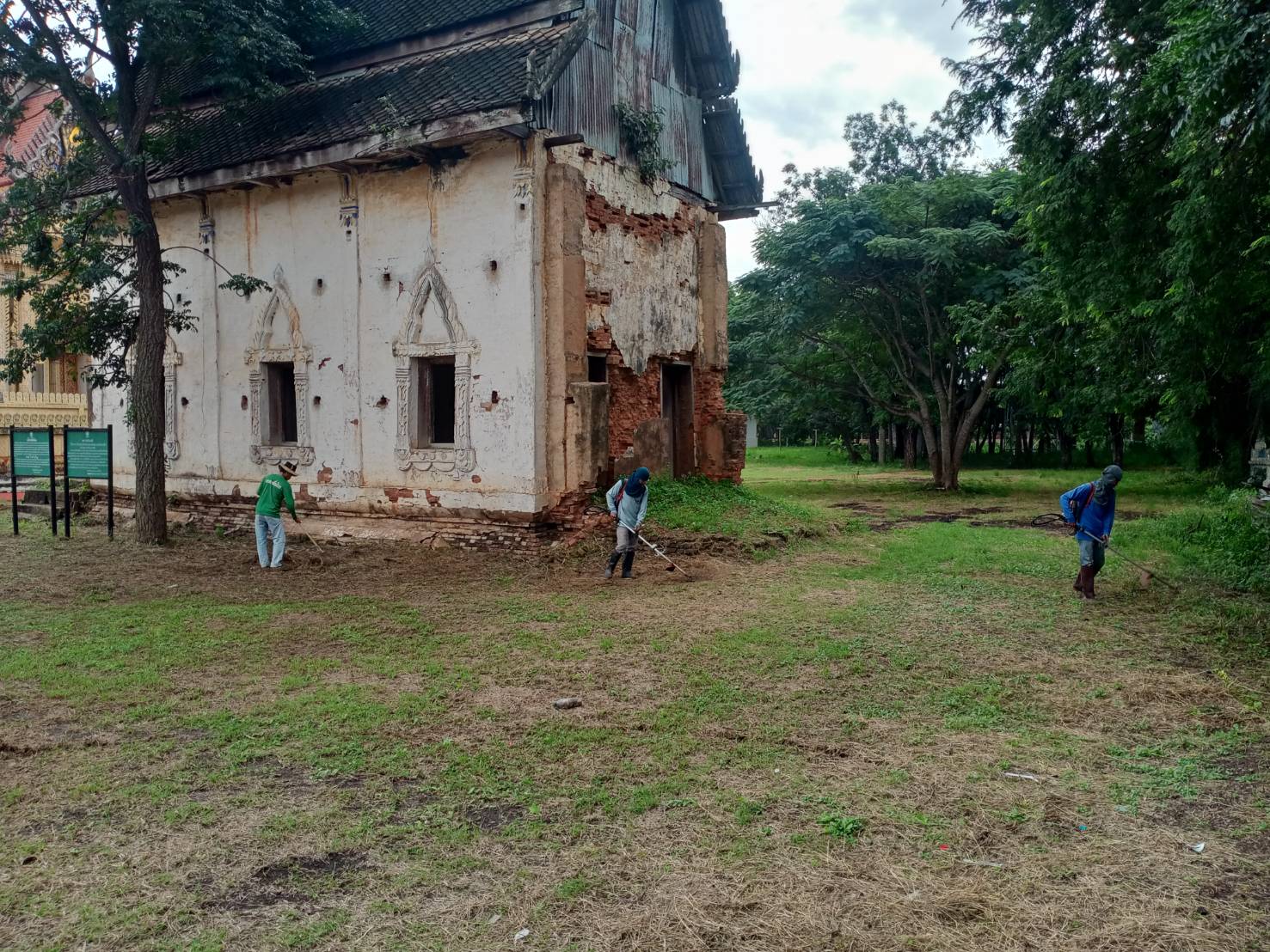 เจ้าหน้าที่สำนักศิลปากรที่ ๑๐ นครราชสีมา ดำเนินงานถากถางกำจัดวัชพืชและทำความสะอาดบริเวณโดยรอบอุโบสถวัดโพธิ์ทอง อำเภอปักธงชัย จังหวัดนครราชสีมา ระหว่างวันที่ ๒๘-๓๑ ตุลาคม ๒๕๖๗