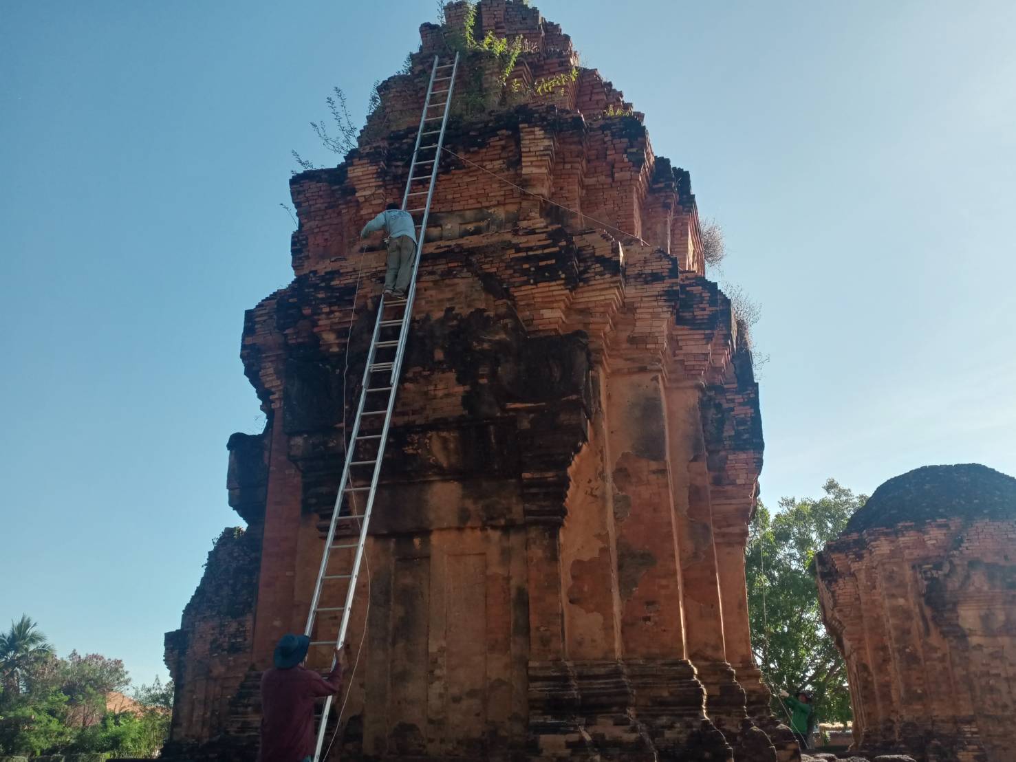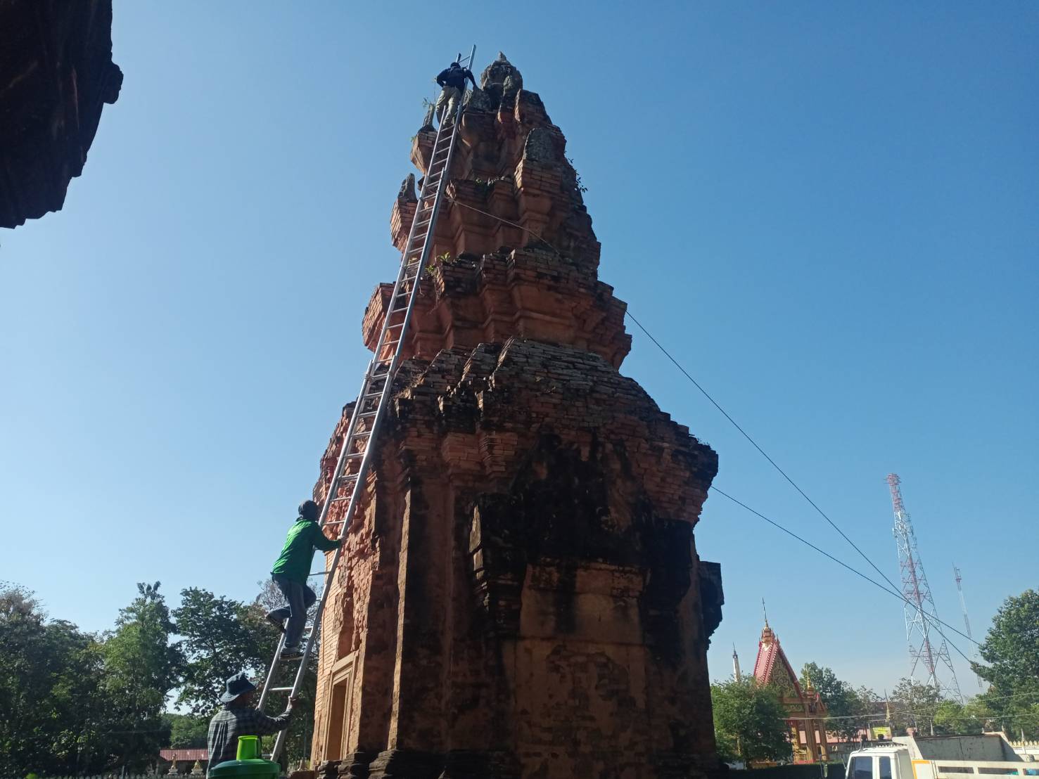 เจ้าหน้าที่สำนักศิลปากรที่ ๑๐ นครราชสีมา ลงพื้นที่ดำเนินงานถากถางกำจัดวัชพืชและสิ่งกีดขวางบนตัวโบราณสถาน ปราสาทศีขรภูมิ ตำบลระแงง อำเภอศีขรภูมิ จังหวัดสุรินทร์