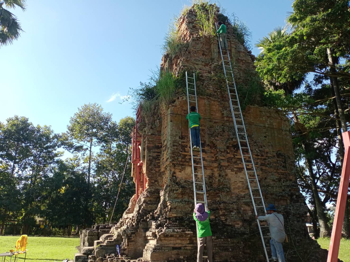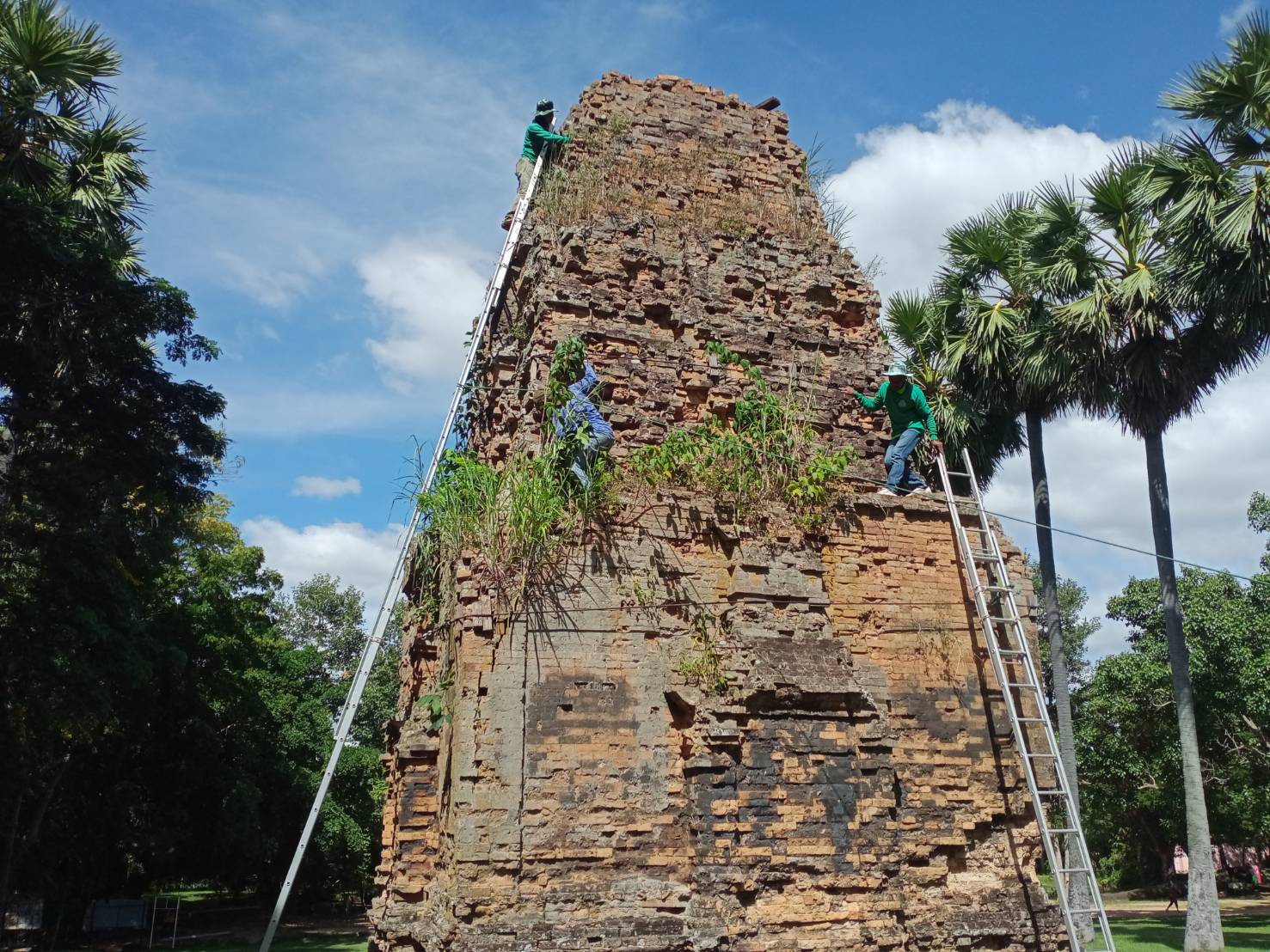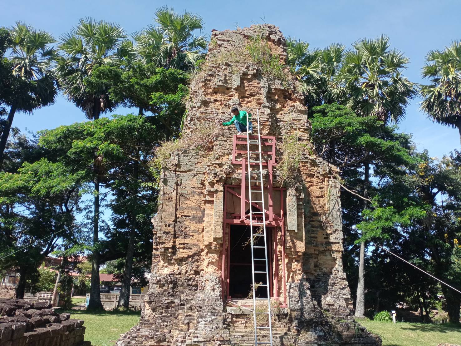 เจ้าหน้าที่สำนักศิลปากรที่ ๑๐ นครราชสีมา ลงพื้นที่ดำเนินงานถากถางกำจัดวัชพืชและสิ่งกีดขวางบนตัวโบราณสถาน ปราสาทภูมิโปน ตำบลดม อำเภอสังขะ จังหวัดสุรินทร์