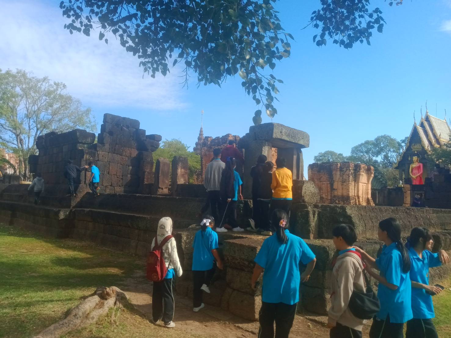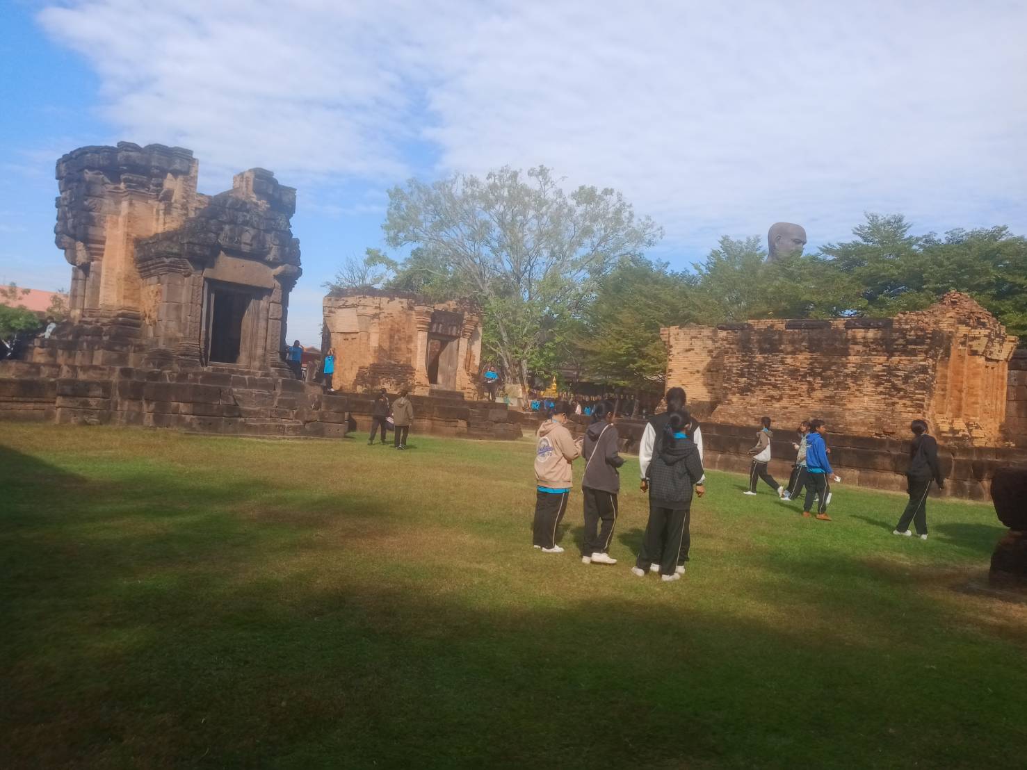 คณะครู นักเรียน และนักท่องเที่ยวเข้าชมโบราณสถานปราสาทสระกำแพงใหญ่ อำเภออุทุมพรพิสัย จังหวัดศรีสะเกษ ในวันจันทร์ที่ ๑๖ ธันวาคม ๒๕๖๗