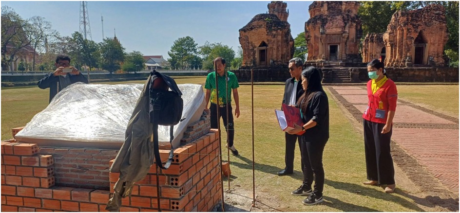กลุ่มอนุรักษ์โบราณสถาน ลงพื้นที่ตรวจสอบกำกับดูแลการดำเนินการติดตั้งทับหลังจำลอง ในเขตพื้นที่โบราณสถานปราสาทศีขรภูมิ ร่วมกับ นายทวีทรัพย์ โล้เจริญรัตน์ นายกเทศมนตรีตำบลศีขรภูมิ พร้อมด้วยเจ้าหน้าที่สำนักงานเทศบาลตำบลศีขรภูมิ อำเภอศีขรภูมิ จังหวัดสุรินทร์ เมื่อวันที่ ๑๔ และ ๒๕ ธันวาคม ๒๕๖๗