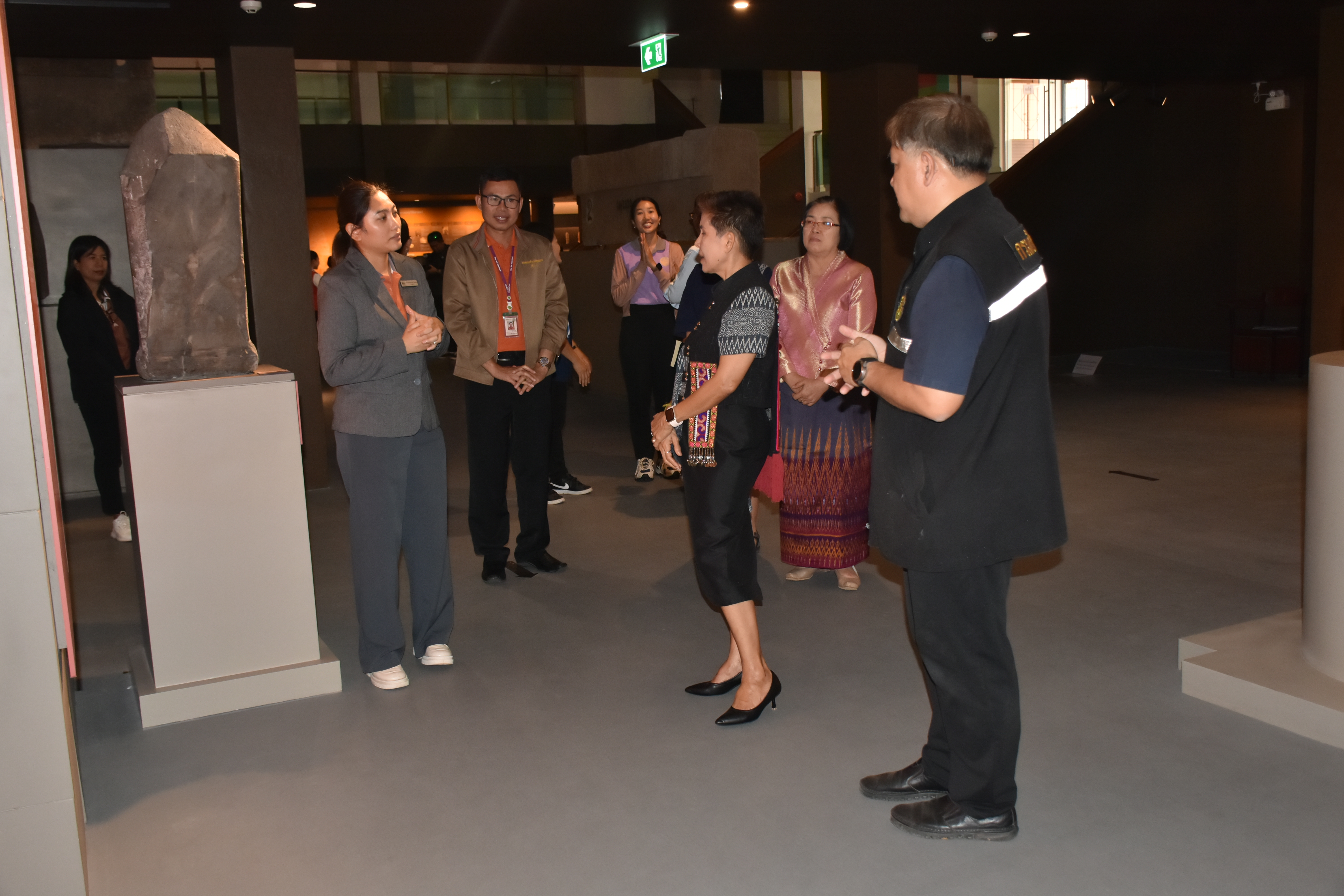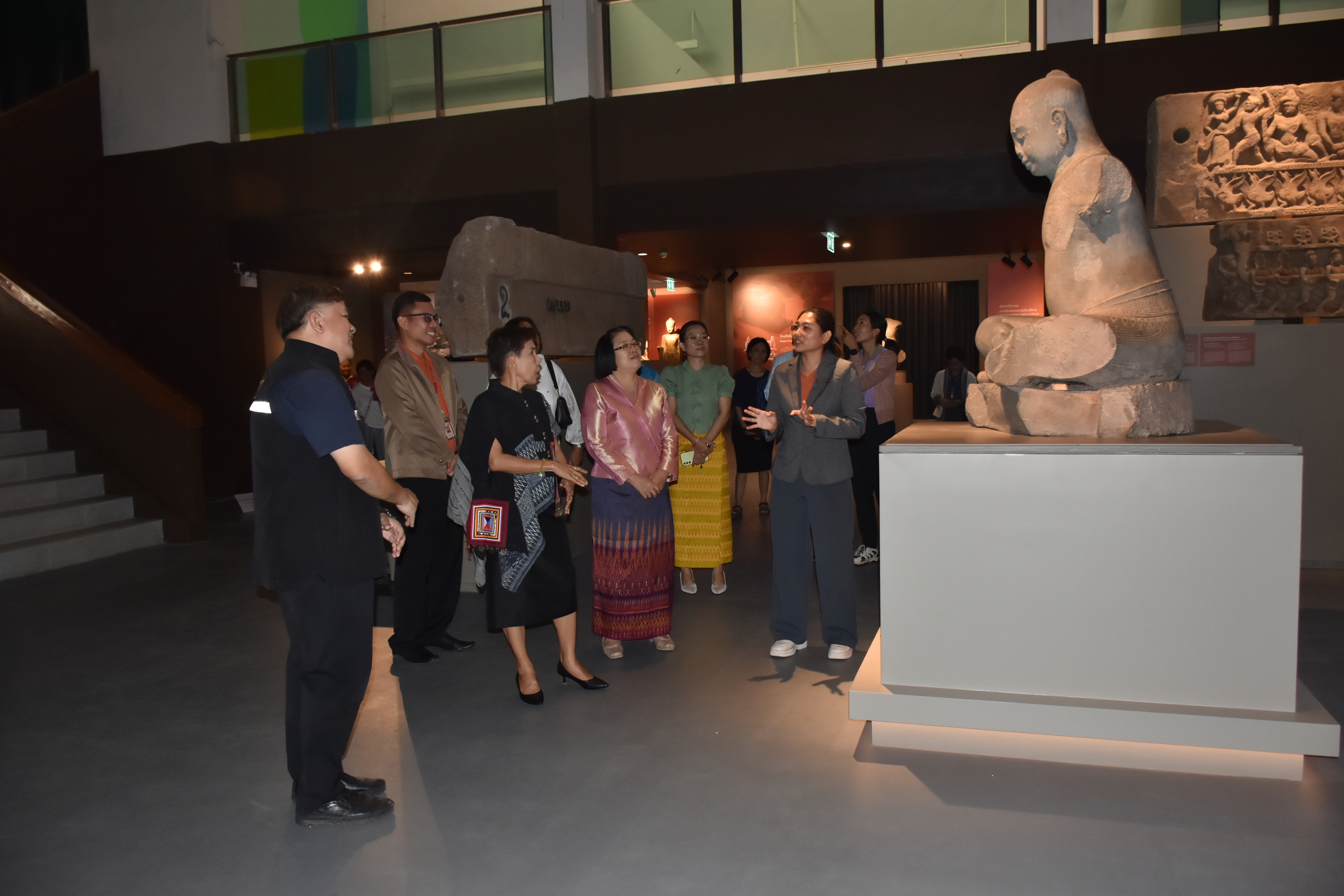 วันพฤหัสบดีที่ ๙ มกราคม ๒๕๖๘ เวลา ๑๔.๐๐ น. นายทศพร ศรีสมาน ผู้อำนวยการสำนักศิลปากรที่ ๑๐ นครราชสีมา พร้อมด้วยหัวหน้าหน่วยงาน ร่วมให้การต้อนรับ นางศศิฑอณร์ สุวรรณมณี ผู้ตรวจราชการกระทรวงวัฒนธรรม พร้อมคณะ ในการเดินทางมาตรวจราชการหน่วยงานในสังกัดกระทรวงวัฒนธรรม ณ ห้องประชุมพิพิธภัณฑสถานแห่งชาติพิมาย ในการนี้ ได้เข้าเยี่ยมชมนิทรรศการภายในอาคารจัดแสดงพิพิธภัณฑสถานแห่งชาติพิมาย จังหวัดนครราชสีมา โดยมีนางเบญจวรรณ พลประเสริฐ ผู้อำนวยการพิพิธภัณฑสถานแห่งชาติพิมาย บรรยายนำชม