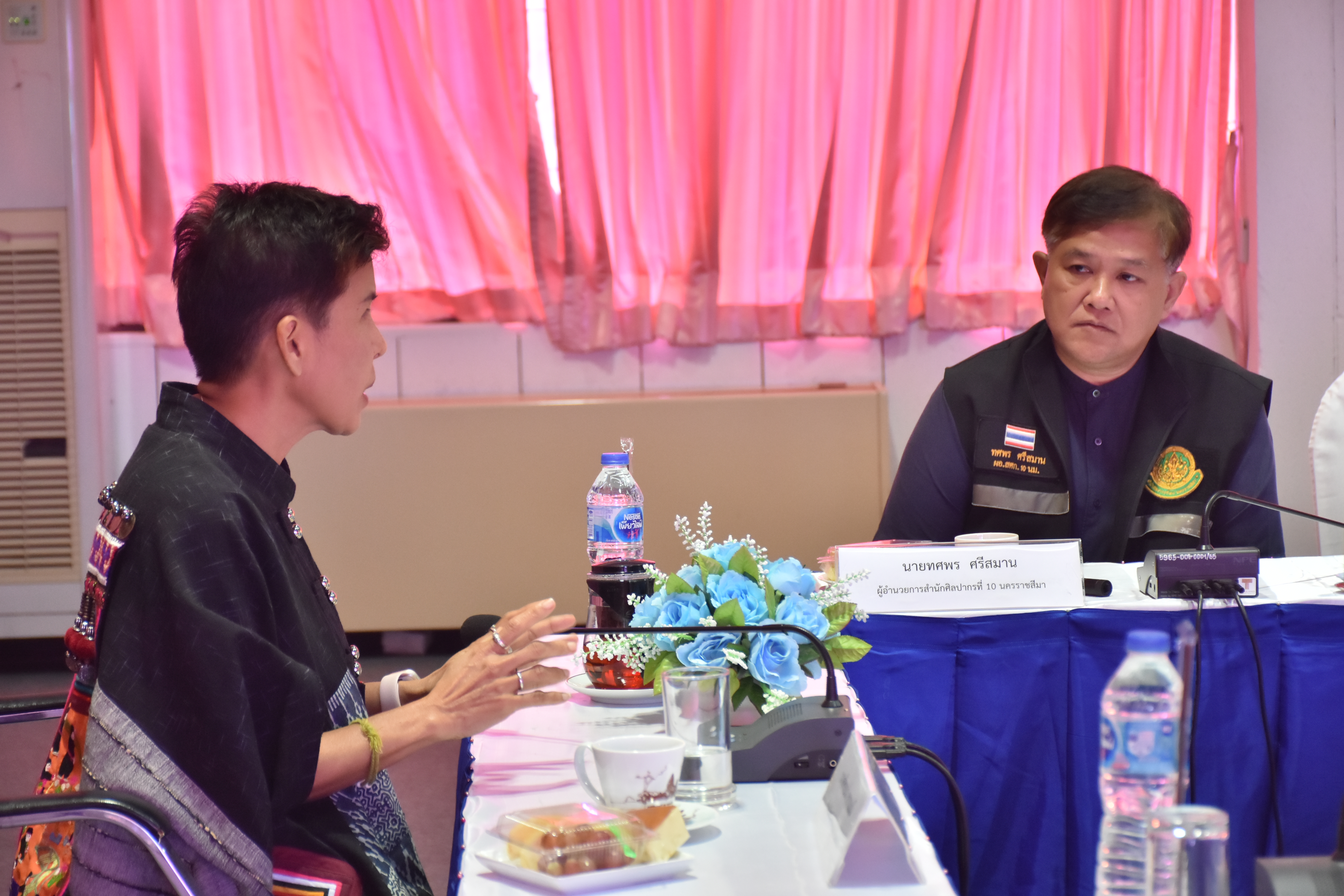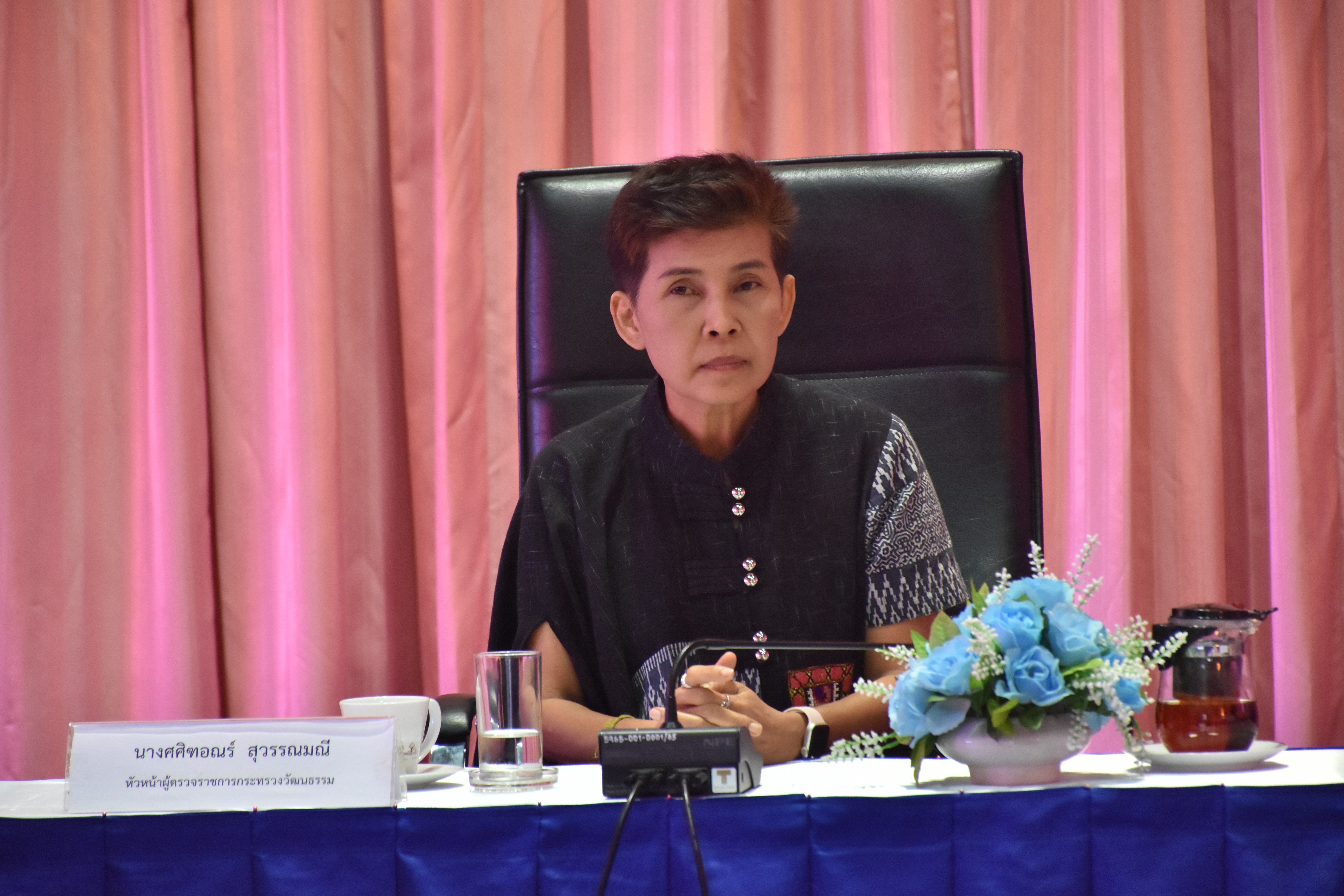 นางศศิฑอณร์ สุวรรณมณี ผู้ตรวจราชการกระทรวงวัฒนธรรม พร้อมคณะ ลงพื้นที่ตรวจราชการหน่วยงานในสังกัดกระทรวงวัฒนธรรม ณ ห้องประชุมพิพิธภัณฑสถานแห่งชาติพิมาย