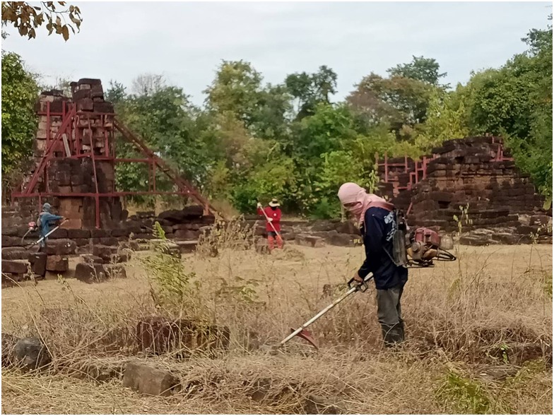สำนักศิลปากรที่ ๑๐ นครราชสีมา ดำเนินงานถากถางกำจัดวัชพืชและสิ่งกีดขวางบนตัวอาคารโบราณสถาน ปราสาทยายเหงา ตำบลบ้านชบ อำเภอสังขะ จังหวัดสุรินทร์, ปราสาทมีชัย(ปราสาทหมื่นชัย) ตำบลกระเทียม อำเภอสังขะ จังหวัดสุรินทร์, ปราสาทกังแอน ตำบลกระเทียม อำเภอสังขะ จังหวัดสุรินทร์ ระหว่างวันที่ ๒๓-๒๗ ธันวาคม ๒๕๖๗