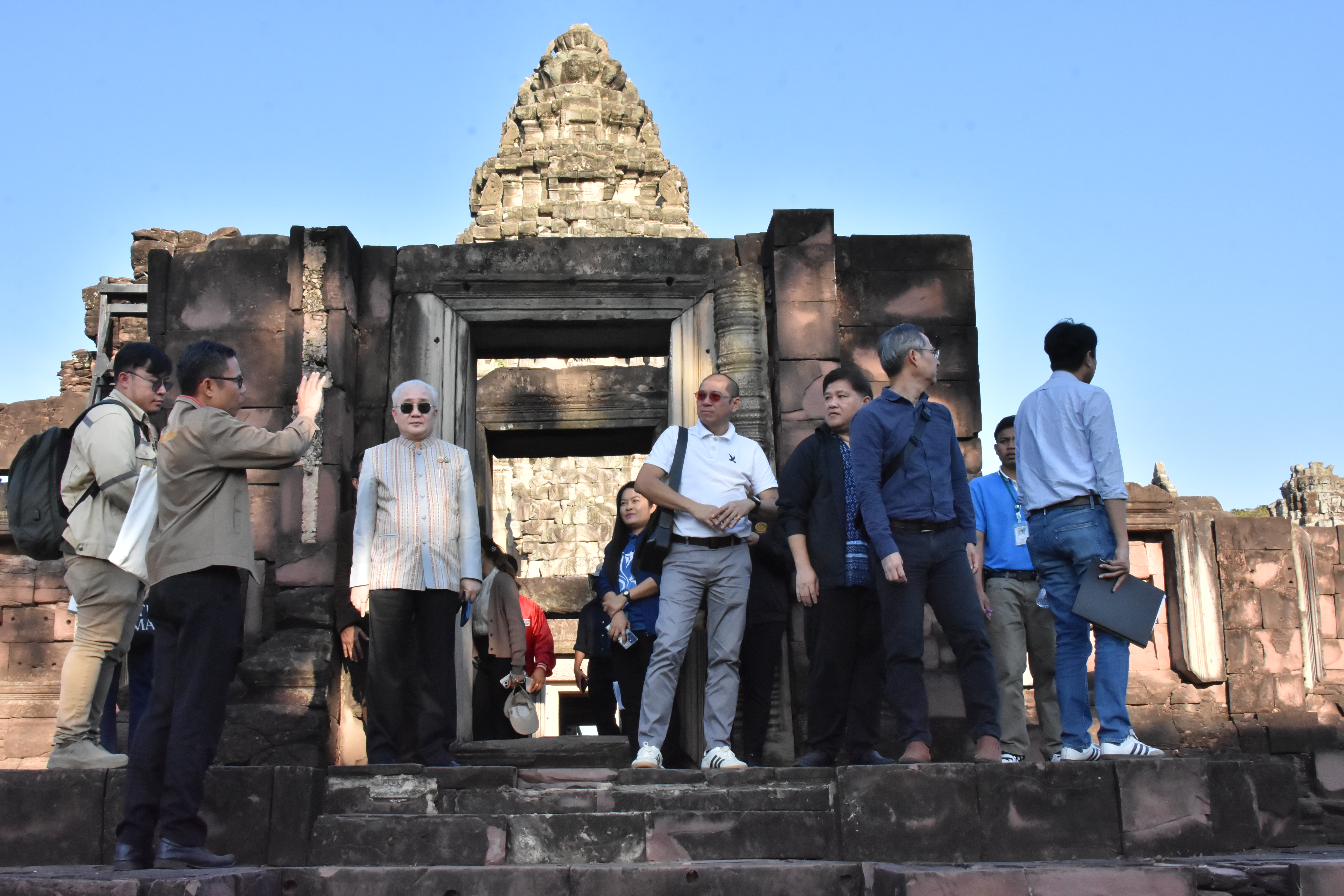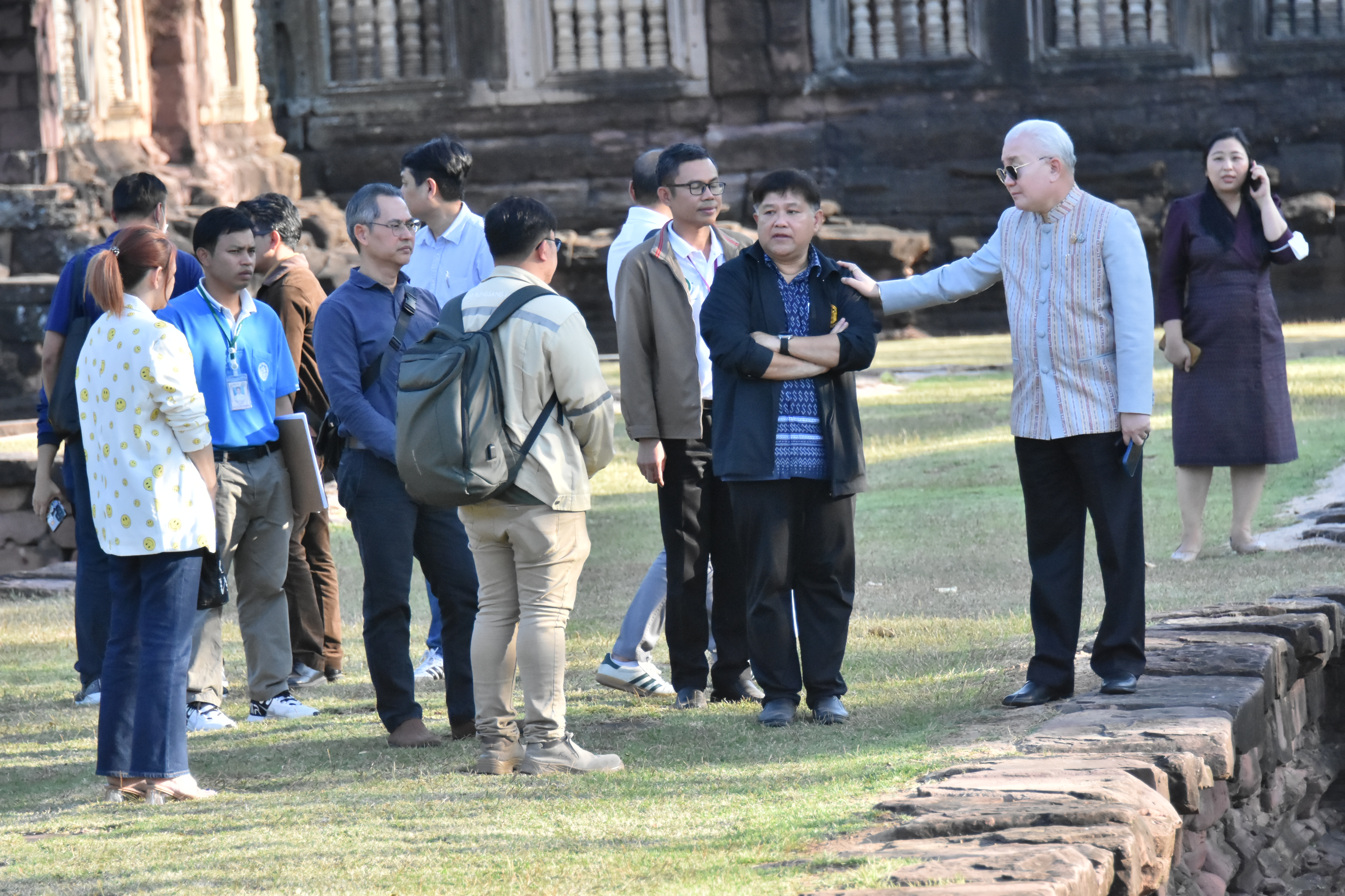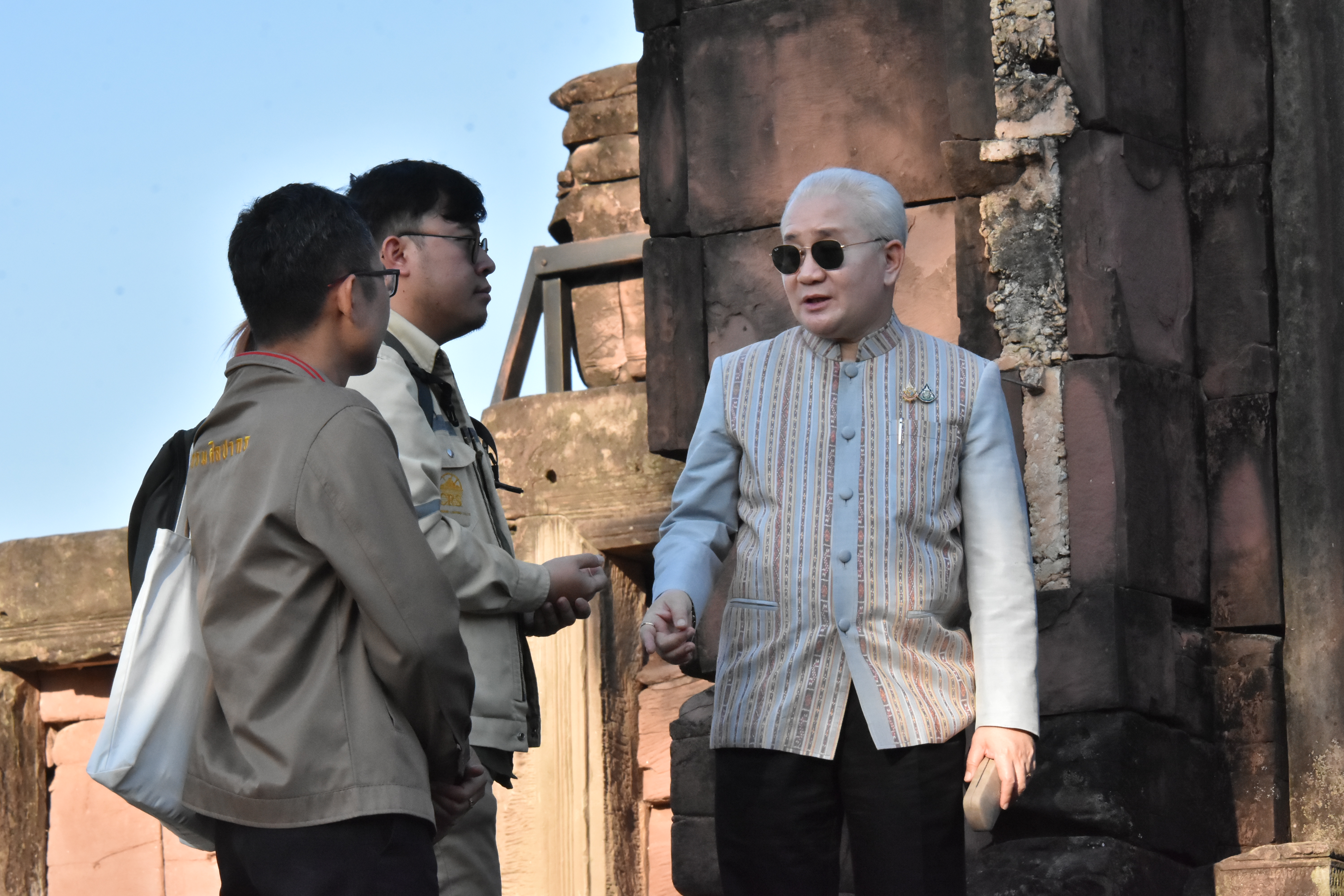 จากนั้นตรวจเยี่ยมพื้นที่หลังจากการดำเนินโครงการปรับปรุงภูมิทัศน์และถนนผิวทางแอสฟัสติกคอนกรีตรอบโบราณสถานสระเพลง งบประมาณปี ๒๕๖๗ โดยการดำเนินงานของอุทยานประวัติศาสตร์พิมาย จังหวัดนครราชสีมา