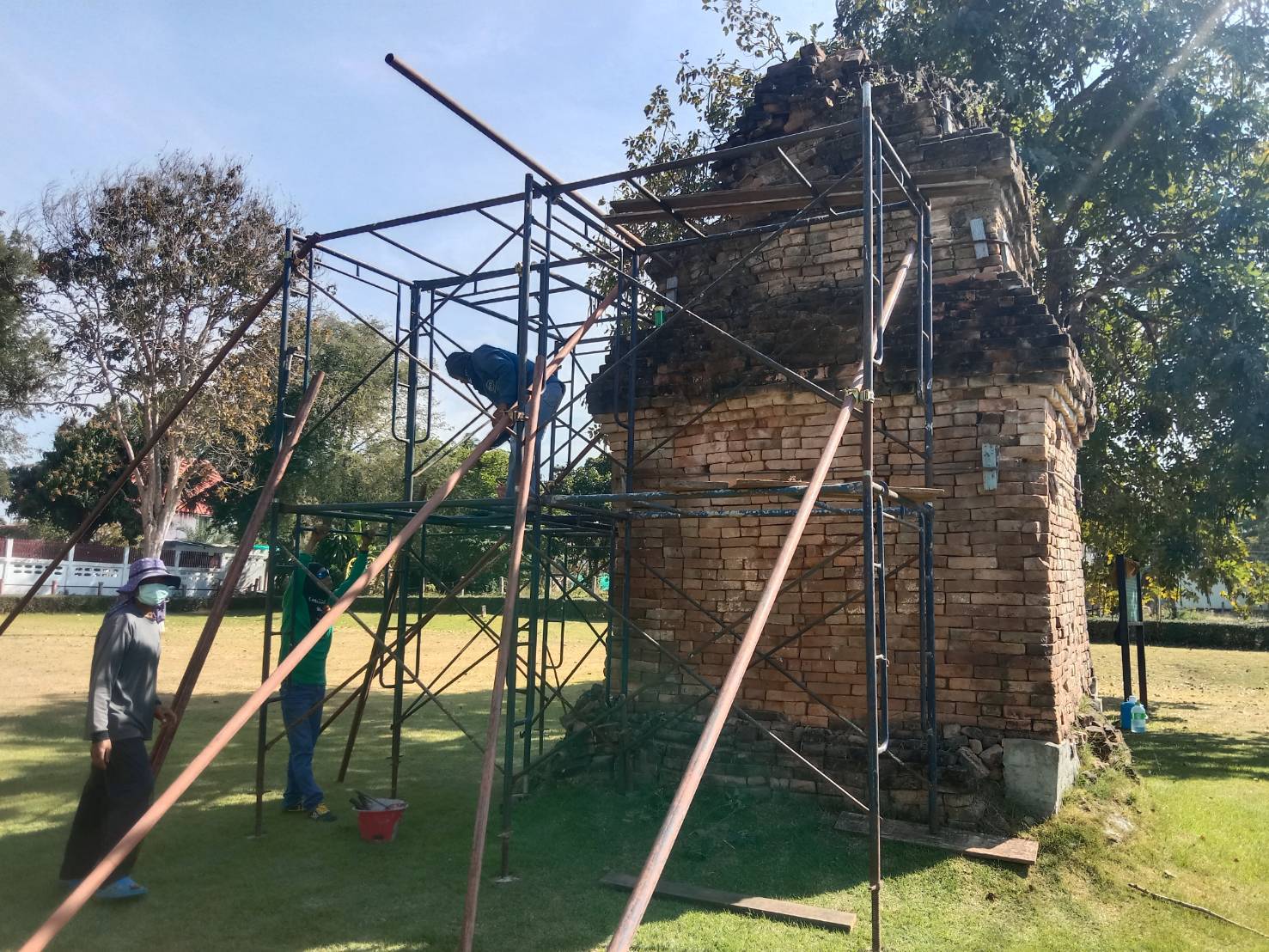 ดำเนินงานซ่อมแซมส่วนที่ชำรุดแล้วเสริมความแข็งแรงเพิ่มเติมโบราณสถานปราสาทตามอญ ตำบลรบัวเชด อำเภอบัวเชด จังหวัดสุรินทร์ เมื่อวันที่ ๒๑-๒๔ มกราคม ๒๕๖๘