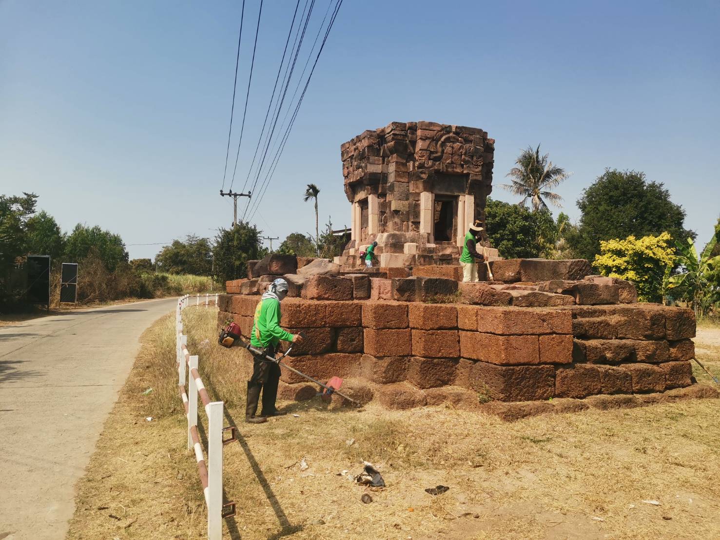 เจ้าหน้าที่สำนักศิลปากรที่ ๑๐ นครราชสีมา ลงพื้นที่ดำเนินงานถากถางกำจัดวัชพืชและสิ่งกีดขวางบนตัวโบราณสถานบ้านปรางค์ ตำบลนกออก อำเภอปักธงชัย จังหวัดนครราชสีมา