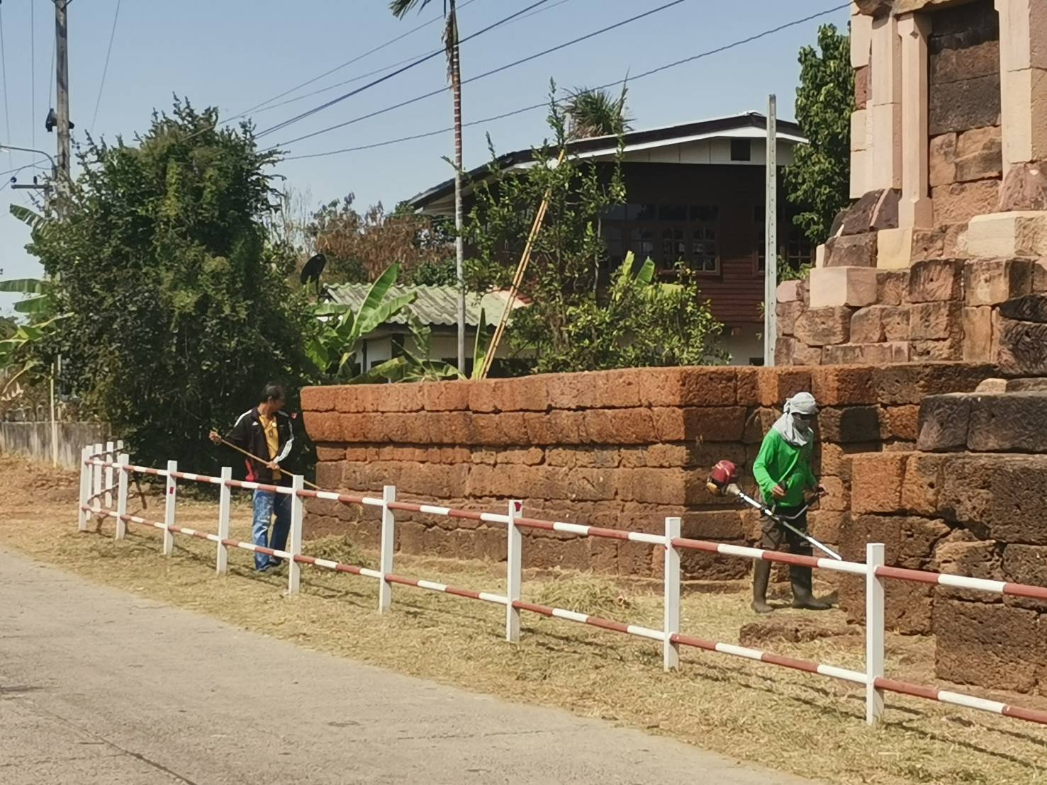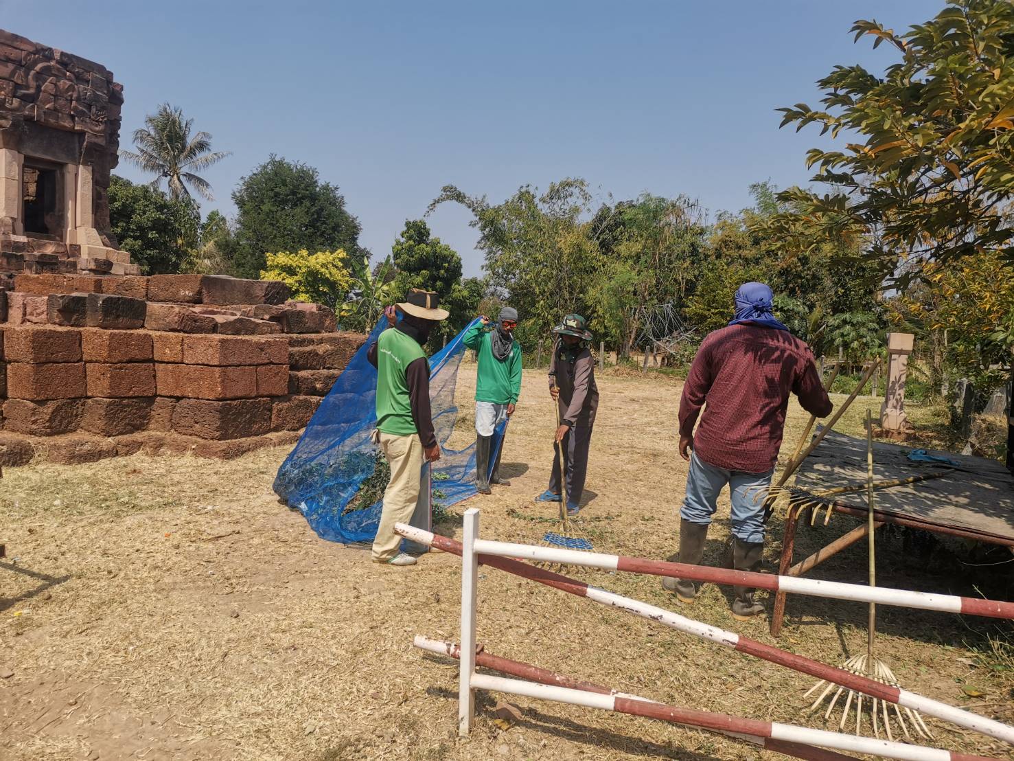 ดำเนินงานถากถางกำจัดวัชพืชและสิ่งกีดขวางบนตัวโบราณสถานบ้านปรางค์ ตำบลนกออก อำเภอปักธงชัย จังหวัดนครราชสีมา