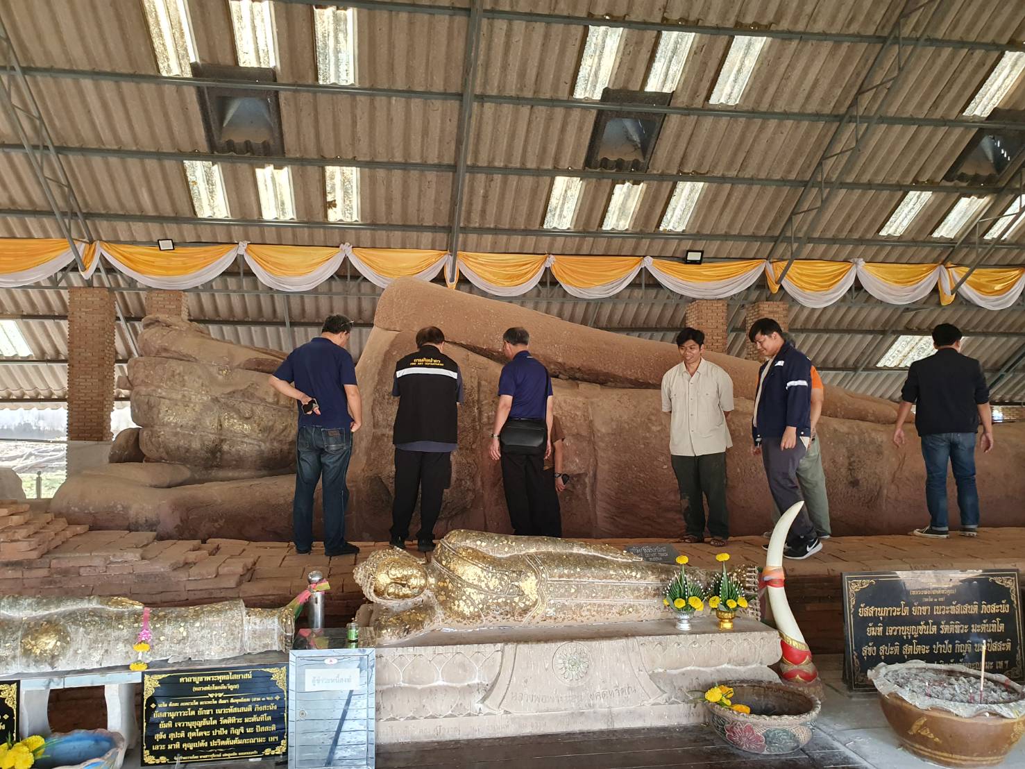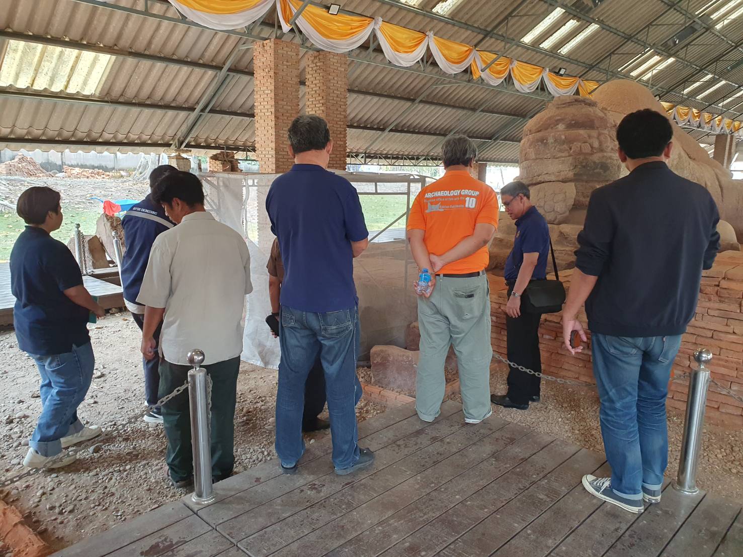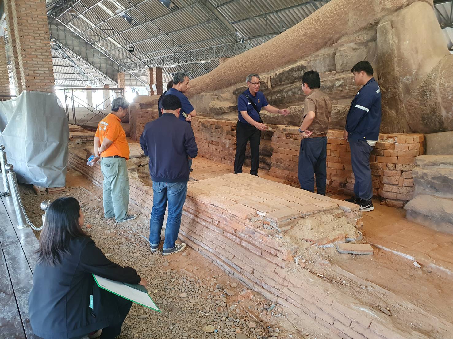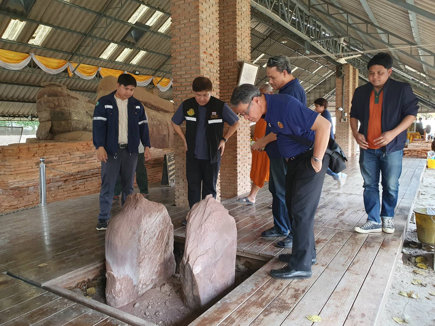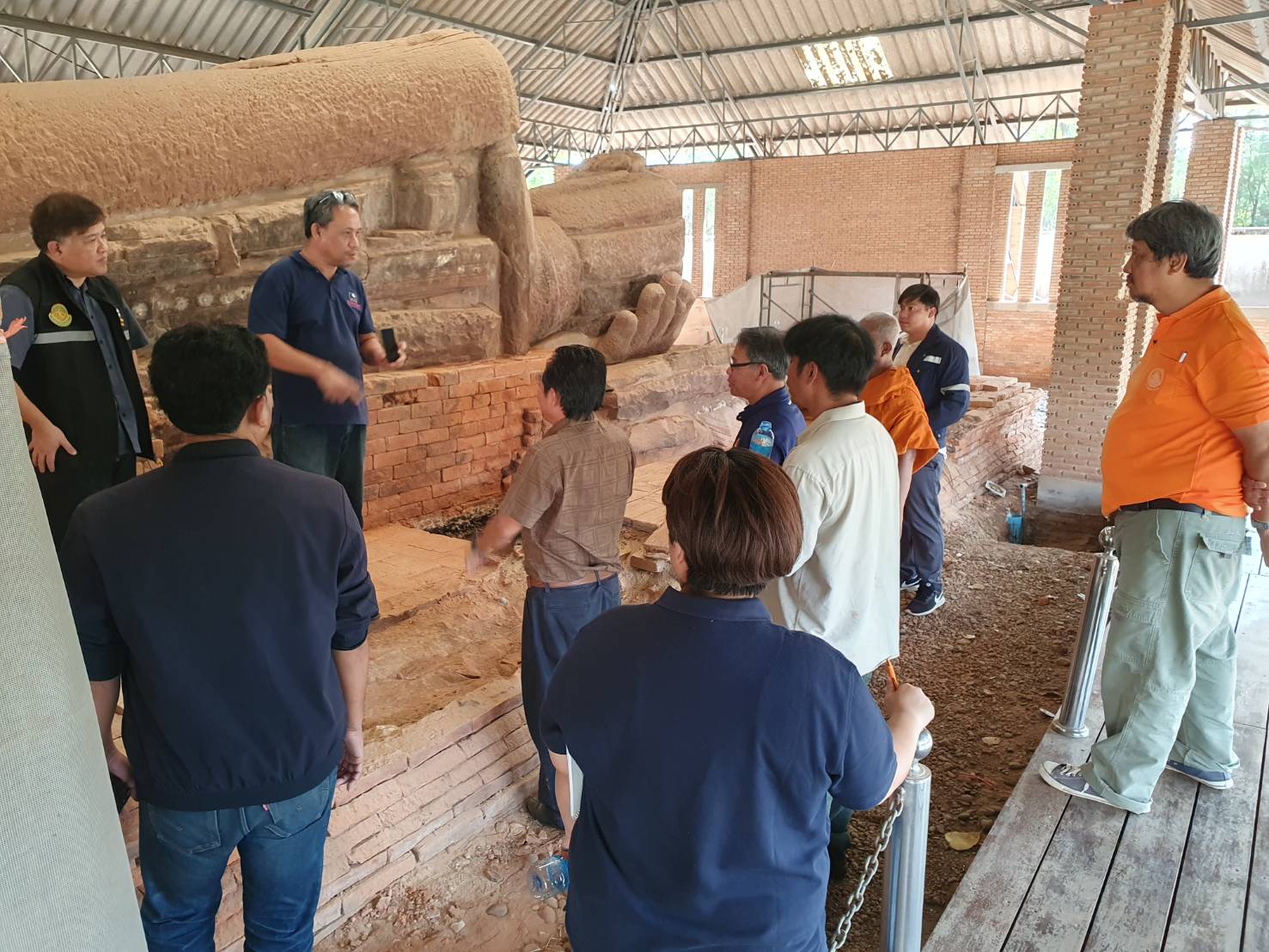 นายกิตติพันธ์ พานสุวรรณ ที่ปรึกษากรมศิลปากร (ด้านการบูรณะโบราณสถานและวิศวกรรม) ลงพื้นที่เพื่อติดตามความคืบหน้าพร้อมทั้งให้คำแนะนำในการดำเนินงานโครงการอนุรักษ์และพัฒนาโบราณสถานพระนอน วัดธรรมจักรเสมาราม ตำบลเสมา อำเภอสูงเนิน จังหวัดนครราชสีมา