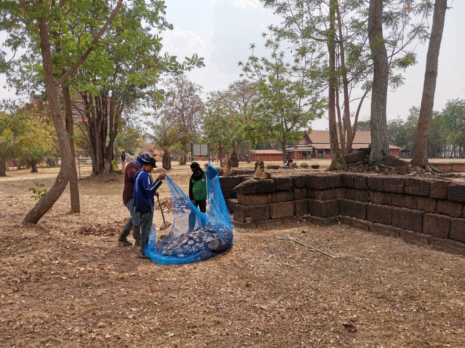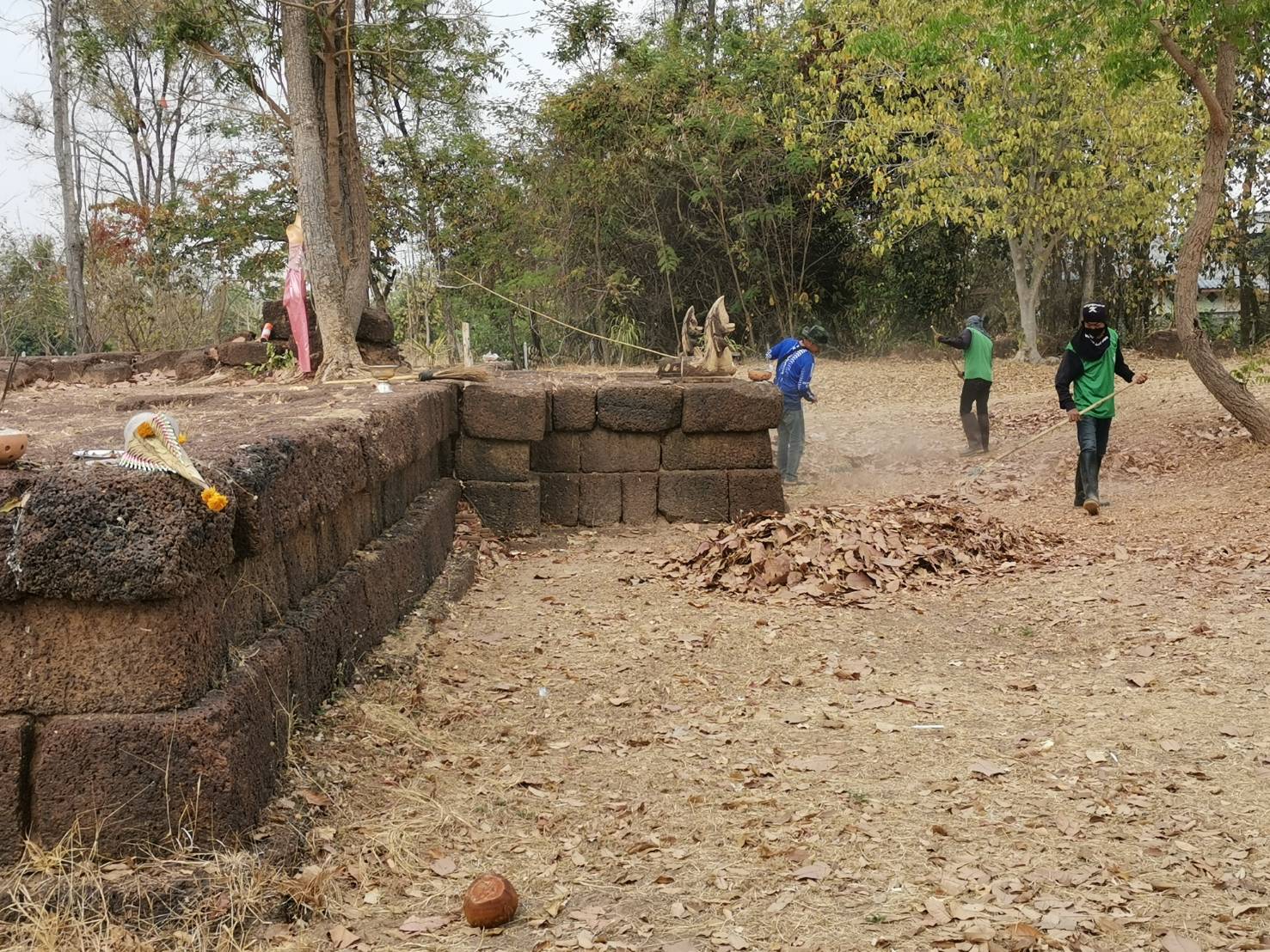 ดำเนินงานถากถางกำจัดวัชพืชและสิ่งกีดขวางโบราณสถานและทำความสะอาดบริเวณโดยรอบโบราณสถานปราสาทสระสะแก ตำบลกระสัง อำเภอหนองกี่ จังหวัดบุรีรัมย์ ระหว่างวันที่ ๑๗-๒๒ กุมภาพันธ์ ๒๕๖๘