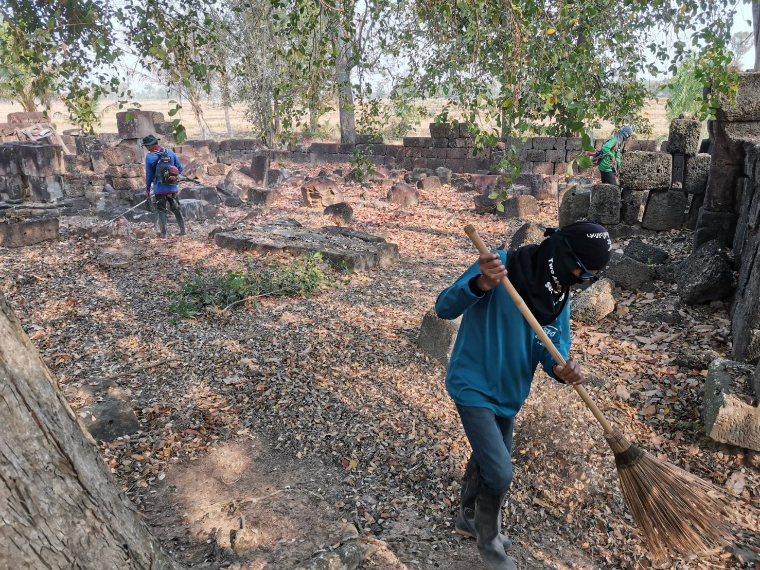 ดำเนินงานถากถางกำจัดวัชพืชและสิ่งกีดขวางโบราณสถานและทำความสะอาดบริเวณโดยรอบโบราณสถานปราสาทหนองตาสี ตำบลไทยเจริญ อำเภอปะคำ จังหวัดบุรีรัมย์ ระหว่างวันที่ ๑๗-๒๒ กุมภาพันธ์ ๒๕๖๘
