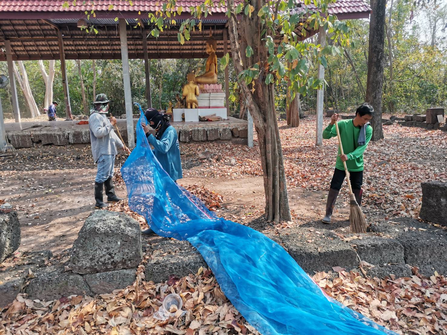 ดำเนินงานถากถางกำจัดวัชพืชและสิ่งกีดขวางโบราณสถานและทำความสะอาดบริเวณโดยรอบโบราณสถานปราสาทหนองถั่วแปป ตำบลหัวถนน อำเภอนางรอง จังหวัดบุรีรัมย์ ระหว่างวันที่ ๑๗-๒๒ กุมภาพันธ์ ๒๕๖๘