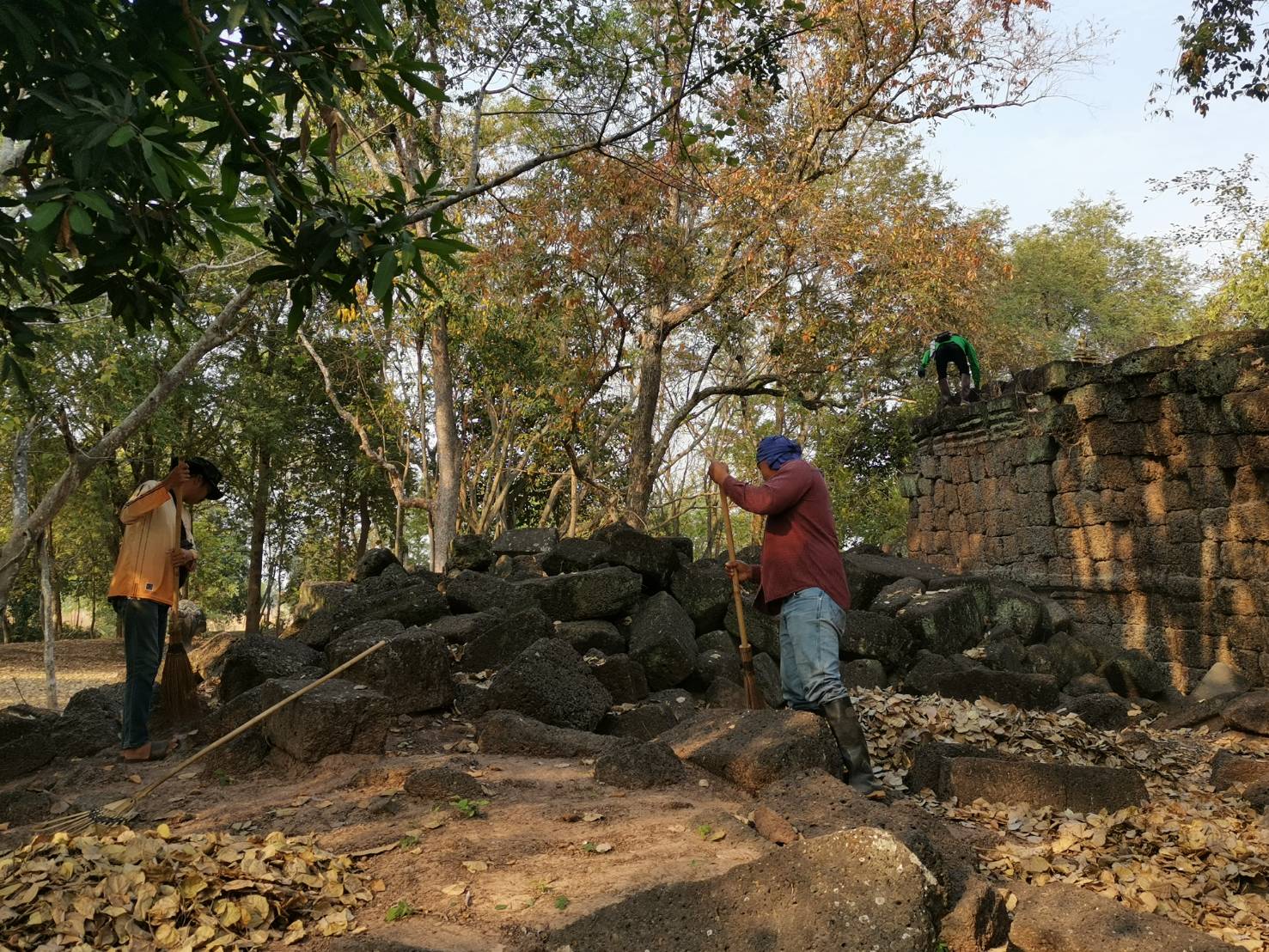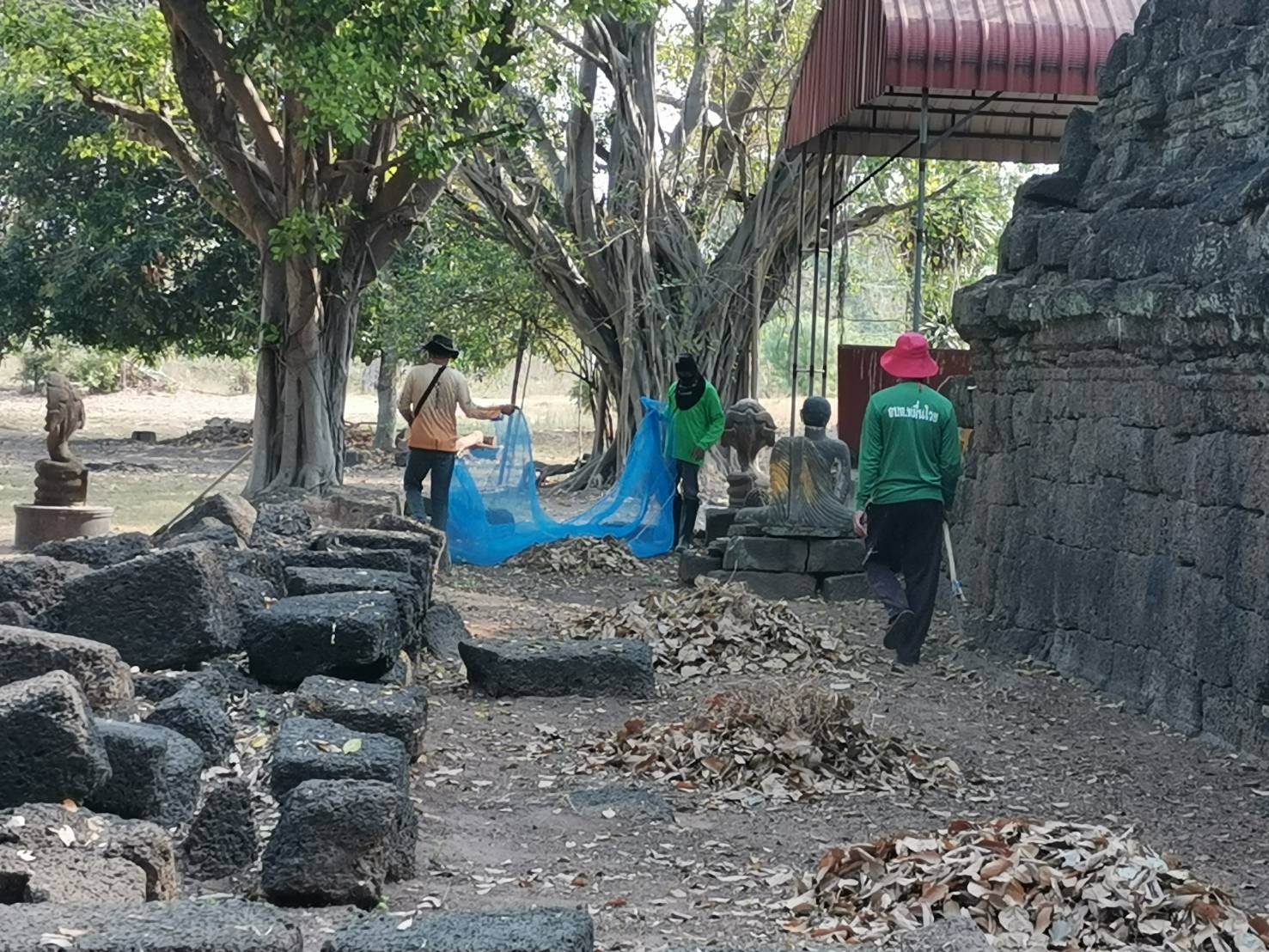 ดำเนินงานถากถางกำจัดวัชพืชและสิ่งกีดขวางโบราณสถานและทำความสะอาดบริเวณโดยรอบโบราณสถานปราสาทหนองตาเปล่ง ตำบลช่อผกา อำเภอชำนิ จังหวัดบุรีรัมย์ ระหว่างวันที่ ๑๗-๒๒ กุมภาพันธ์ ๒๕๖๘