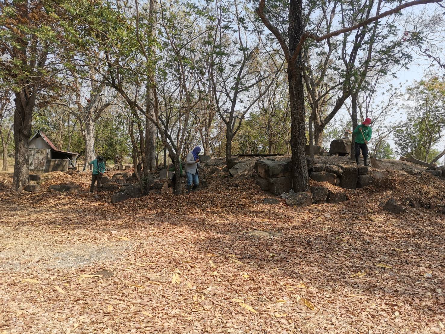 ดำเนินงานถากถางกำจัดวัชพืชและสิ่งกีดขวางโบราณสถานและทำความสะอาดบริเวณโดยรอบโบราณสถานปราสาทหัววัว ตำบลเสม็ด อำเภอเมือง จังหวัดบุรีรัมย์ ระหว่างวันที่ ๑๗-๒๒ กุมภาพันธ์ ๒๕๖๘