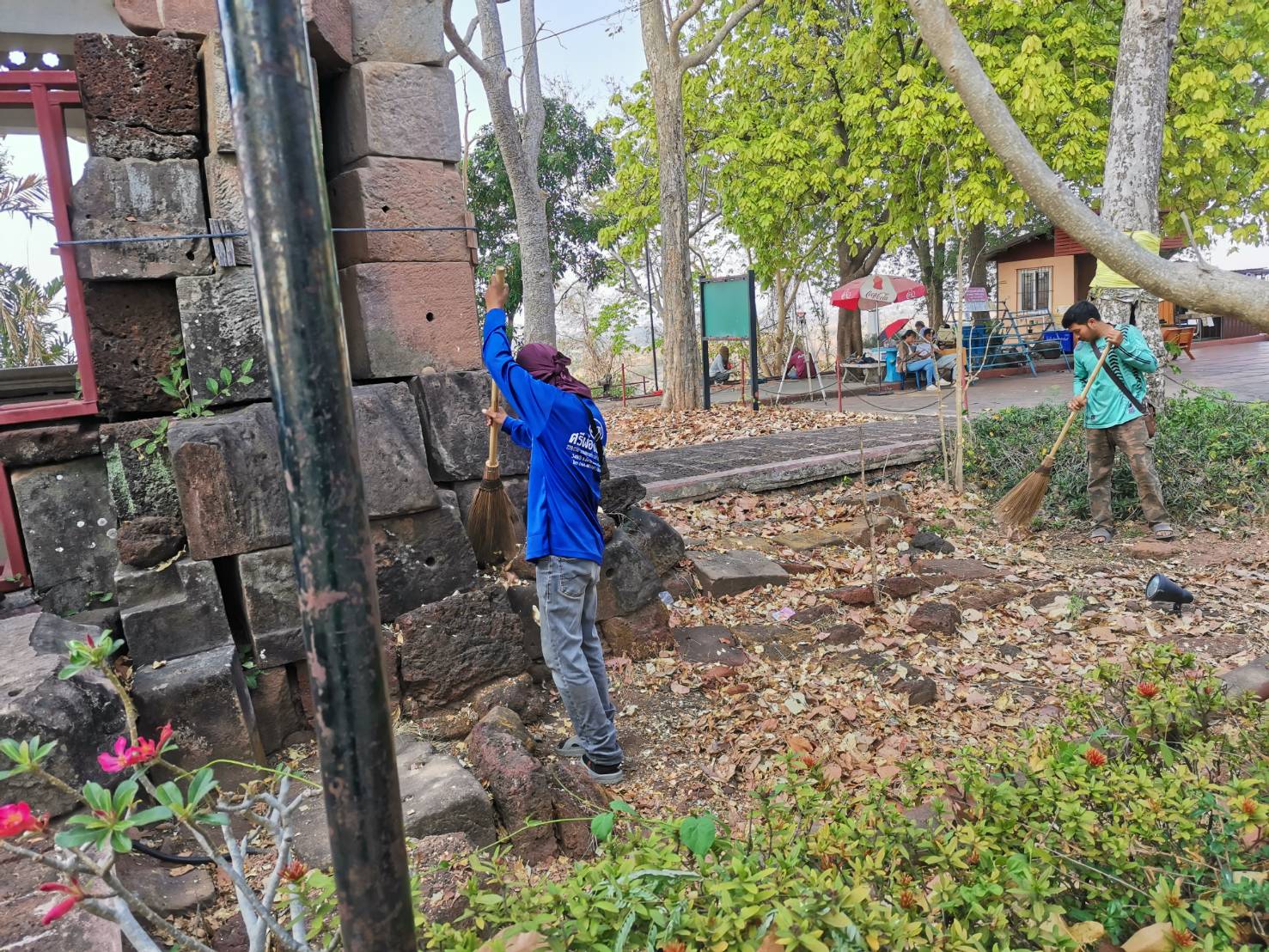 ดำเนินงานถากถางกำจัดวัชพืชและสิ่งกีดขวางโบราณสถานและทำความสะอาดบริเวณโดยรอบโบราณสถานปราสาทเขากระโดง ตำบลเสม็ด อำเภอเมือง จังหวัดบุรีรัมย์ ระหว่างวันที่ ๑๗-๒๒ กุมภาพันธ์ ๒๕๖๘
