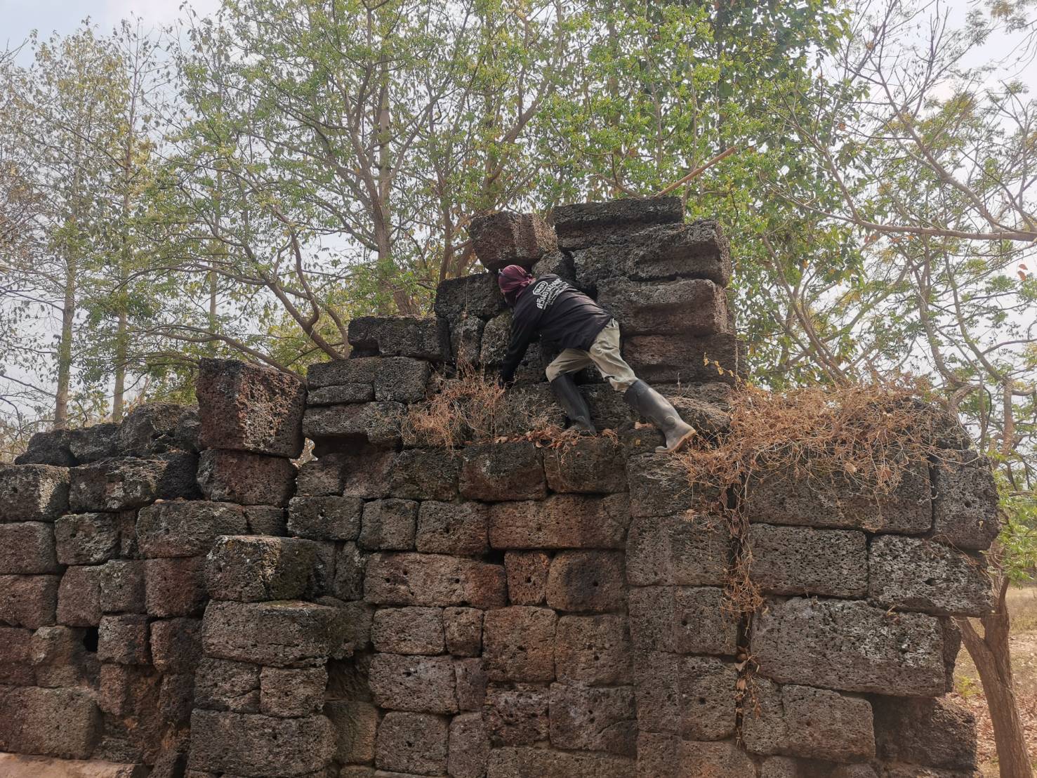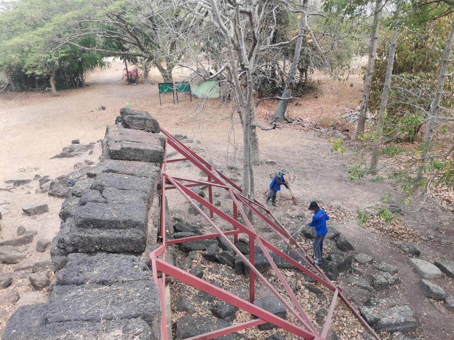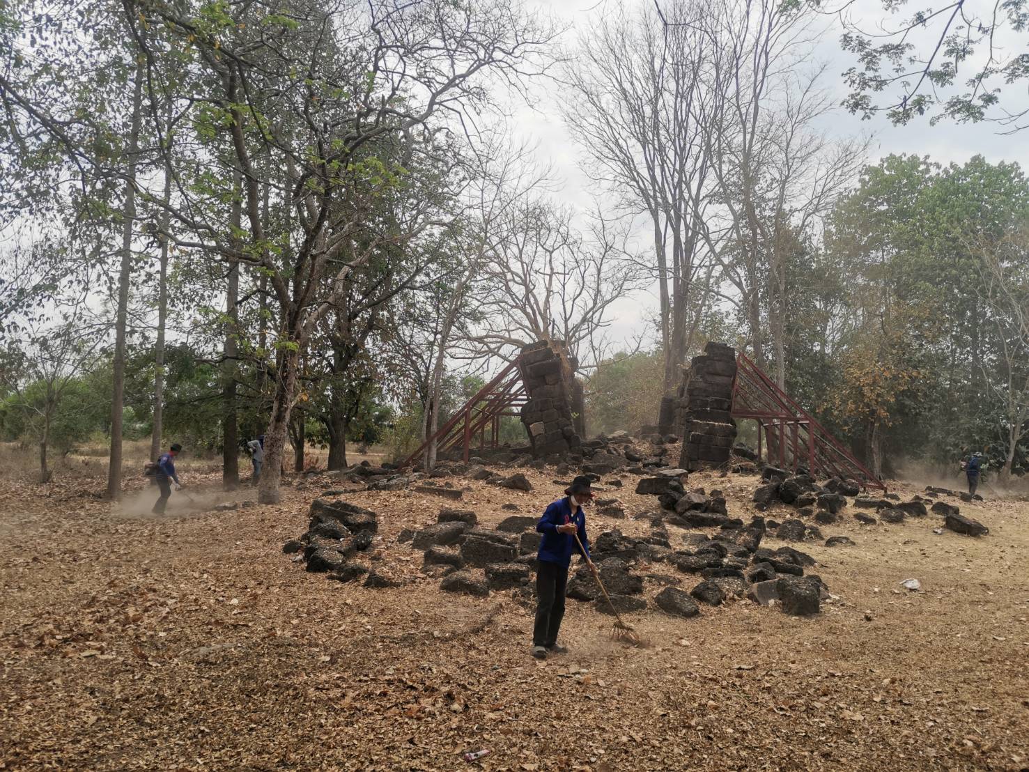ดำเนินงานถากถางกำจัดวัชพืชและสิ่งกีดขวางโบราณสถานและทำความสะอาดบริเวณโดยรอบโบราณสถานปราสาทถมอ ตำบลหินลาด อำเภอบ้านกรวด จังหวัดบุรีรัมย์ ระหว่างวันที่ ๑๗-๒๒ กุมภาพันธ์ ๒๕๖๘