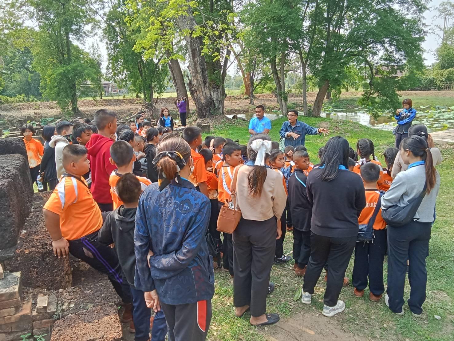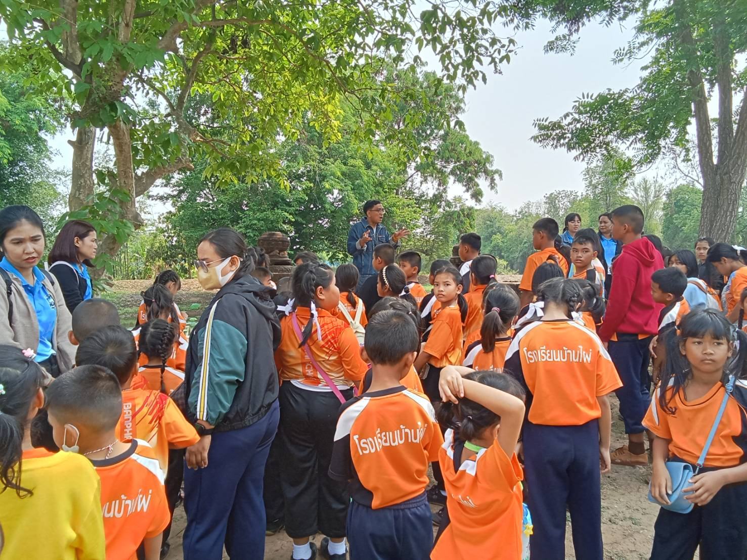นายวีระชาติ พงค์ชนะ นักโบราณคดีชำนาญการ วิทยากรบรรยายให้กับคณะครูและนักเรียนโรงเรียนบ้านไผ่ ตำบลจระเข้หิน อำเภอครบุรี จังหวัดนครราชสีมา