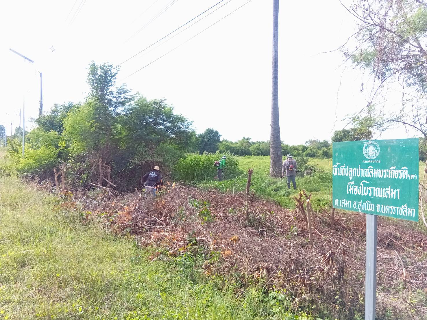 เจ้าหน้าที่สำนักศิลปากรที่ 10 นครราชสีมา ลงพื้นที่ดำเนินงานถากถางกำจัดวัชพืช ทำความสะอาดบริเวณโดยรอบคูน้ำคันดินโบราณสถานเมืองเสมา และพื้นที่สำหรับเตรียมการปลูกต้นไม้เฉลิมพระเกียรติฯ ตำบลเสมา อำเภอสูงเนิน จังหวัดนครราชสีมา ระหว่างวันที่ 5-10 มีนาคม 2568