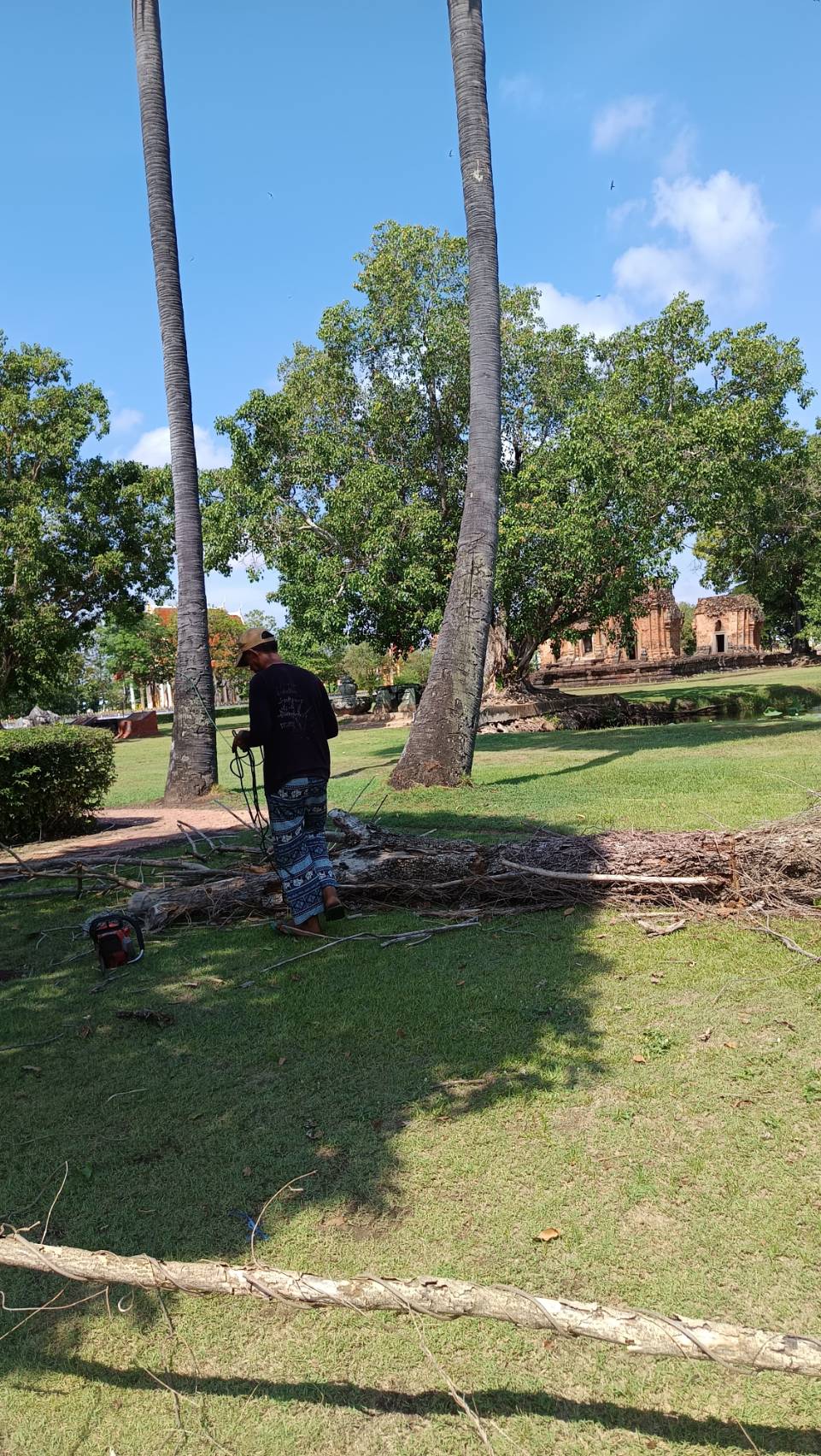 การดำเนินงานถากถางกำจัดวัชพืชโบราณและดูแลความเรียบร้อยบริเวณพื้นที่โดยรอบสถานปราสาทศีขรภูมิ ตำบลระแงง อำเภอศีขรภูมิ จังหวัดสุรินทร์ ในวันพุธที่ 21 พฤษภาคม 2568