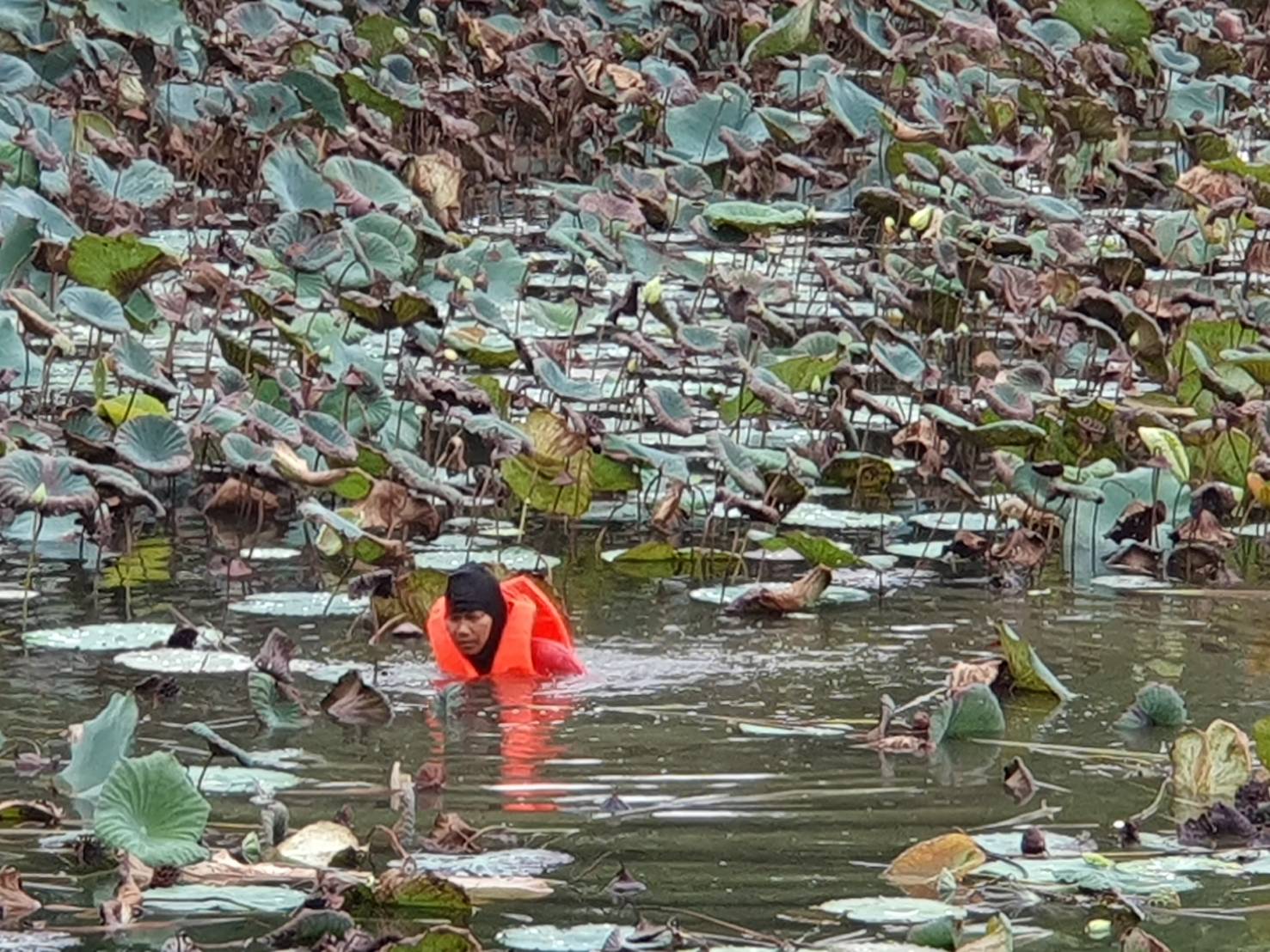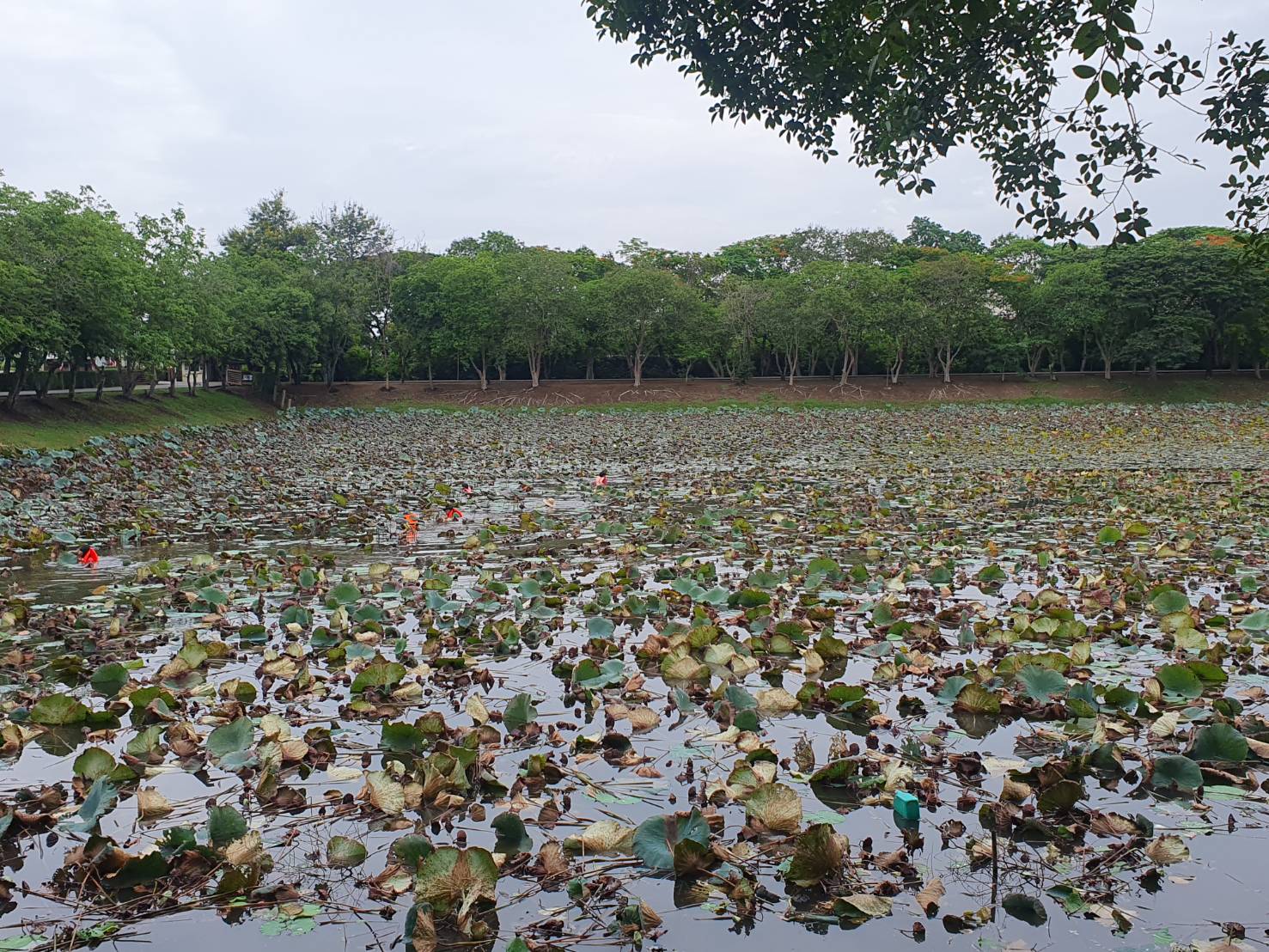 เจ้าหน้าที่ดำเนินการกำจัดวัชพืชภายในสระน้ำโบราณ (สระช่องแมว) บริเวณพื้นที่อาคารสำนักงาน สำนักศิลปากรที่ ๑๐ นครราชสีมา ในวันศุกร์ที่ ๓๐ พฤษภาคม ๒๕๖๘