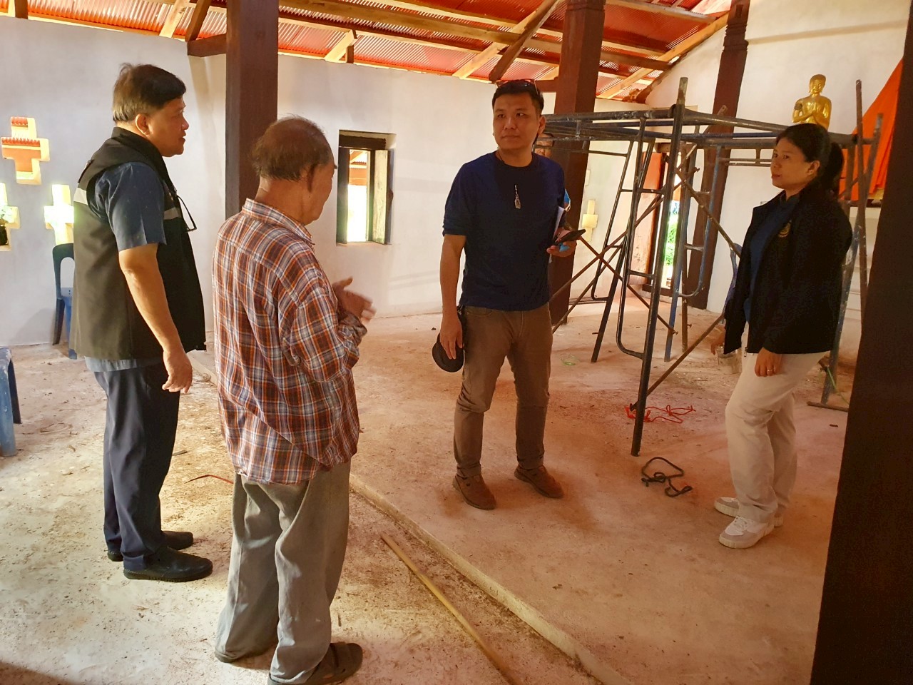 จากนั้นลงพื้นที่ติดตามความคืบหน้าการดำเนินงานโครงการบูรณะอุโบสถวัดเขื่อนคงคา ณ วัดเขื่อนคงคา ตําบลโคกสะอาด อําเภอลําปลายมาศ จังหวัดบุรีรัมย์