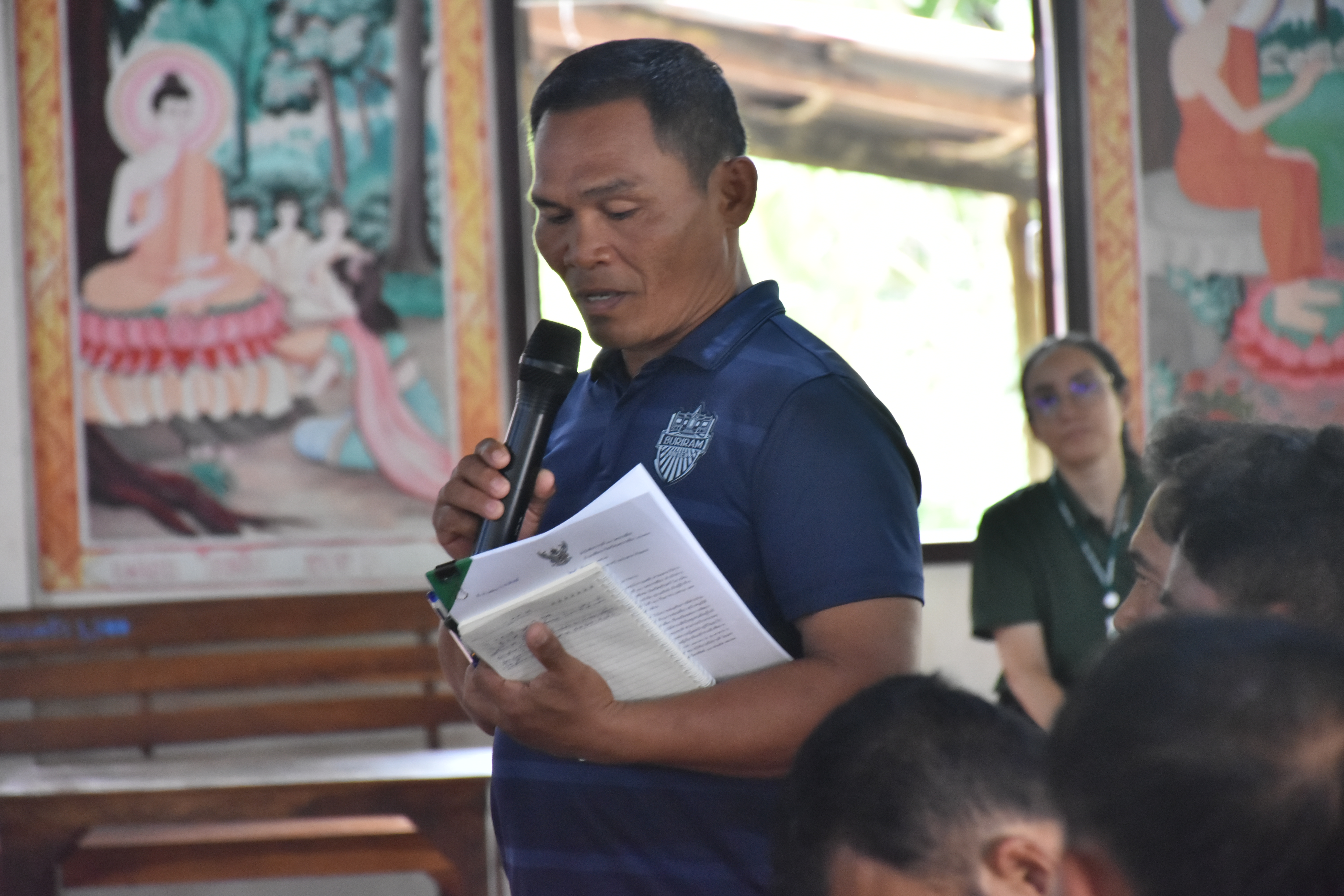 ชี้แจงแนวทางในการดำเนินงานโครงการบูรณะปราสาทบ้านปราสาท(กังแอน) ณ ศาลาการเปรียญวัดปราสาทมีชัย ตําบลกระเทียม อําเภอสังขะ จังหวัดสุรินทร์
