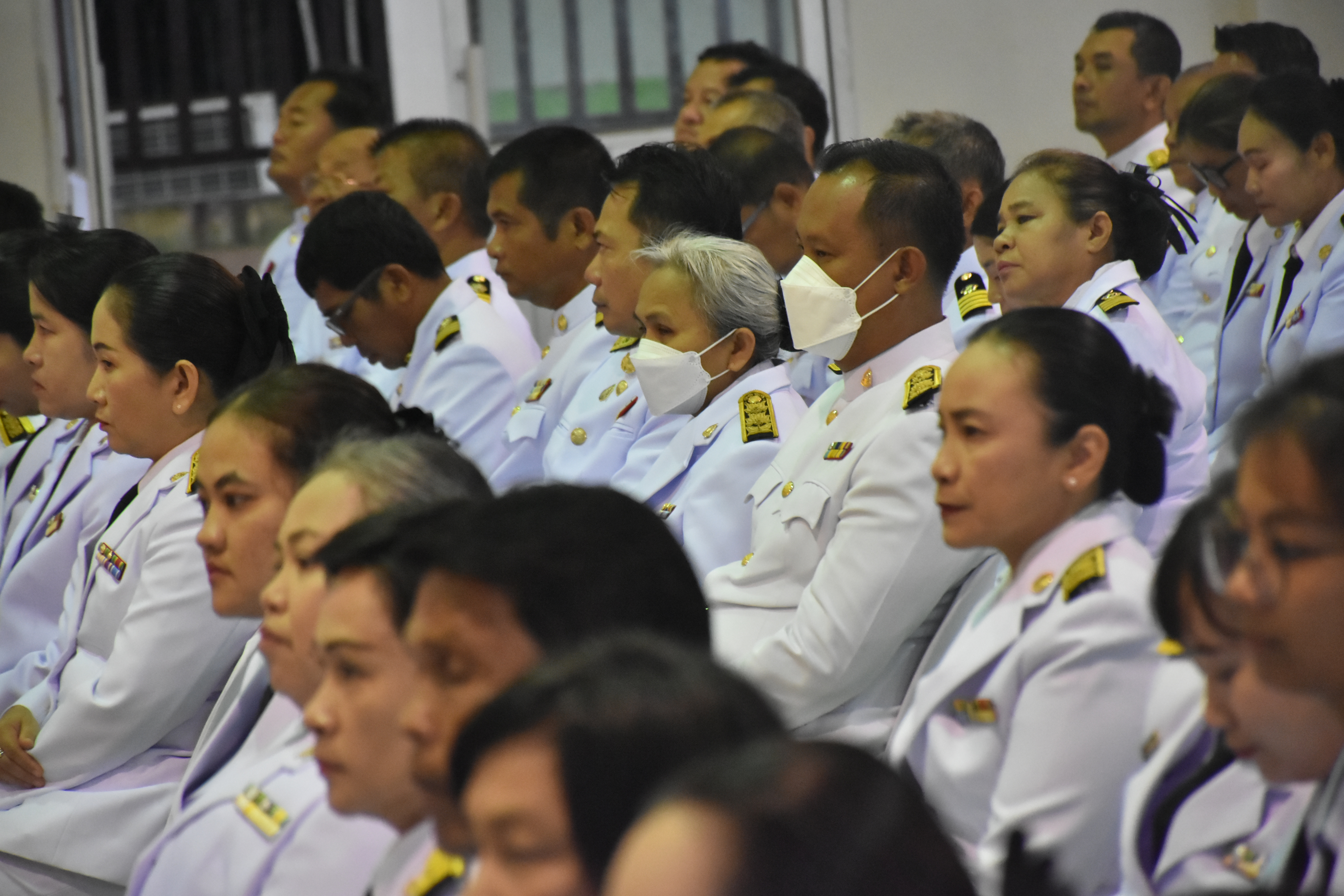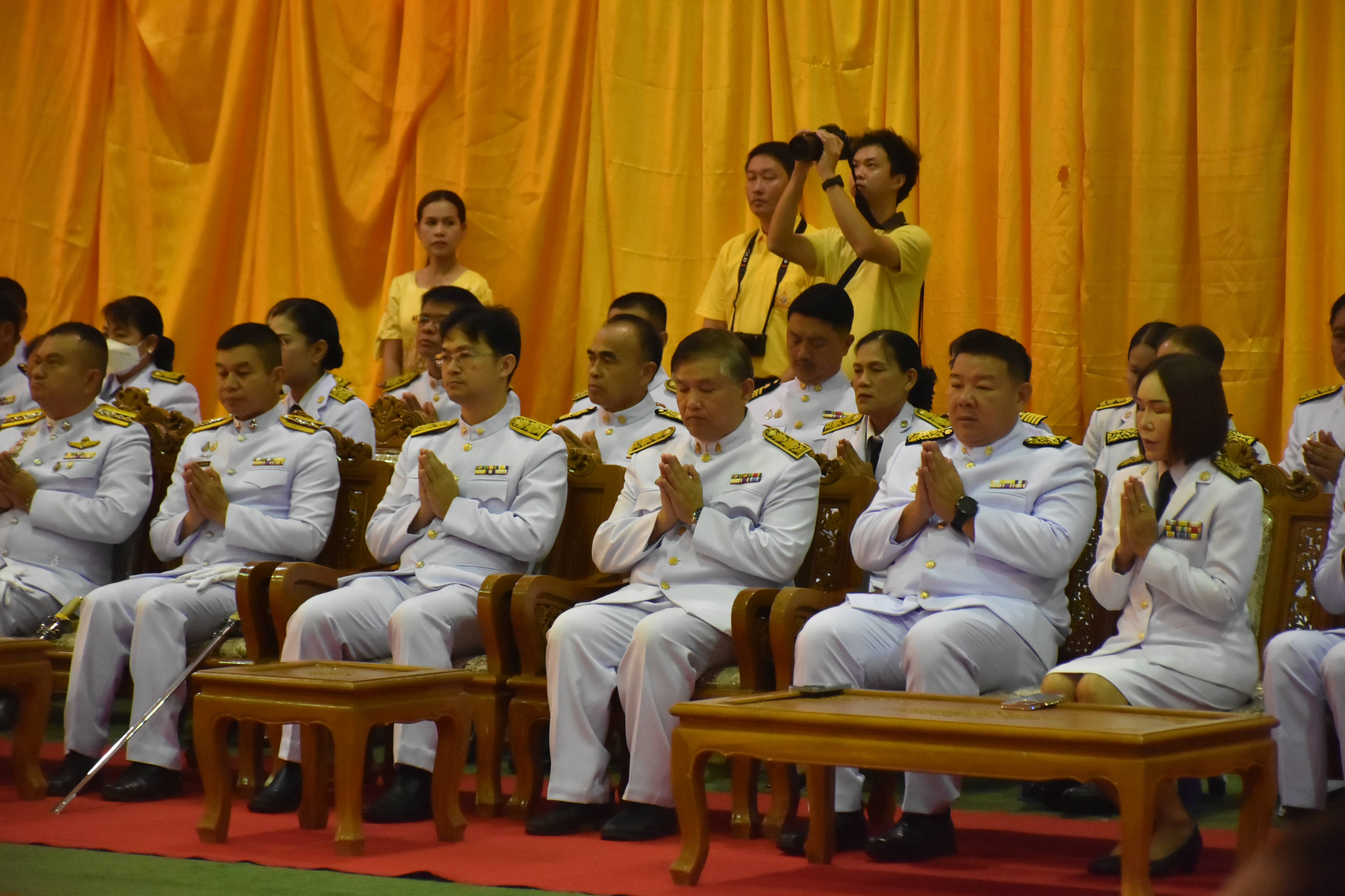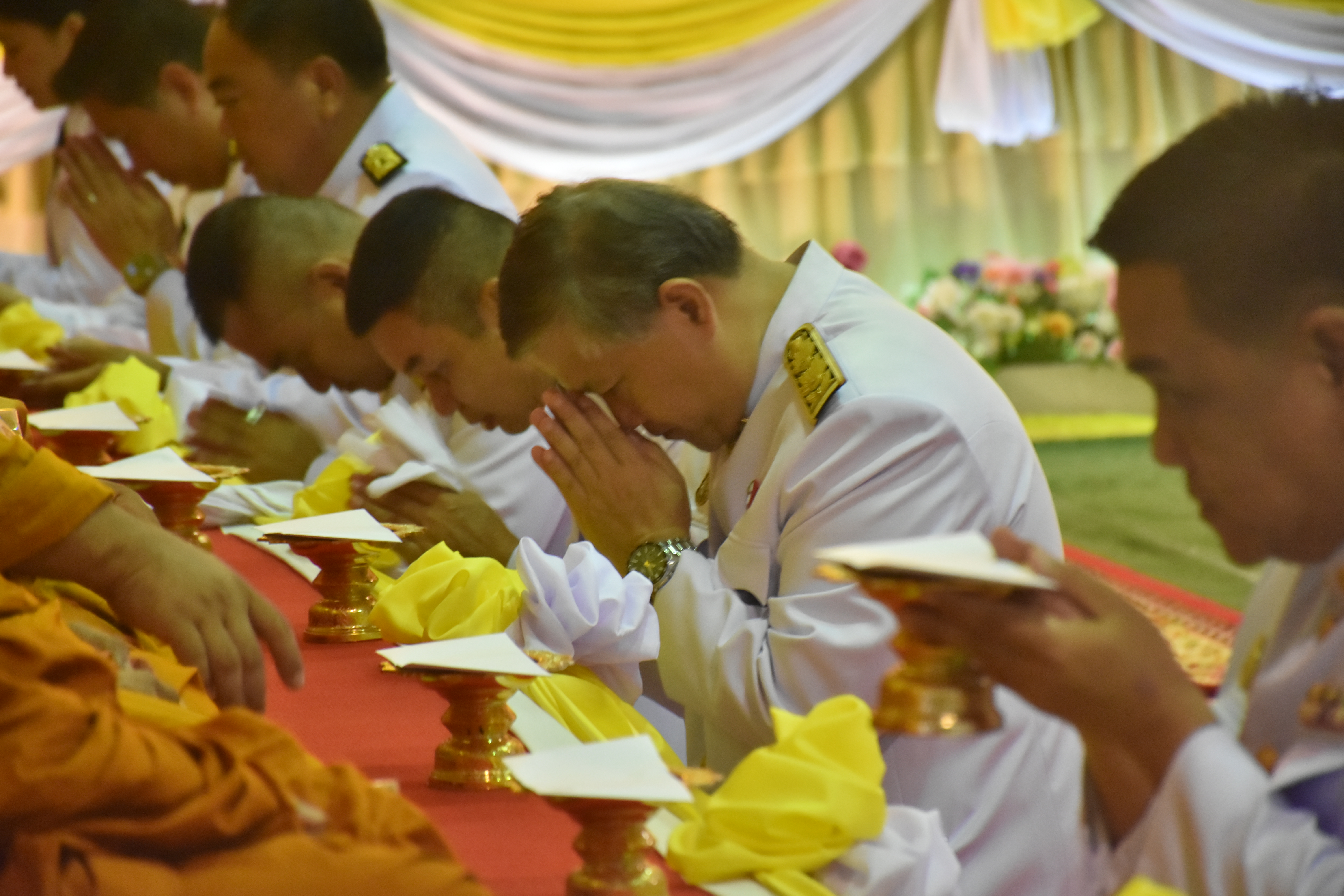 พิธีตักบาตรข้าวสารอาหารแห้ง และพิธีวางพวงมาลาเนื่องในวันนวมินทรมหาราช ณ หอประชุมที่ว่าการอำเภอพิมาย จังหวัดนครราชสีมา