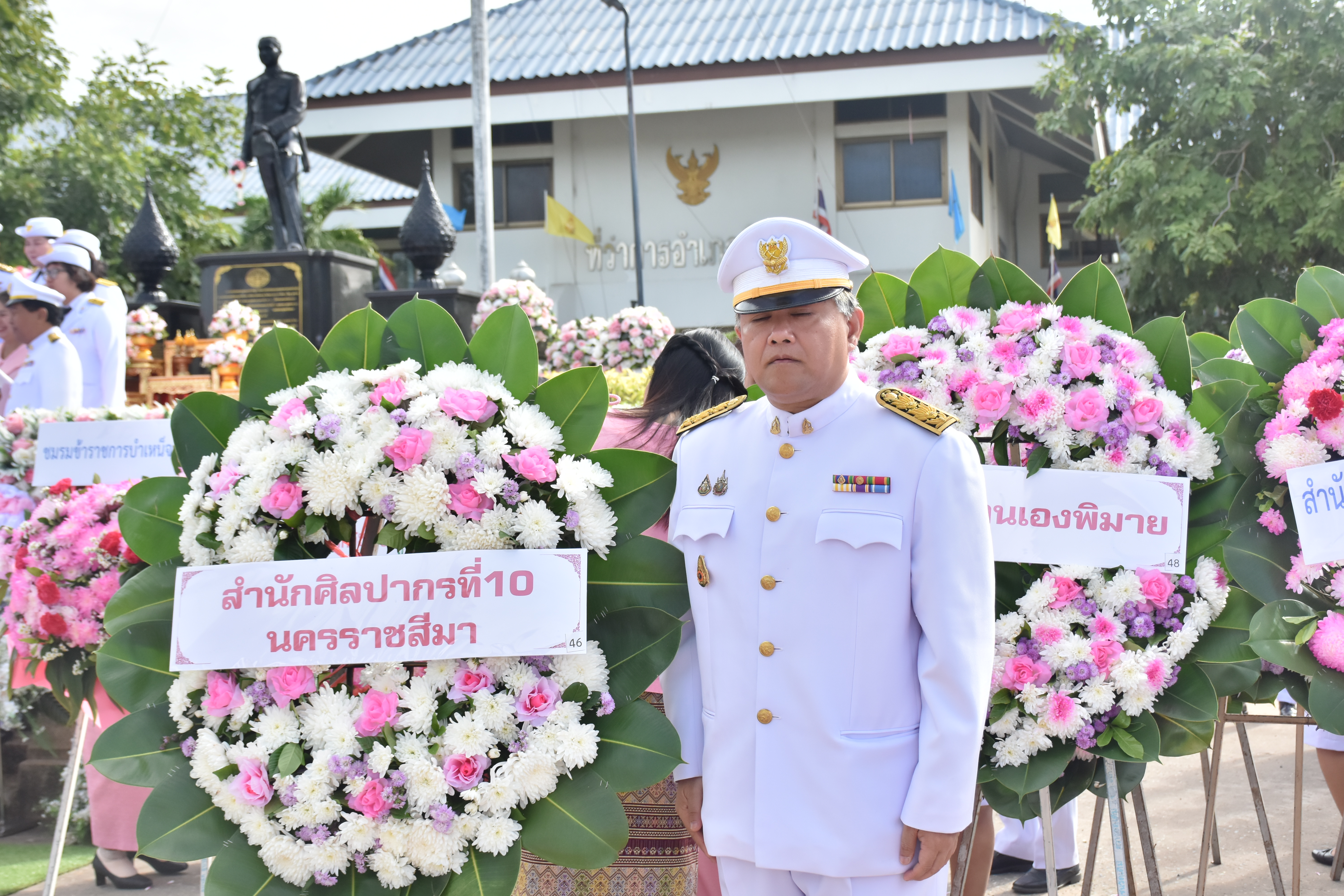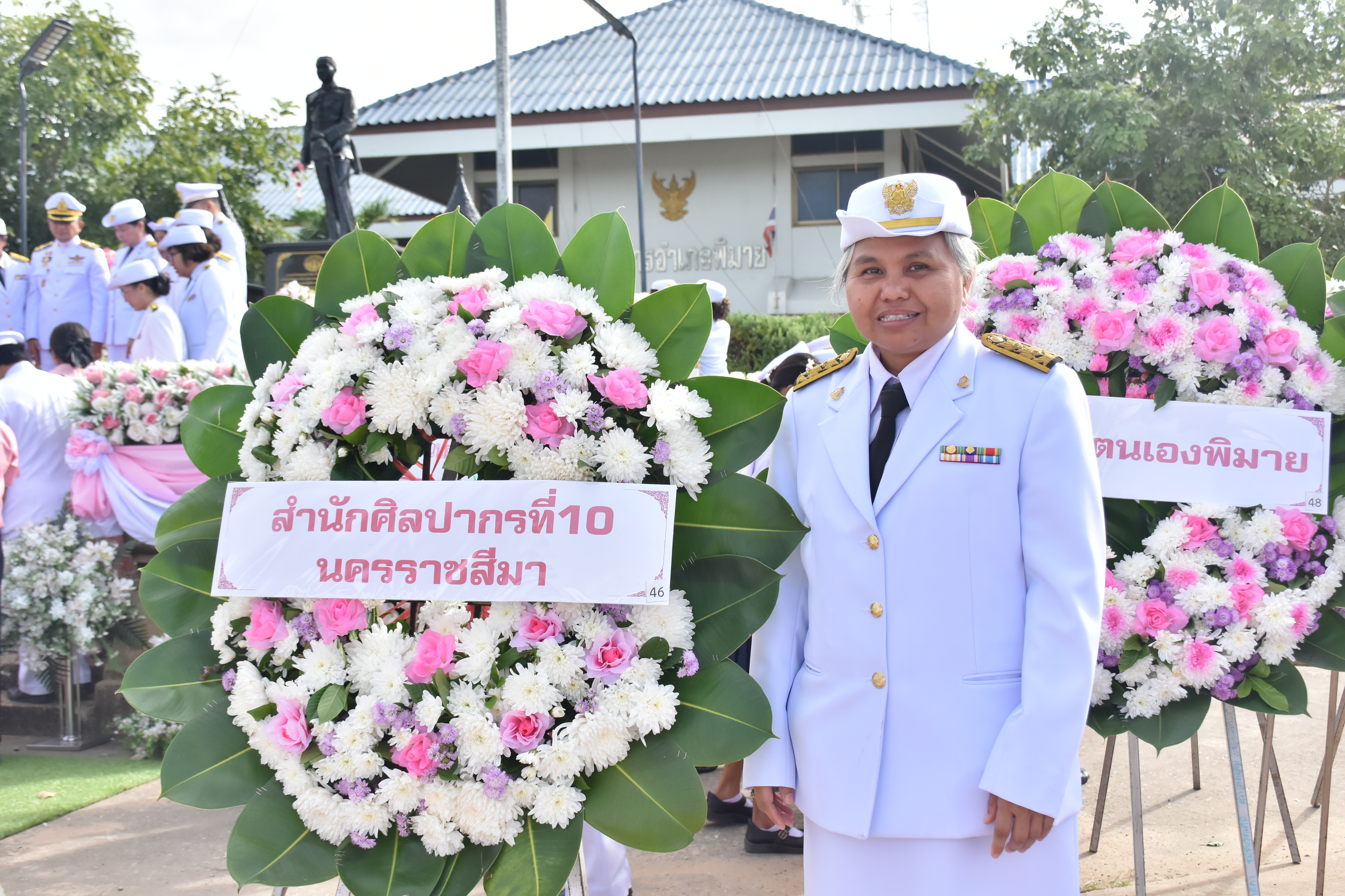 นายทศพร ศรีสมาน ผู้อำนวยการสำนักศิลปากรที่ ๑๐ นครราชสีมา พร้อมด้วยผู้อำนวยการพิพิธภัณฑสถานแห่งชาติพิมาย ผู้อำนวยการกลุ่มโบราณคดี หัวหน้าอุทยานประวัติศาสตร์พิมาย และหัวหน้าฝ่ายบริหารงานทั่วไป เข้าร่วมพิธีวางพวงมาลาถวายสักการะ เนื่องในวันคล้ายวันสวรรคตพระบาทสมเด็จพระปรมินทร มหาจุฬาลงกรณ์พระจุลจอมเกล้าเจ้าอยู่หัว ในวันพฤหัสบดีที่ ๒๓ ตุลาคม ๒๕๖๘ ณ บริเวณหน้าที่ว่าการอำเภอพิมาย อำเภอพิมาย จังหวัดนครราชสีมา