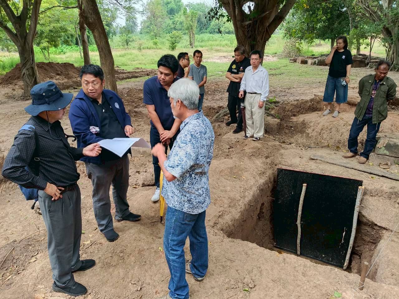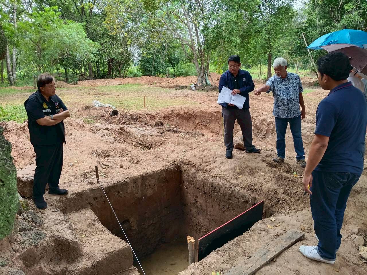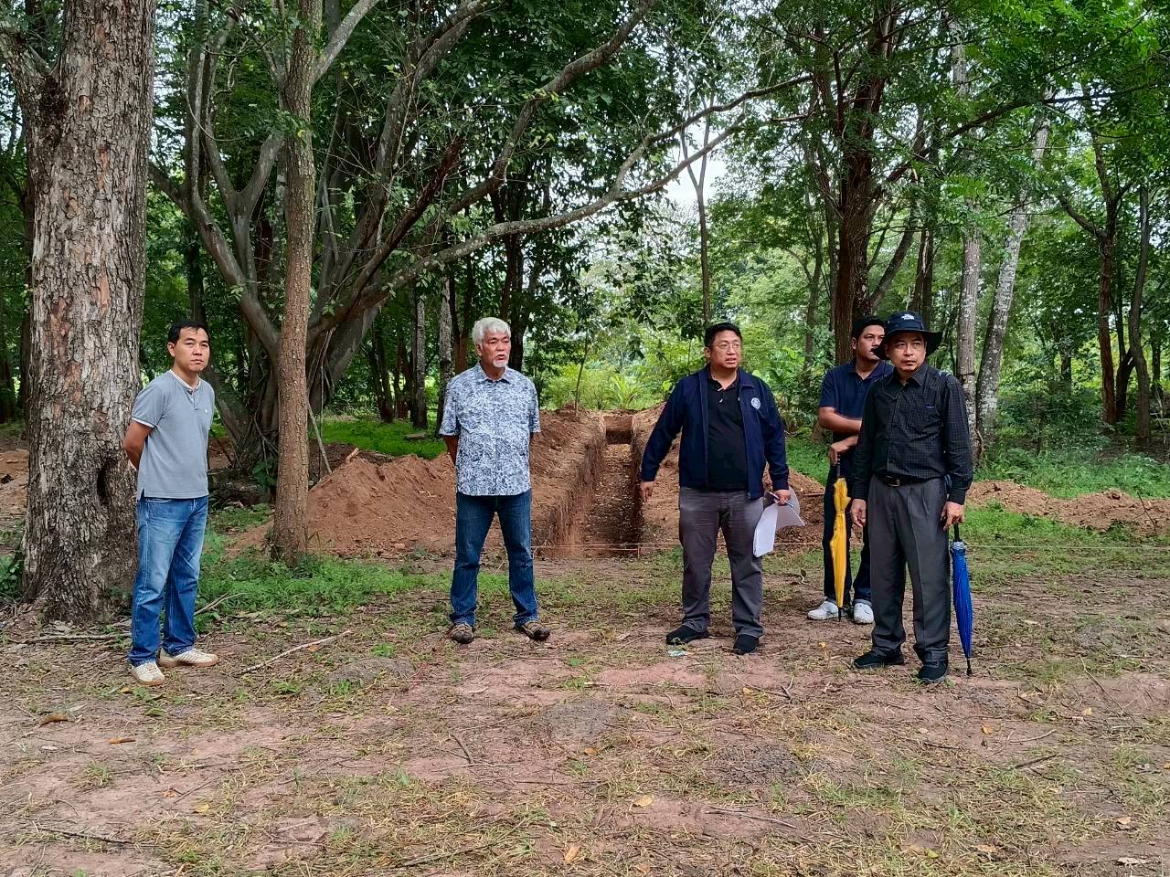 วันจันทร์ที่ 27 ตุลาคม 2568 นายทศพร ศรีสมาน ผู้อำนวยการสำนักศิลปากรที่ 10 นครราชสีมา และผู้ที่เกี่ยวข้อง ลงพื้นที่ร่วมกับนายธนภูมิ อัตตฤทธิ์ วิศวกรโยธาชำนาญการพิเศษ สำนักสถาปัตยกรรม กรมศิลปากร ซึ่งให้คำปรึกษาด้านวิศวกรรมในการดำเนินงาน ระบุตำแหน่งจุดทดสอบการรับน้ำหนักของชั้นดินตามข้อกำหนดของงาน ในการดำเนินงานขุดแต่งโบราณสถานหนองตาเปล่ง ตำบลช่อผกา อำเภอชำนิ จังหวัดบุรีรัมย์
