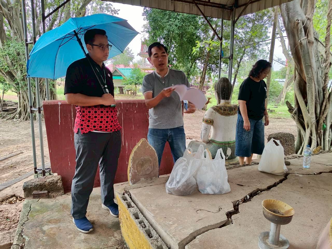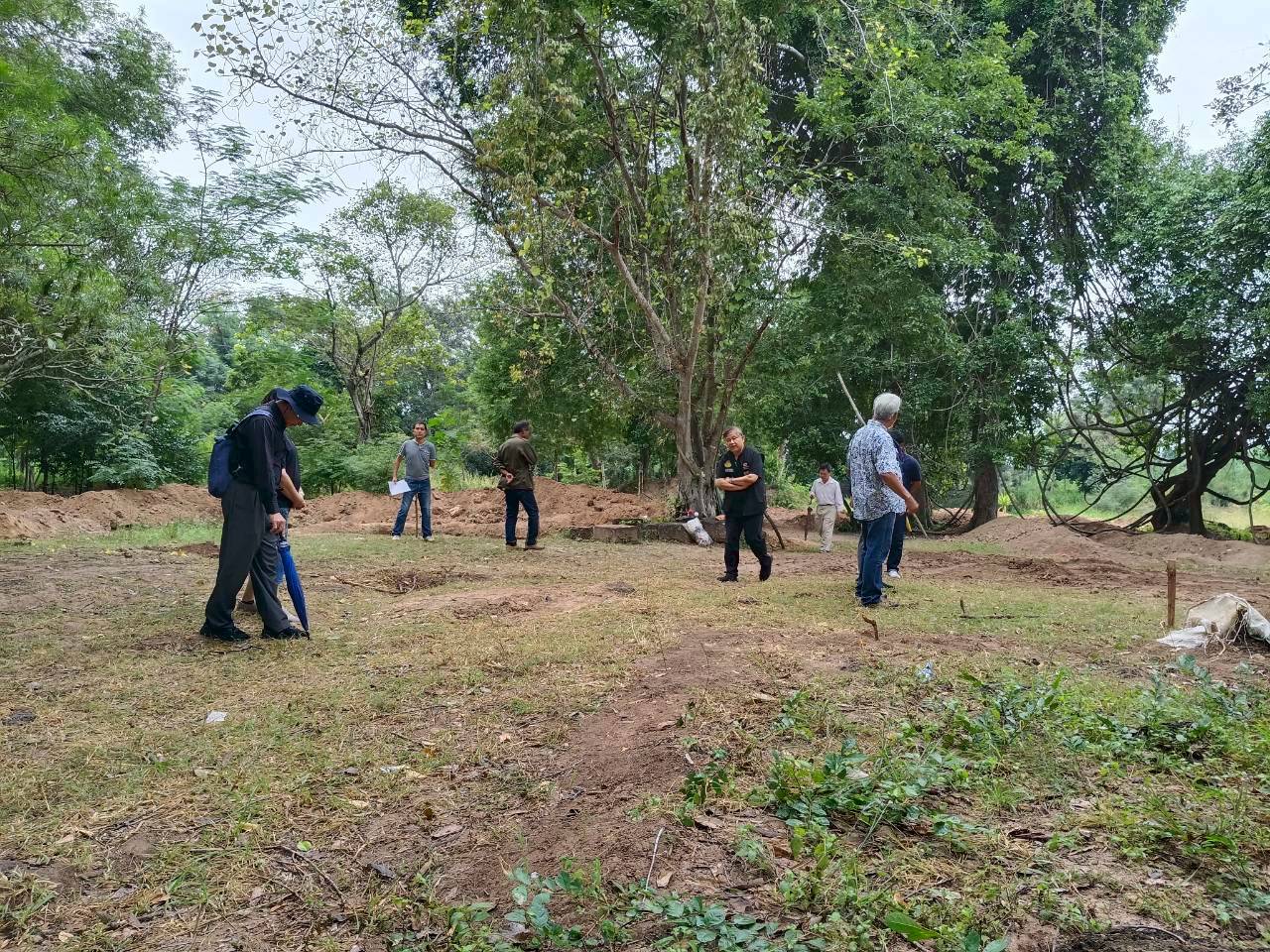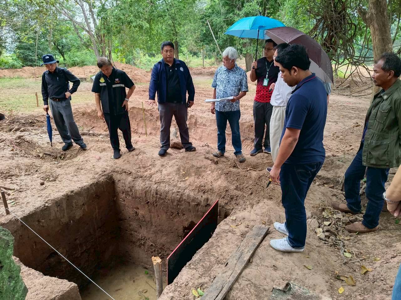 วันจันทร์ที่ 27 ตุลาคม 2568 นายทศพร ศรีสมาน ผู้อำนวยการสำนักศิลปากรที่ 10 นครราชสีมา และผู้ที่เกี่ยวข้อง ลงพื้นที่ร่วมกับนายธนภูมิ อัตตฤทธิ์ วิศวกรโยธาชำนาญการพิเศษ สำนักสถาปัตยกรรม กรมศิลปากร ซึ่งให้คำปรึกษาด้านวิศวกรรมในการดำเนินงาน ระบุตำแหน่งจุดทดสอบการรับน้ำหนักของชั้นดินตามข้อกำหนดของงาน ในการดำเนินงานขุดแต่งโบราณสถานหนองตาเปล่ง ตำบลช่อผกา อำเภอชำนิ จังหวัดบุรีรัมย์