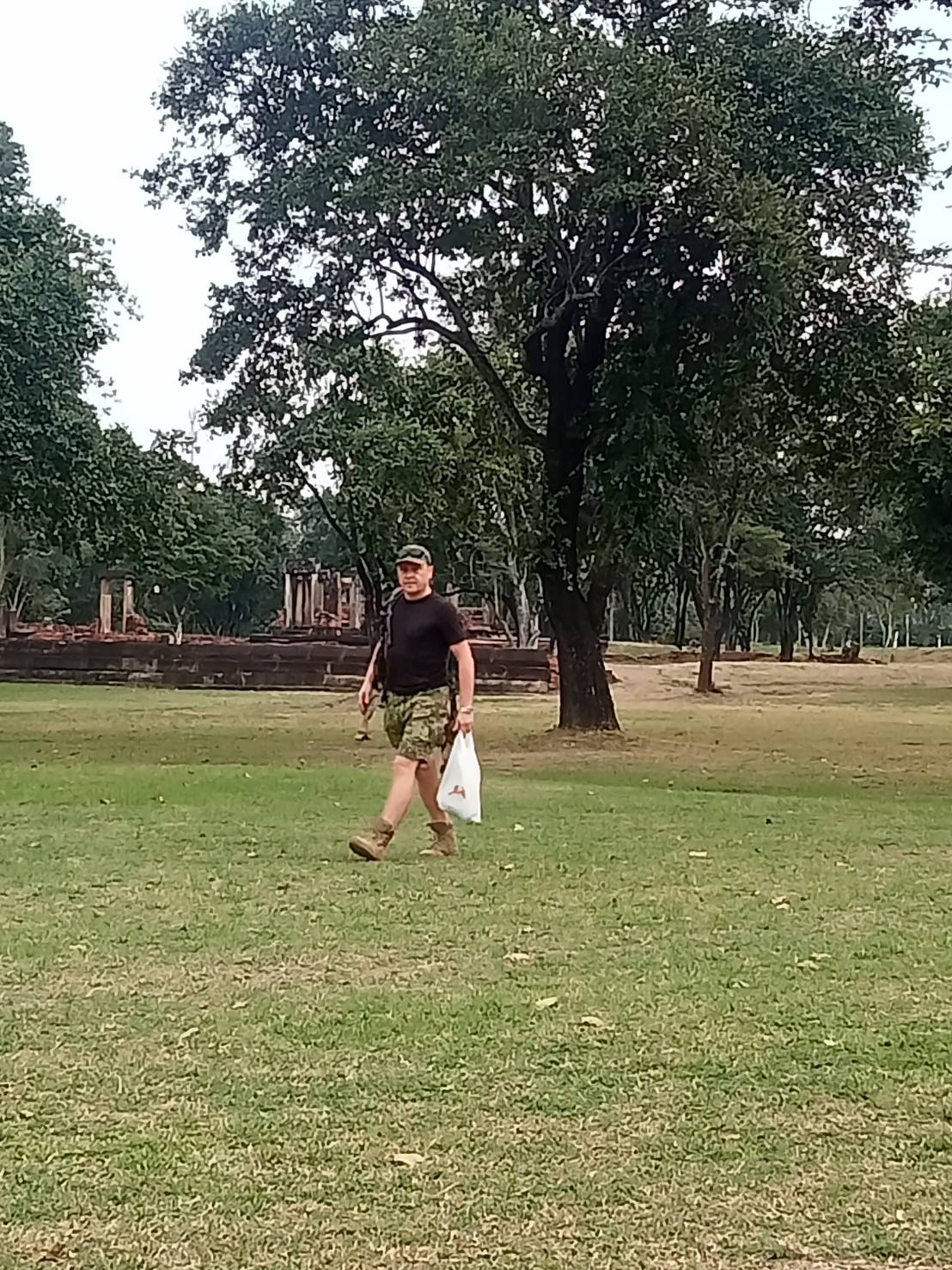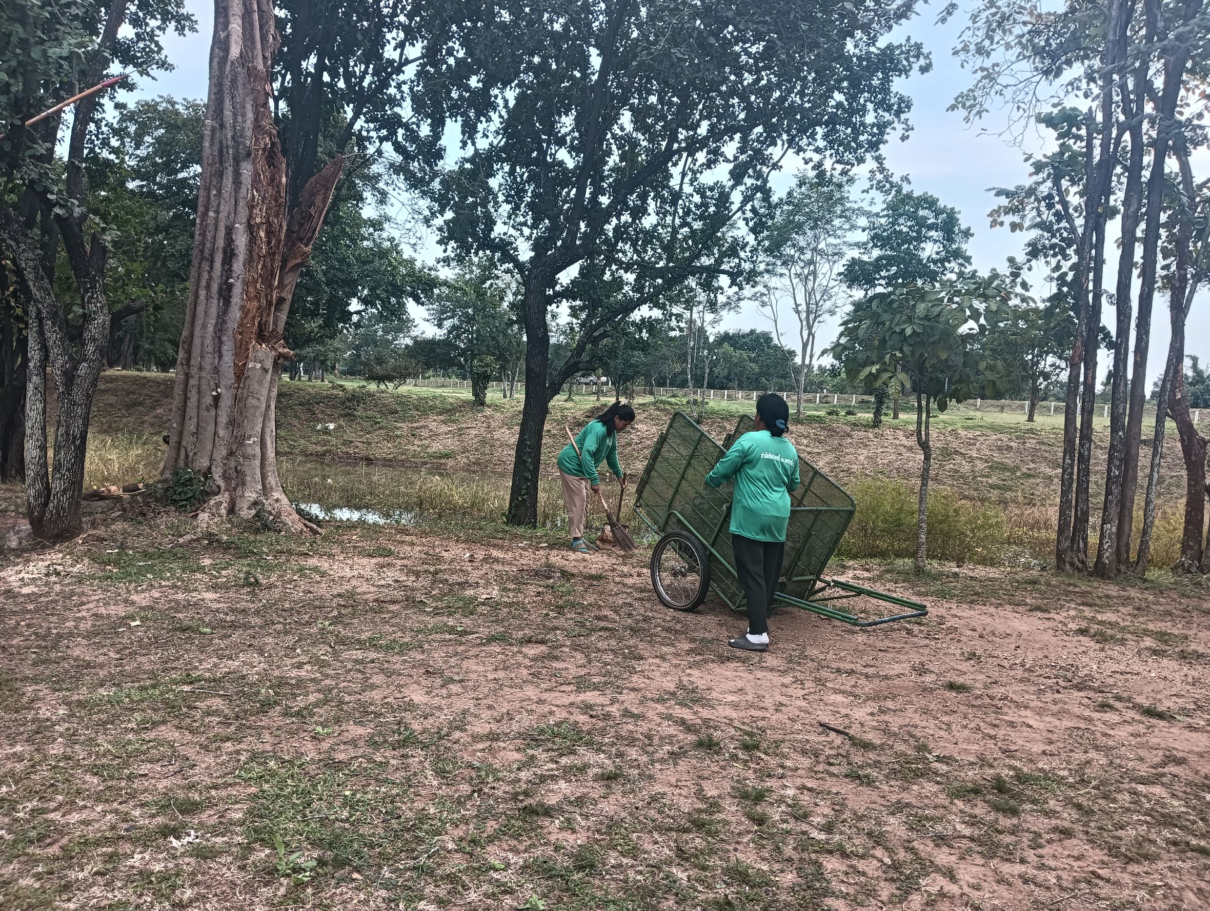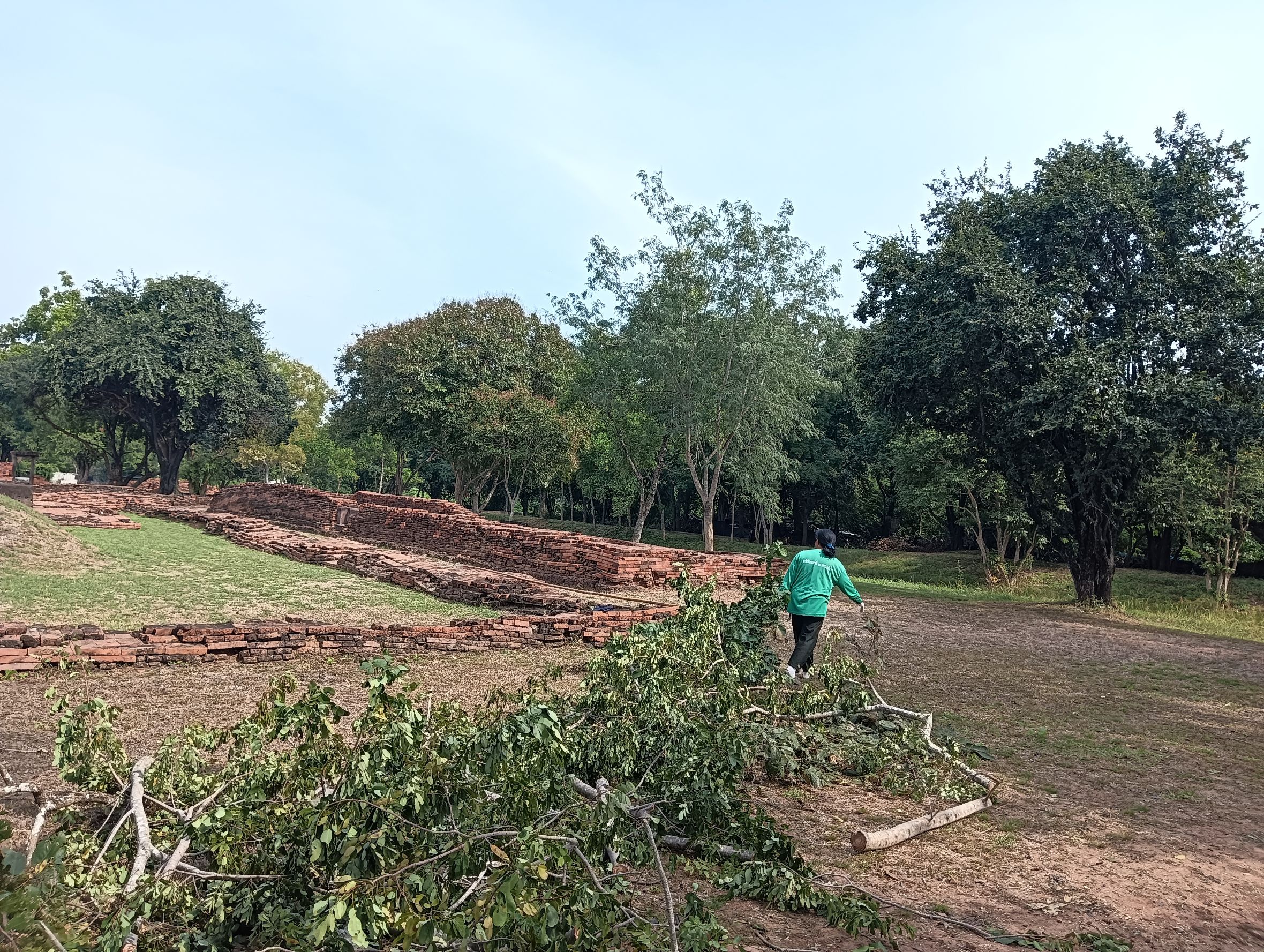 นักท่องเที่ยวเข้าชมโบราณสถาน และการดำเนินงานถากถางกำจัดวัชพืชบริเวณโดยรอบโบราณสถานปราสาทเมืองแขก ตำบลโคราช อำเภอสูงเนิน จังหวัดนครราชสีมา ในวันอังคารที่ 25 พฤศจิกายน 2568