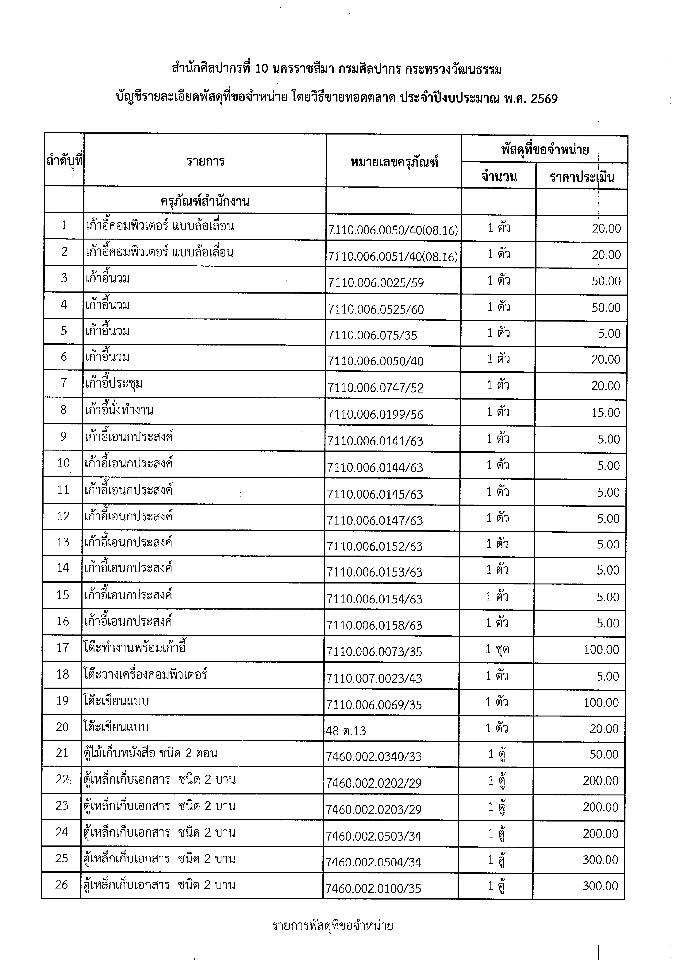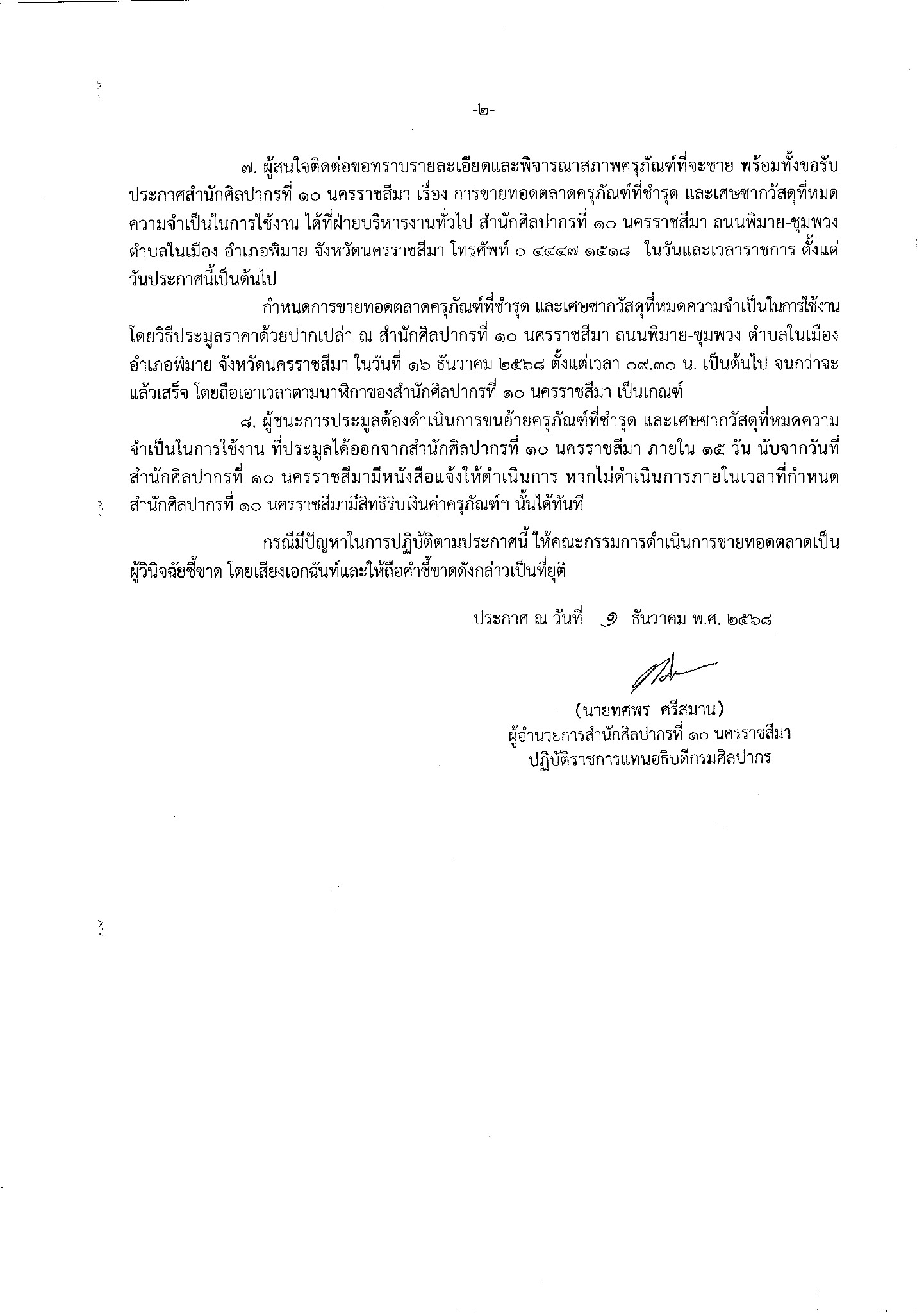 #ประกาศสำนักศิลปากรที่10นครราชสีมา เรื่อง การขายทอดตลาดครุภัณฑ์ชำรุด และเศษซากวัสดุที่หมดความจำเป็นในการใช้งาน จำนวน 112 รายการ
