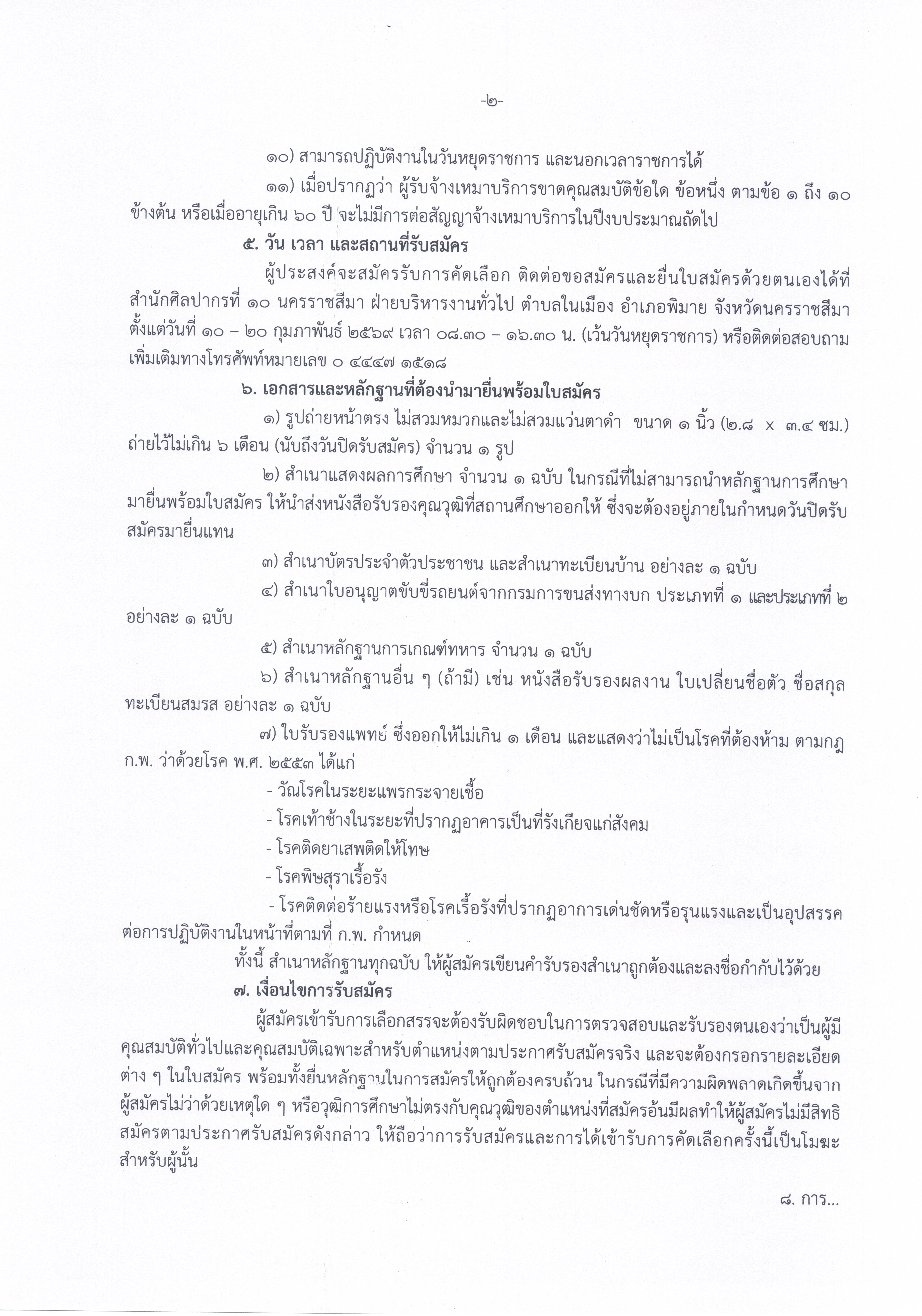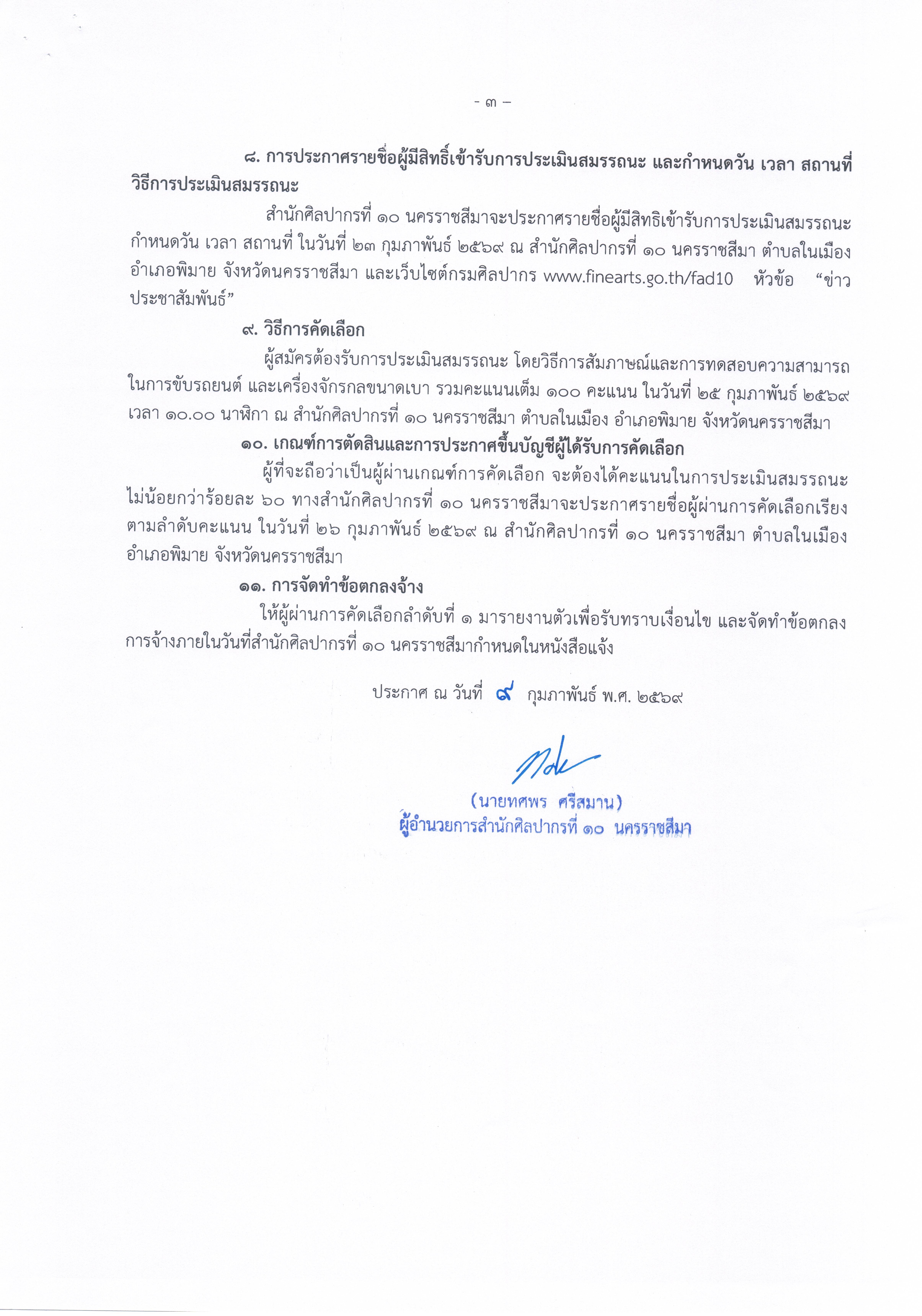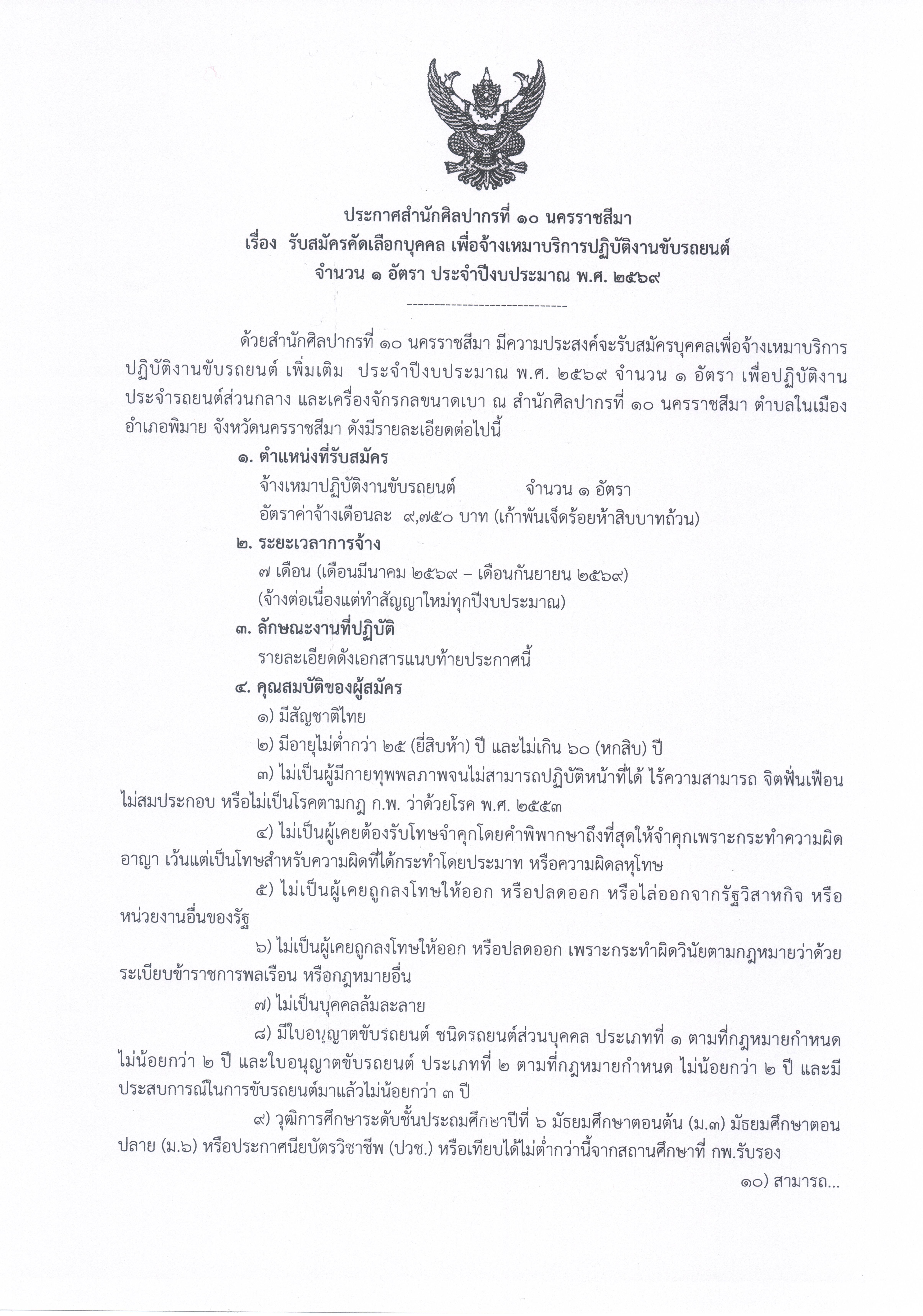 ประกาศสำนักศิลปากรที่ ๑๐ นครราชสีมา เรื่อง รับสมัครคัดเลือกบุคคลเพื่อจัดจ้างเป็นจ้างเหมาบริการปฏิบัติงานขับรถยนต์ ประจำสำนักศิลปากรที่ ๑๐ นครราชสีมา (จำนวน ๑ อัตรา)