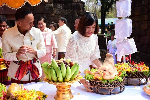 พิธีบวงสรวงกู่สันตรัตน์และพิธีเปิดพิพิธภัณฑ์ท้องถิ่นกู่สันตรัตน์ อำเภอนาดูน จังหวัดมหาสารคาม