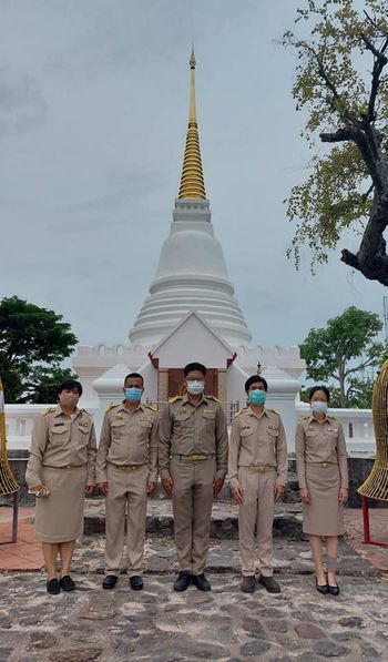 ๑๓ มิถุนายน ๒๕๖๕ นายกิตติพันธ์ พานสุวรรณ อธิบดีกรมศิลปากรและเจ้าหน้าที่ที่เกี่ยวข้อง ลงพื้นที่ตรวจเยี่ยมโครงการบูรณะโบราณสถานพระเจดีย์บนเขารูปช้าง