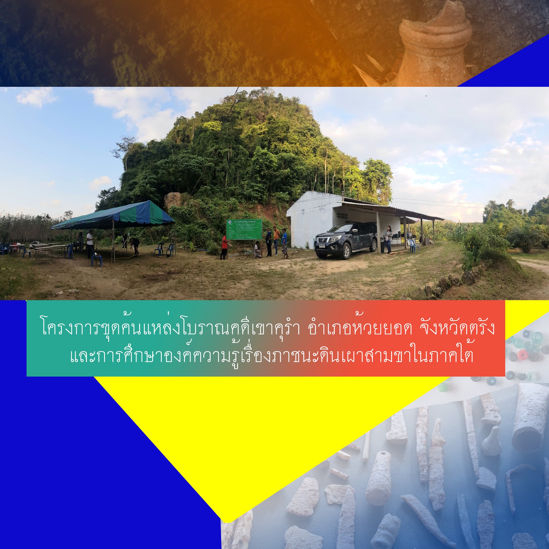 โครงการขุดค้นแหล่งโบราณคดีเขาคุรำ อำเภอห้วยยอด จังหวัดตรัง