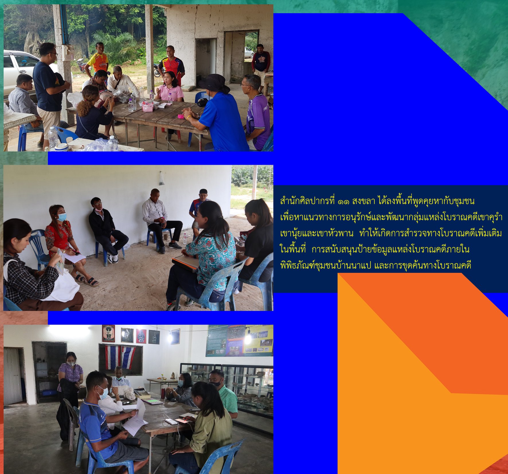 ๑. ดำเนินการขุดค้นทางโบราณคดีที่แหล่งโบราณคดีเขาคุรำ อำเภอห้วยยอด จังหวัดตรัง ในวันที่ ๑๔ มกราคม - ๒๕ กุมภาพันธ์ พ.ศ.๒๕๖๔