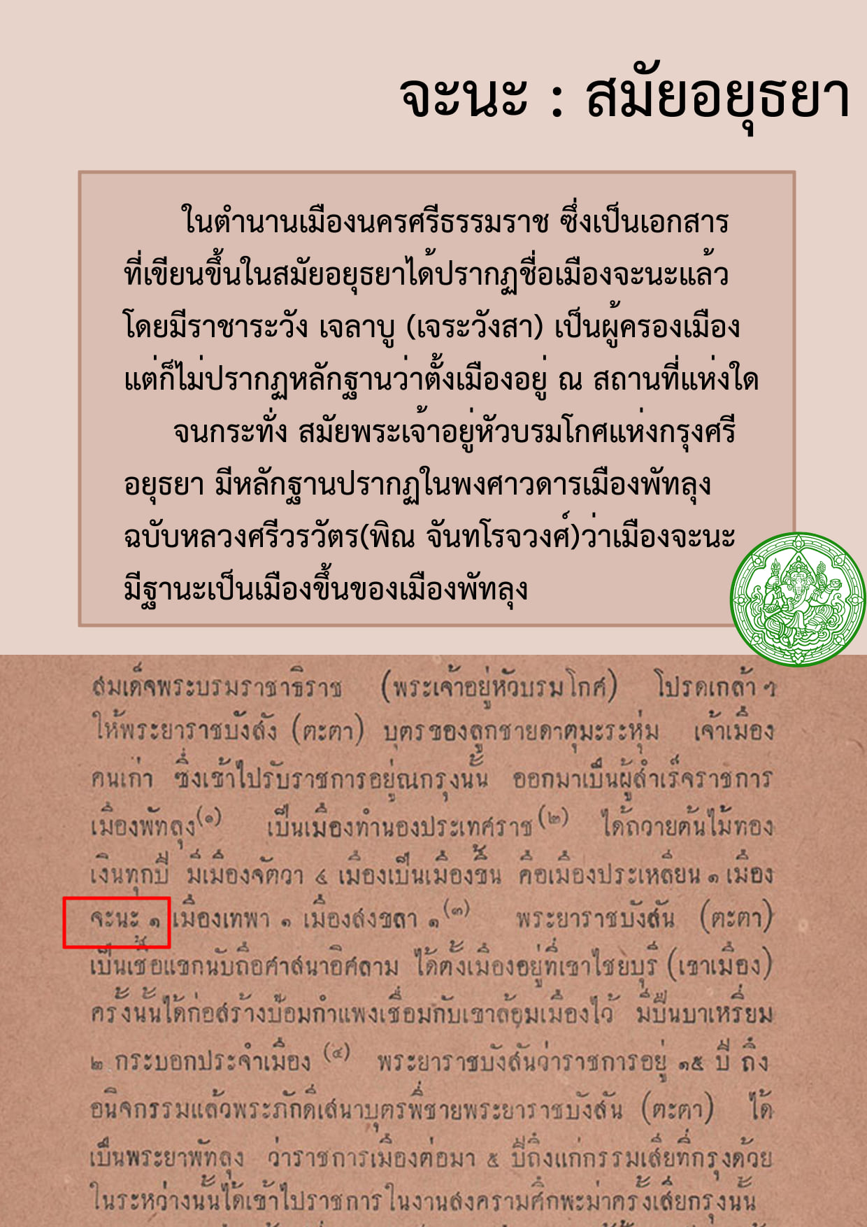 ประวัติศาสตร์และโบราณคดีเมืองจะนะ ตอนที่ ๒ ยุคประวัติศาสตร์ สมัยอยุธยา - ธนบุรี