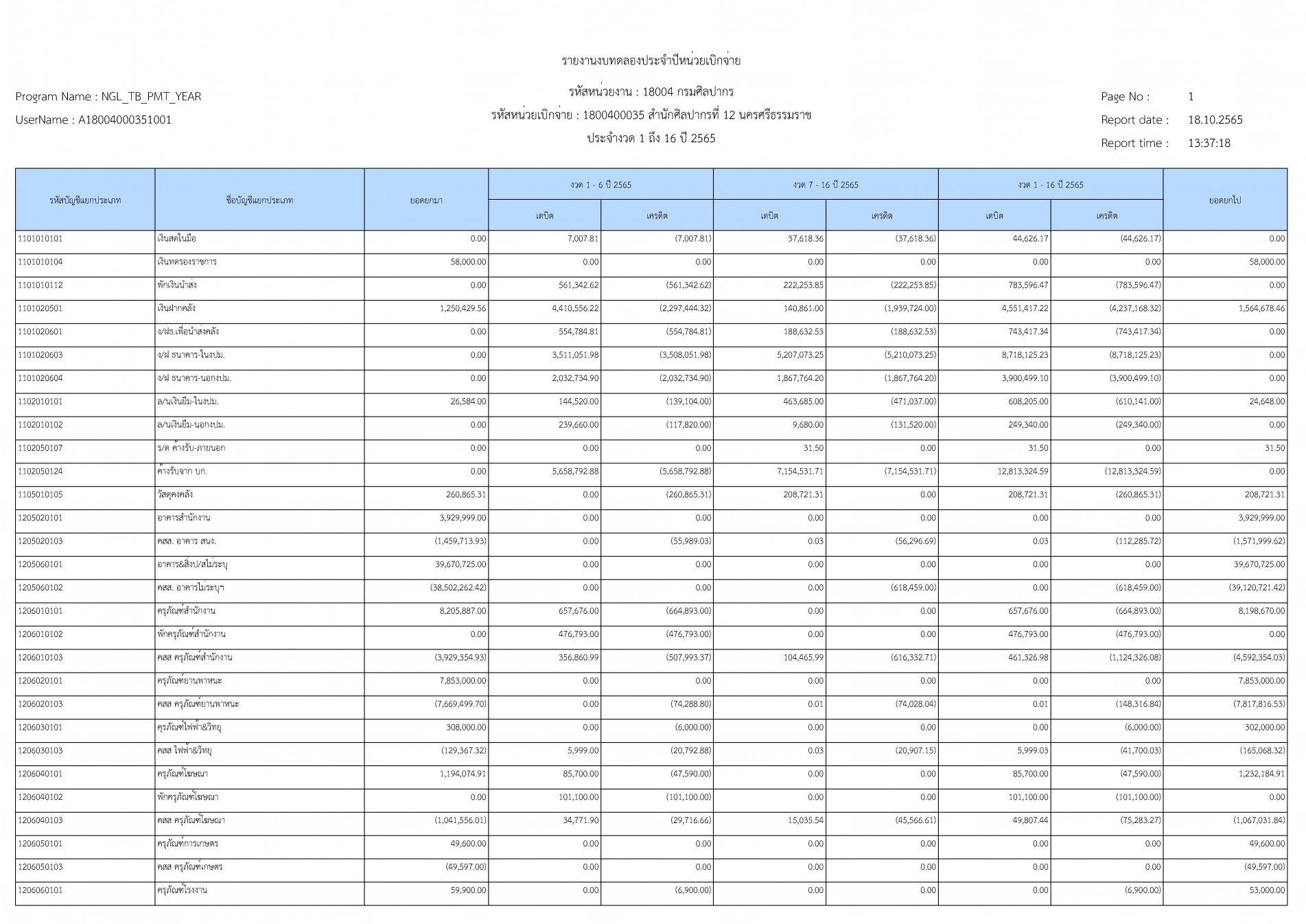 รายงานงบทดลองหน่วยเบิกจ่ายรายปี ประจำงวด 1 ถึง 13 ประจำปี 2568